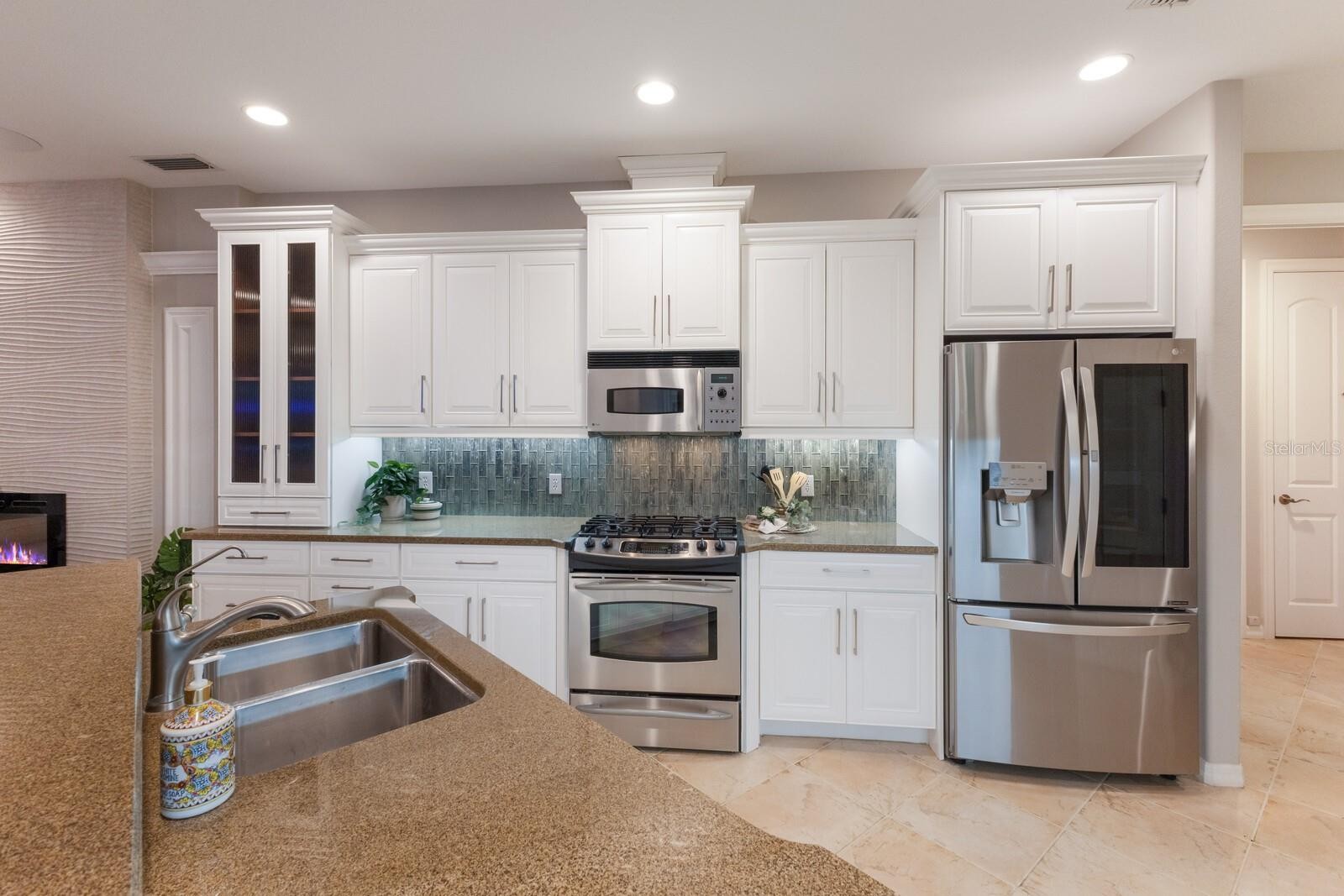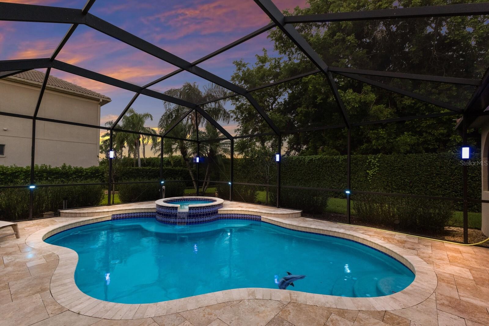 The Belle of the Ball in Tuscana! This grand custom residence by renowned area builder Lee Wetherington Homes, is perfectly situated on a private, walled, and meticulously landscaped homesite in a highly coveted Sarasota neighborhood known for its A rated schools, ambiance, and location. Exceptional design and luxury is found at every turn, as this home stands out from the rest for its elegance, smart home capability, and one-of-a-kind entertainment deck that redefines outdoor Florida living. Built with the comfort of family and guests in mind, there are 4 true bedrooms, 3.5 bathrooms PLUS a large bonus room. Interiors are a complementary pallet of neutral tones, natural light, and an unparalleled level of finish found in few other homes such as 10 inch crown moldings throughout, stone surfaces, automated shades, custom millwork, intelligent lighting systems, and is prewired with state of the art CAT 5 & 6 wiring, indoor and outdoor speakers throughout, and thermal sensing camera systems, all ready for a new owner to connect to a Savant or similar system which could control lighting, climate, music, video, and more from anywhere. A natural gas equipped kitchen with glass tile backsplash, glass-front cabinetry, inset lighting, and stainless appliances are at the center of the home and provides the perfect space for preparing an exquisite meal. The inviting family room boasts a sleek linear fireplace with porcelain accent wall. Further wow guests as the climate-controlled wine cellar is a dream for any wine connoisseur—with storage for over 900 bottles, elegant, functional, and the ultimate entertaining asset. Every room of the main living area has advantageous views of a stunning backyard oasis through impressive NanaWall style folding glass doors. Fold them out of sight to unveil your own private retreat with expansive travertine pool deck, gas heated saltwater pool and spa, and finally Florida living is yours with the show-stopping 500 sq ft cabana adorned with tongue and groove ceilings, a 30-foot fully equipped summer kitchen, and spacious dining and lounge areas all accented by an LED lighting package and protected by PGT windows. Peace of mind is yours as this home boasts an impressive 48kw whole house Generac generator that allows uninterrupted enjoyment of every major system on full power no matter the weather. This extraordinary property truly has it all—style, technology, luxury, and comfort. Whether hosting lavish gatherings or enjoying peaceful evenings at home, this Tuscana treasure is ready for its next owner to enjoy.