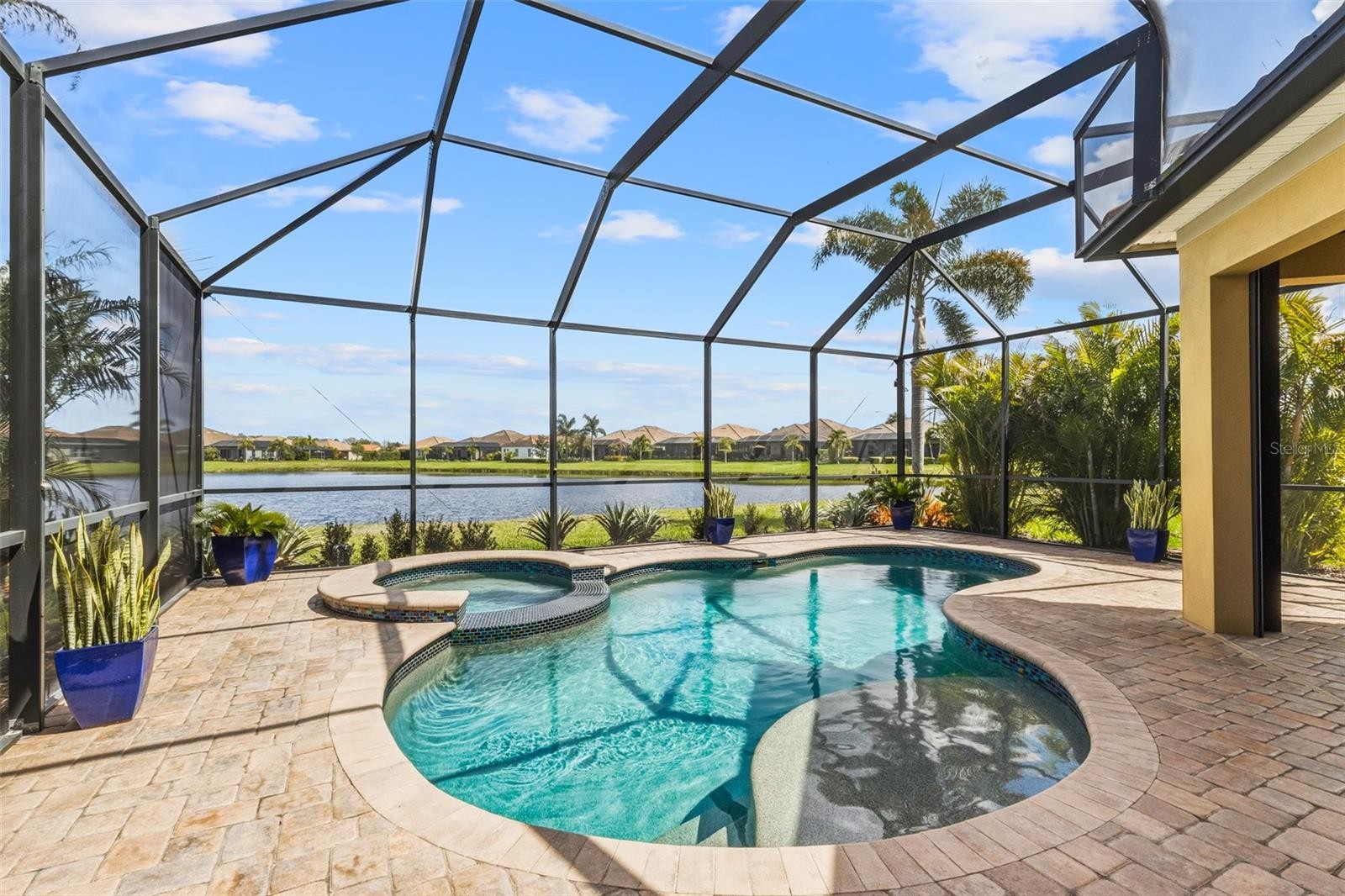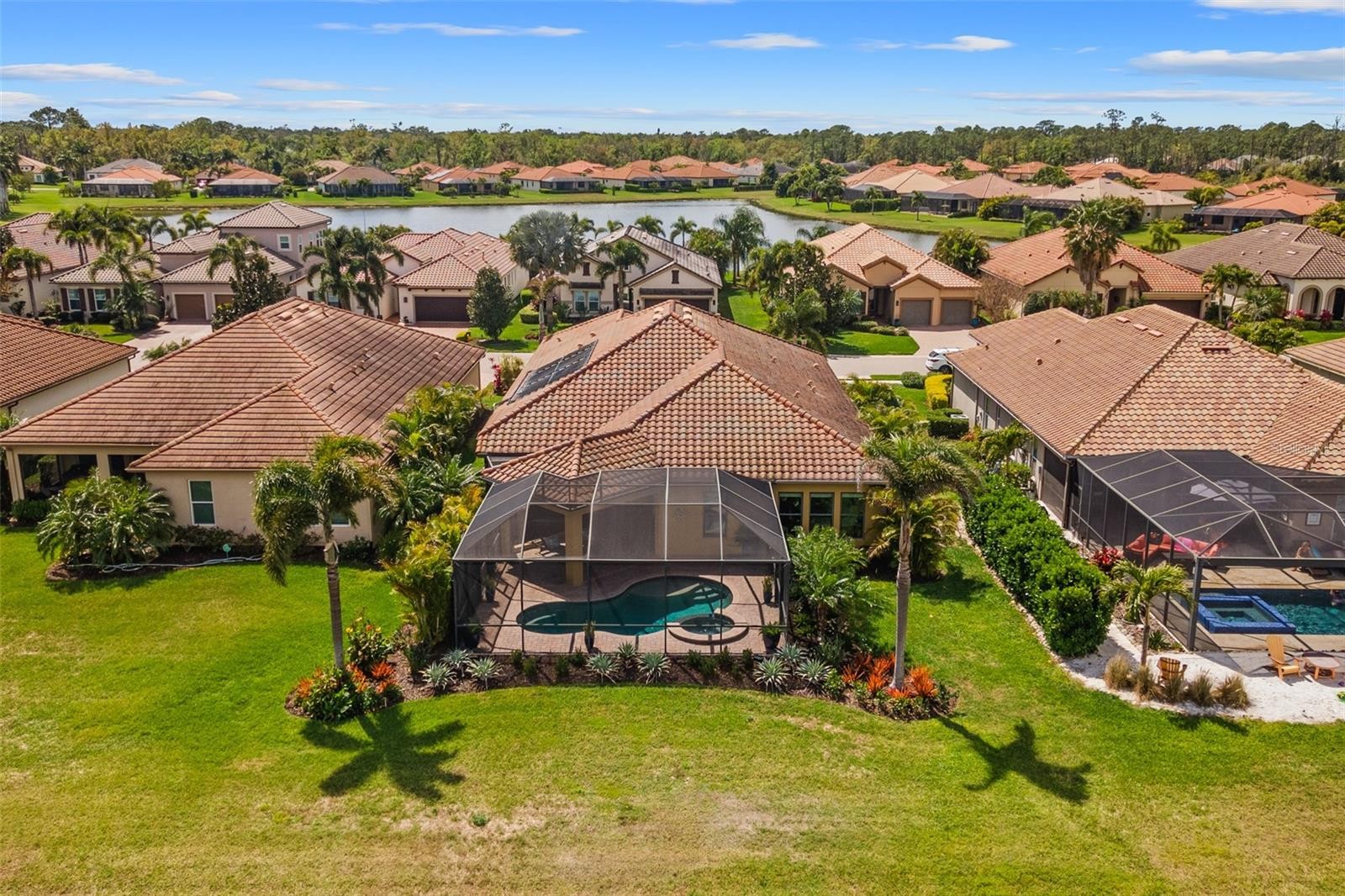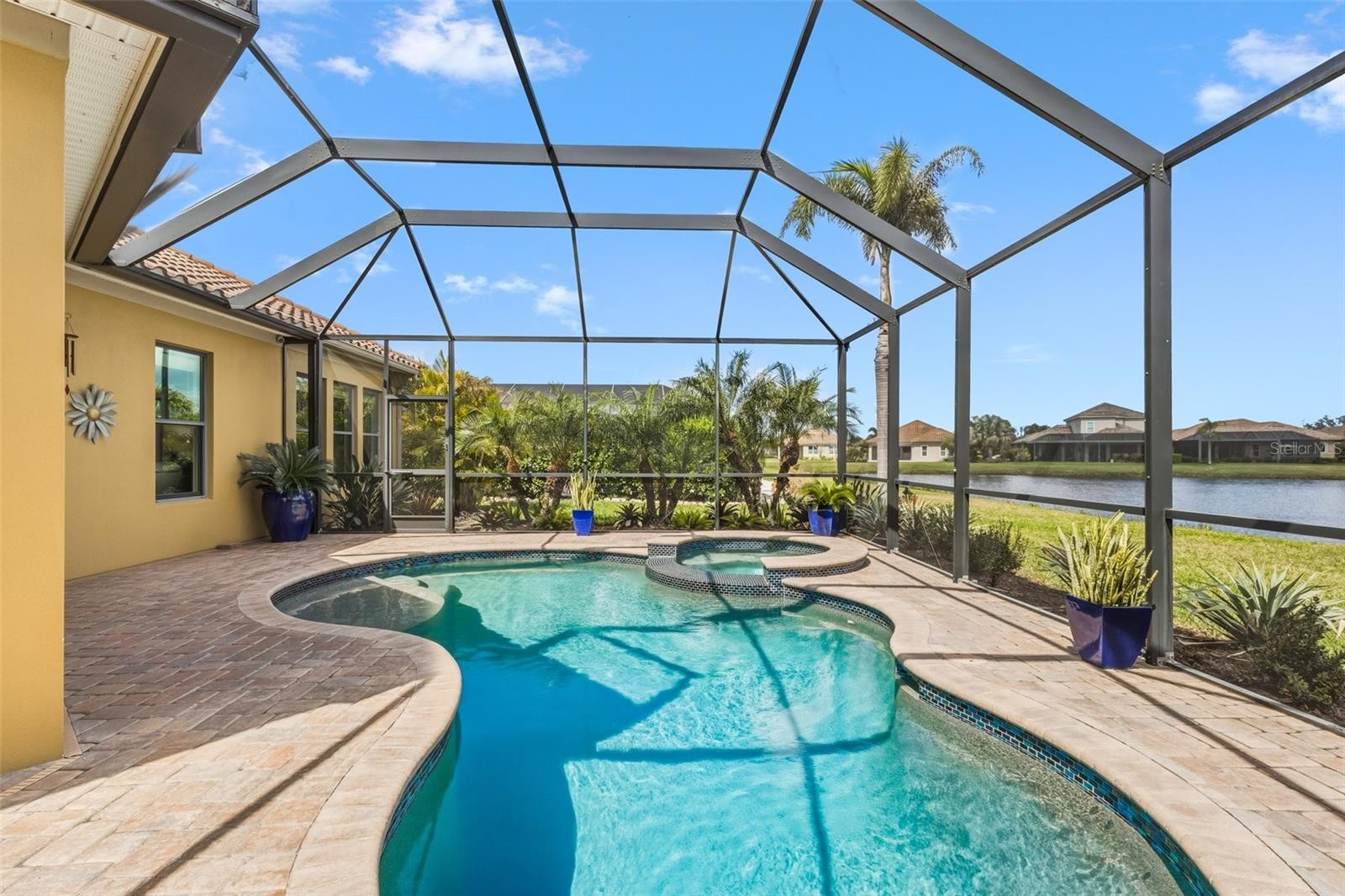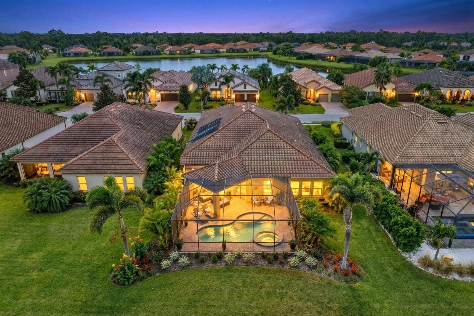 NEW PRICE – MOVE-IN READY LAKEFRONT POOL HOME IN GATED GOLF & TENNIS COMMUNITY in the Lakewood Ranch area! Skip the wait and cost of new construction with this highly upgraded Siesta floor plan offering 3 bedrooms, 2.5 baths, plus a flexible den/office in the sought-after Rosedale Golf & Tennis Country Club. Designed for comfort, style, and peace of mind, the home features impact-resistant windows and doors for easy storm protection. The open-concept great room is perfect for entertaining, showcasing a custom stone accent wall with built-in cabinetry and fireplace, coffered ceilings, crown molding, and wood-look tile flooring for a sophisticated yet relaxed Florida lifestyle. The gourmet chef’s kitchen features an extended island, espresso wood cabinetry, granite countertops, designer tile backsplash, stainless steel appliances, double wall ovens, gas cooktop, and spacious walk-in pantry—ideal for everyday living and entertaining guests. Enjoy true Florida indoor-outdoor living with a private lakefront backyard featuring a solar-heated saltwater pool and spa. The fully equipped outdoor kitchen includes a Blackstone grill, sink, refrigerator, and polymer cabinetry, while electronic hurricane screens enclose the covered lanai for added convenience and protection. The luxury primary suite offers a spa-style bath with free-standing soaking tub, oversized Roman walk-in shower, and large walk-in closet. Two guest bedrooms share a Jack-and-Jill bath, while the den/flex space is perfect for a home office, media room, or hobby space. Additional upgrades include NEW 2026 A/C, brand new washer and dryer with expanded laundry room, extended garage with epoxy flooring, upgraded landscape lighting, paver driveway, screened front entry, and beautiful curb appeal. Residents enjoy resort-style amenities at Rosedale Golf & Tennis Country Club, including tennis, bocce, fitness center with classes, junior Olympic pool, 22,000-sq-ft clubhouse, full-service restaurant, and year-round social events. Optional golf memberships available. The HOA includes lawn maintenance, cable, high-speed internet, two 24/7 manned gates, and dog parks, with NO CDD fees. Located just minutes from I-75, UTC Mall, Sarasota-Bradenton International Airport, top-rated medical facilities, dining, and the world-famous Gulf Coast beaches. Schedule your private showing today and experience the Rosedale lifestyle.