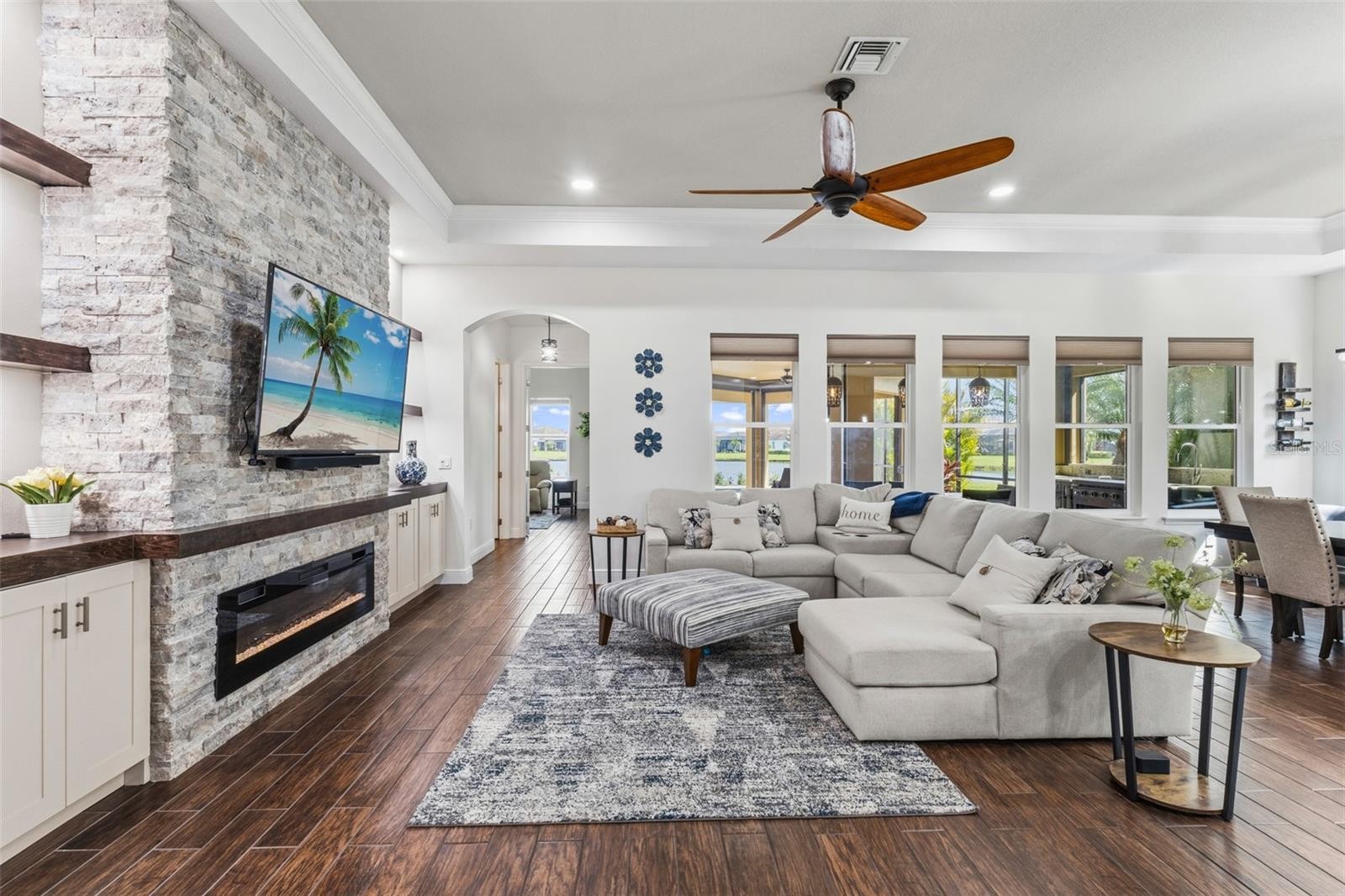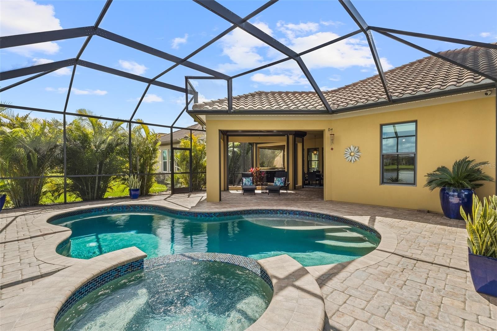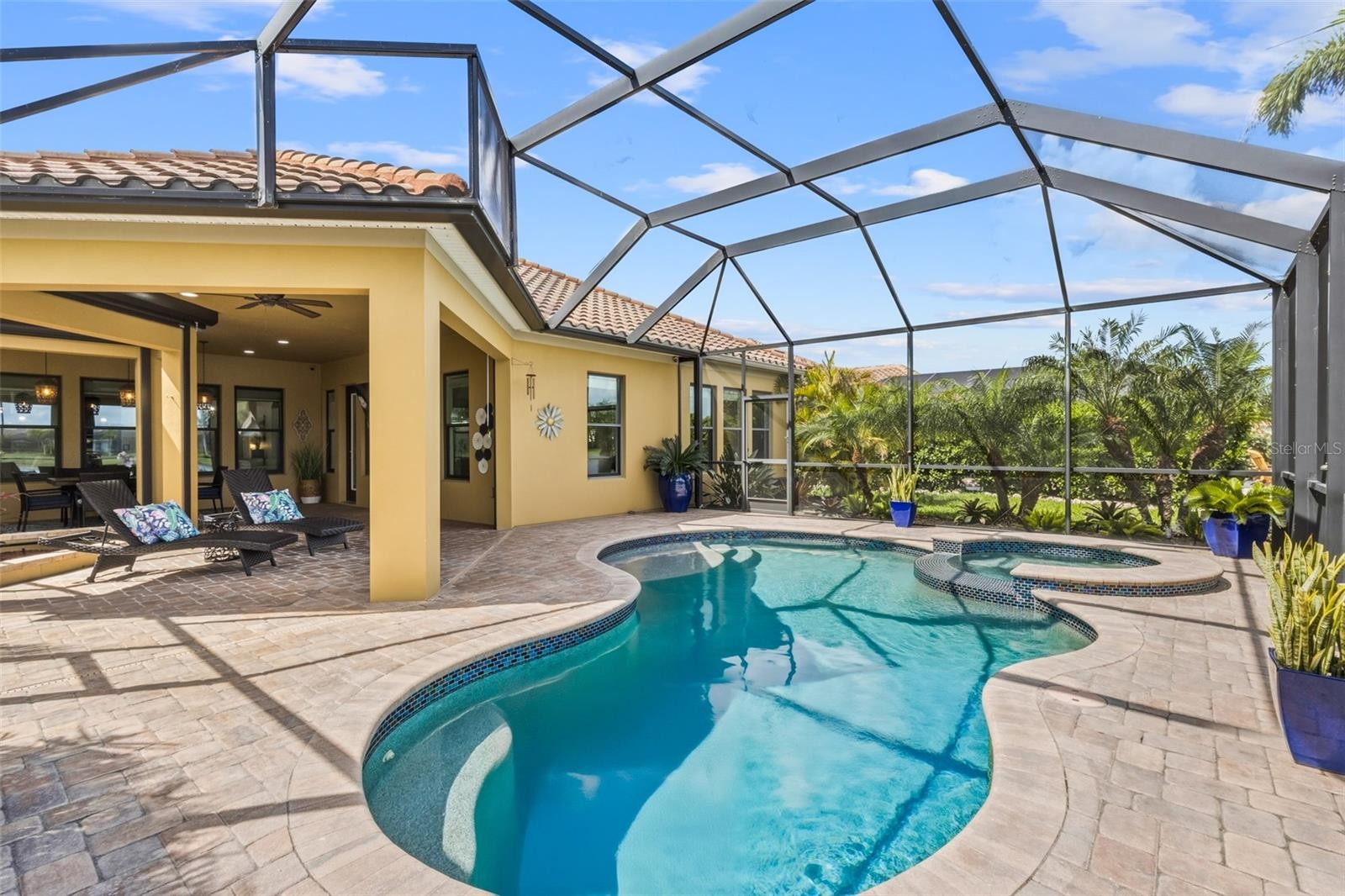 NEW PRICE – MOVE-IN READY LAKEFRONT POOL HOME IN GATED GOLF & TENNIS COMMUNITY in the Lakewood Ranch area! Skip the wait and cost of new construction with this highly upgraded Siesta floor plan offering 3 bedrooms, 2.5 baths, plus a flexible den/office in the sought-after Rosedale Golf & Tennis Country Club. Designed for comfort, style, and peace of mind, the home features impact-resistant windows and doors for easy storm protection. The open-concept great room is perfect for entertaining, showcasing a custom stone accent wall with built-in cabinetry and fireplace, coffered ceilings, crown molding, and wood-look tile flooring for a sophisticated yet relaxed Florida lifestyle. The gourmet chef’s kitchen features an extended island, espresso wood cabinetry, granite countertops, designer tile backsplash, stainless steel appliances, double wall ovens, gas cooktop, and spacious walk-in pantry—ideal for everyday living and entertaining guests. Enjoy true Florida indoor-outdoor living with a private lakefront backyard featuring a solar-heated saltwater pool and spa. The fully equipped outdoor kitchen includes a Blackstone grill, sink, refrigerator, and polymer cabinetry, while electronic hurricane screens enclose the covered lanai for added convenience and protection. The luxury primary suite offers a spa-style bath with free-standing soaking tub, oversized Roman walk-in shower, and large walk-in closet. Two guest bedrooms share a Jack-and-Jill bath, while the den/flex space is perfect for a home office, media room, or hobby space. Additional upgrades include NEW 2026 A/C, brand new washer and dryer with expanded laundry room, extended garage with epoxy flooring, upgraded landscape lighting, paver driveway, screened front entry, and beautiful curb appeal. Residents enjoy resort-style amenities at Rosedale Golf & Tennis Country Club, including tennis, bocce, fitness center with classes, junior Olympic pool, 22,000-sq-ft clubhouse, full-service restaurant, and year-round social events. Optional golf memberships available. The HOA includes lawn maintenance, cable, high-speed internet, two 24/7 manned gates, and dog parks, with NO CDD fees. Located just minutes from I-75, UTC Mall, Sarasota-Bradenton International Airport, top-rated medical facilities, dining, and the world-famous Gulf Coast beaches. Schedule your private showing today and experience the Rosedale lifestyle.