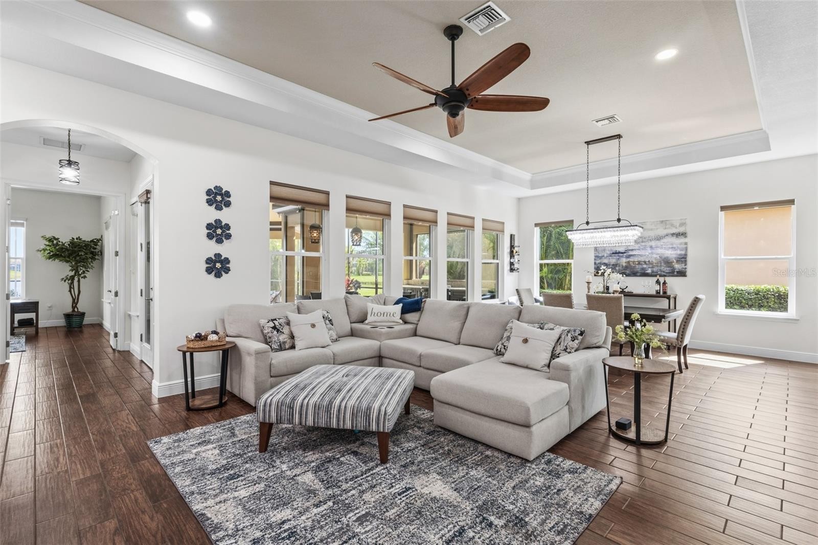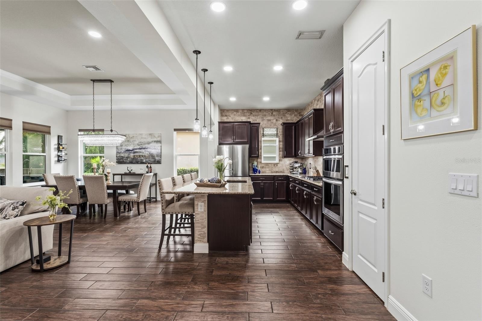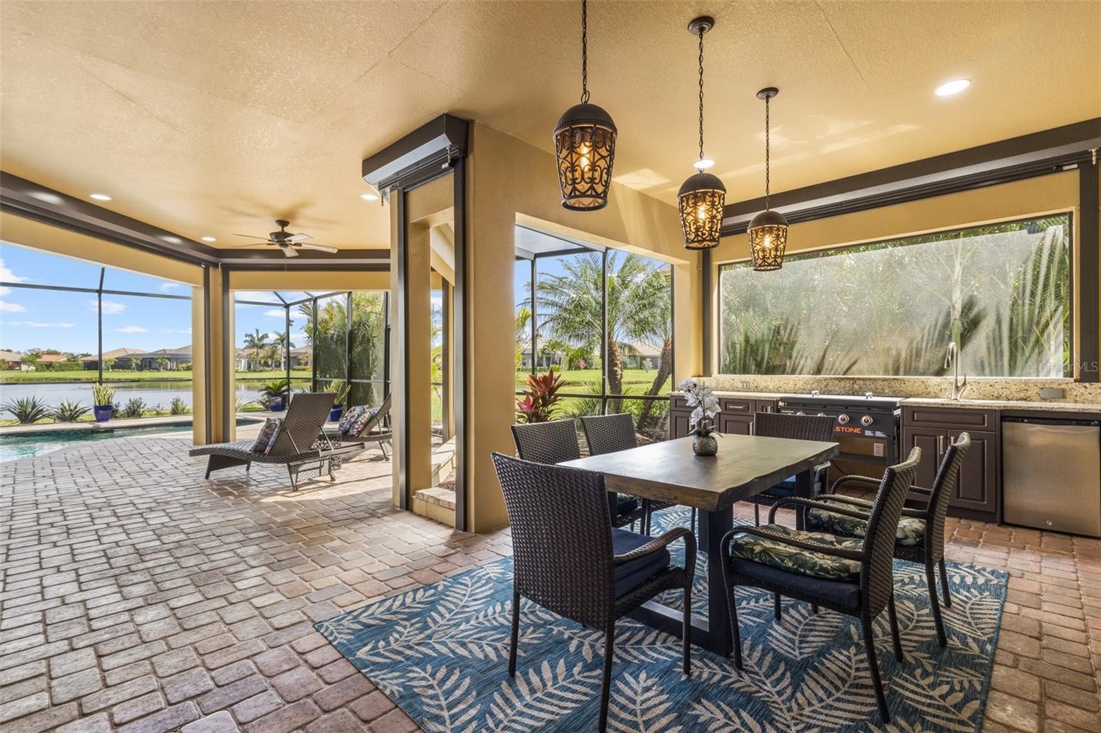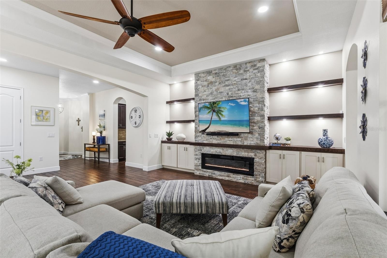 NEW PRICE – MOVE-IN READY LAKEFRONT POOL HOME IN GATED GOLF & TENNIS COMMUNITY in the Lakewood Ranch area! Skip the wait and cost of new construction with this highly upgraded Siesta floor plan offering 3 bedrooms, 2.5 baths, plus a flexible den/office in the sought-after Rosedale Golf & Tennis Country Club. Designed for comfort, style, and peace of mind, the home features impact-resistant windows and doors for easy storm protection. The open-concept great room is perfect for entertaining, showcasing a custom stone accent wall with built-in cabinetry and fireplace, coffered ceilings, crown molding, and wood-look tile flooring for a sophisticated yet relaxed Florida lifestyle. The gourmet chef’s kitchen features an extended island, espresso wood cabinetry, granite countertops, designer tile backsplash, stainless steel appliances, double wall ovens, gas cooktop, and spacious walk-in pantry—ideal for everyday living and entertaining guests. Enjoy true Florida indoor-outdoor living with a private lakefront backyard featuring a solar-heated saltwater pool and spa. The fully equipped outdoor kitchen includes a Blackstone grill, sink, refrigerator, and polymer cabinetry, while electronic hurricane screens enclose the covered lanai for added convenience and protection. The luxury primary suite offers a spa-style bath with free-standing soaking tub, oversized Roman walk-in shower, and large walk-in closet. Two guest bedrooms share a Jack-and-Jill bath, while the den/flex space is perfect for a home office, media room, or hobby space. Additional upgrades include NEW 2026 A/C, brand new washer and dryer with expanded laundry room, extended garage with epoxy flooring, upgraded landscape lighting, paver driveway, screened front entry, and beautiful curb appeal. Residents enjoy resort-style amenities at Rosedale Golf & Tennis Country Club, including tennis, bocce, fitness center with classes, junior Olympic pool, 22,000-sq-ft clubhouse, full-service restaurant, and year-round social events. Optional golf memberships available. The HOA includes lawn maintenance, cable, high-speed internet, two 24/7 manned gates, and dog parks, with NO CDD fees. Located just minutes from I-75, UTC Mall, Sarasota-Bradenton International Airport, top-rated medical facilities, dining, and the world-famous Gulf Coast beaches. Schedule your private showing today and experience the Rosedale lifestyle.
