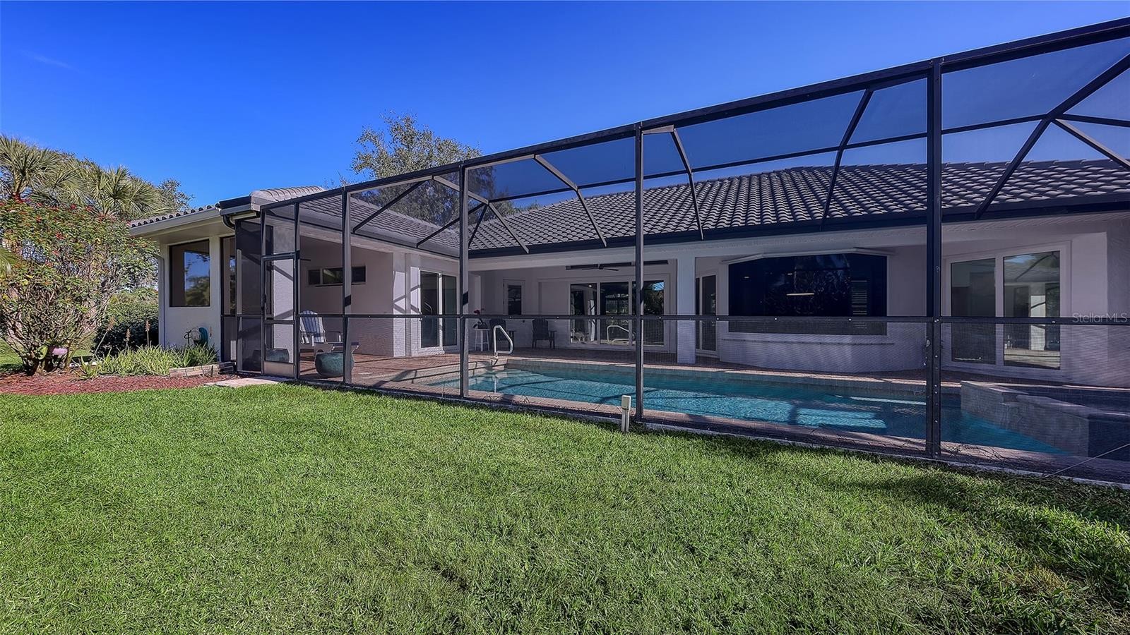 Located on a half acre corner lot in the Estate section of Turtle Rock. This beautiful & inviting home was custom built by John Cannon Homes (Sarasota's Luxury Home Builder). Over 2700 sq. ft. under air featuring 3 bedrooms, den with Murphy Bed, 3 full baths & a contemporary Great Room. Over $250,000 in recent upgrades & renovations. These include new tile roof in 2021, all new high impact windows & sliders, whole house Kohler generator in 2025, new Trane A/C with air purifier in 2024, new hot water heater in 2025. Kitchen remodel includes quartz counters, subway tile backsplash, GE Profile stainless appliances & Bosch dishwasher. All bathrooms remodeled with custom cabinets, quartz counters, new bathtub, Hans Grohe fixtures & toto toilets with washlets, & new light fixtures. All lighting has been replaced with LED lights & new ceiling fans inside & outside. Dedicated EVSE-ready circuit. Garage is 3 car size with 2 car parking plus 1 car storage area (could be converted to a 3-car garage). Caged pool with outdoor kitchen. Home has been replumbed. Updated landscaping. Turtle Rock is located in the heart of Palmer Ranch. The community is gated, surrounded by 300 acres of ponds, nature preserves & walking trails. Community amenities include heated pool, community center, tennis/pickleball courts, and playgrounds. Located near shopping, Legacy Trail, restaurants with a short distance to world famous Siesta Key Beaches.