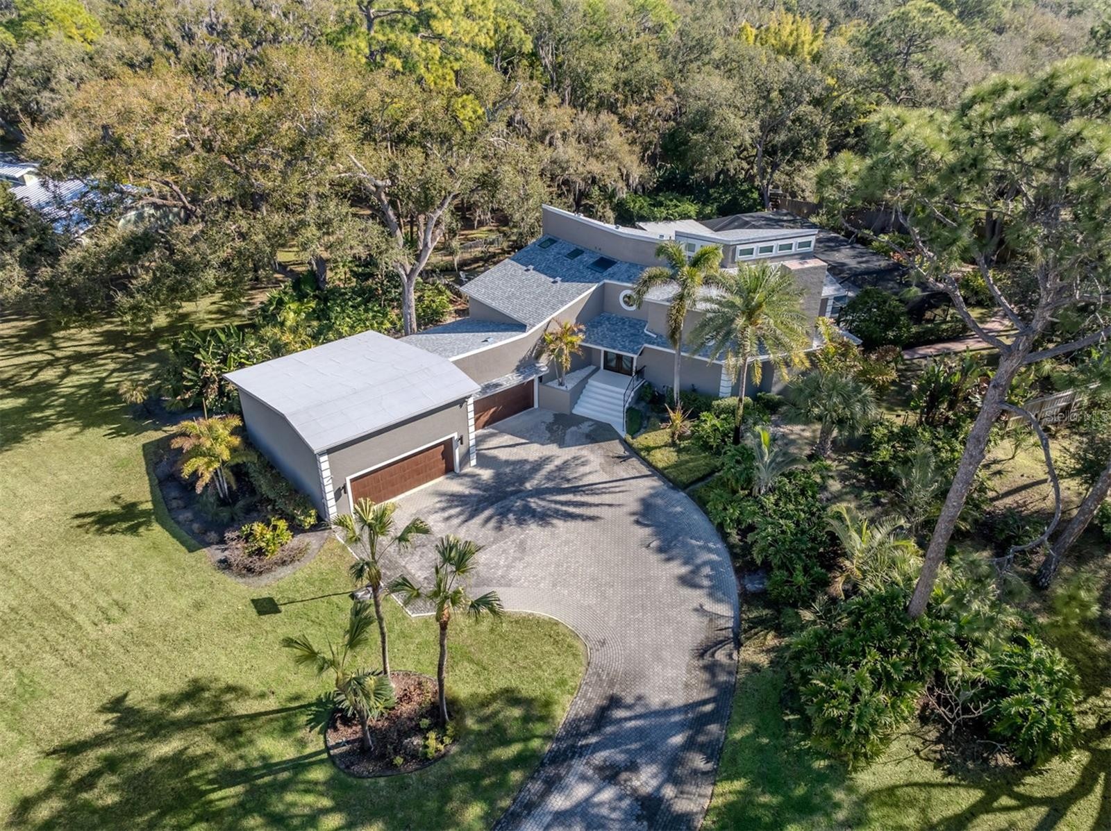 Culinary Artist. Performer. Hobbyist. Swimmer. Horticulturist. Auto Enthusiast. Host. However you define your passions, this extraordinary residence rises to meet them with effortless sophistication. A truly distinctive, custom-built masterpiece, this home is set on a private, lush, tropical 1+ acre oasis in beautiful Hidden Forest — a secluded sanctuary that feels worlds away, yet is only minutes from University Town Center, Lakewood Ranch, Jessica's Famous Farmstand, and Nathan Benderson Park. This property offers exceptional privacy, refined luxury, and thoughtful accommodations for every lifestyle, including a paver pad with 50-amp service for your boat or RV and two separate two-car garages — one oversized with abundant storage and lift installation capability. Designed with a luxurious multi-level open floor plan, the home balances grand-scale entertaining with intimate everyday comfort. The chef’s kitchen is a showpiece, appointed with quartz countertops, a generous center island, pantry, wet bar, and premium Thermador, Miele and Frigidaire Professional appliances purchased in 2021. A steam oven, warming drawer, five foot wide refrigerator and a dual fuel 6 burner range (gas top and electric range) elevate the culinary experience. The formal dining and living rooms are equally impressive, with a built-in projector and screen for private cinematic evenings. A spacious family room anchored by a wood/gas-burning fireplace creates a warm and welcoming atmosphere. A dedicated bonus room — currently an arts and crafts studio — offers limitless flexibility, while a private office with custom built-in desks and closet provides an elegant work-from-home retreat. Outdoors, the expansive covered lanai is designed for refined entertaining, complete with a fully equipped summer kitchen and a striking saltwater pool adorned with tranquil waterfalls and fountains, all set against serene preserve views. Meticulous attention to detail continues throughout the home, including more than 10 skylights, a new roof (2025), all new hurricane-impact windows installed in 2023 (excluding sliders), and new A/C units installed in 2022. Additional enhancements include a tankless water heater, 400-amp electrical service, custom landscape lighting, illuminated dimmer switches and ceiling fans throughout. The mid-level entertainment lounge is ideal for billiards or cards, while the upper level is reserved for restful privacy. The grand primary suite is complemented by a conveniently located laundry room and opens through a sliding barn door to a spa-inspired bath of European elegance. Features include a freestanding soaking tub, dual vanities with Calacatta marble countertops, bespoke finishes, and a dramatic walk-in shower illuminated by a skylight and appointed with a rain showerhead and therapeutic body jets. A private morning kitchen with coffee station, wine cooler, and additional cabinetry completes this serene retreat. This is more than a home — it is a refined estate designed to elevate every pursuit.