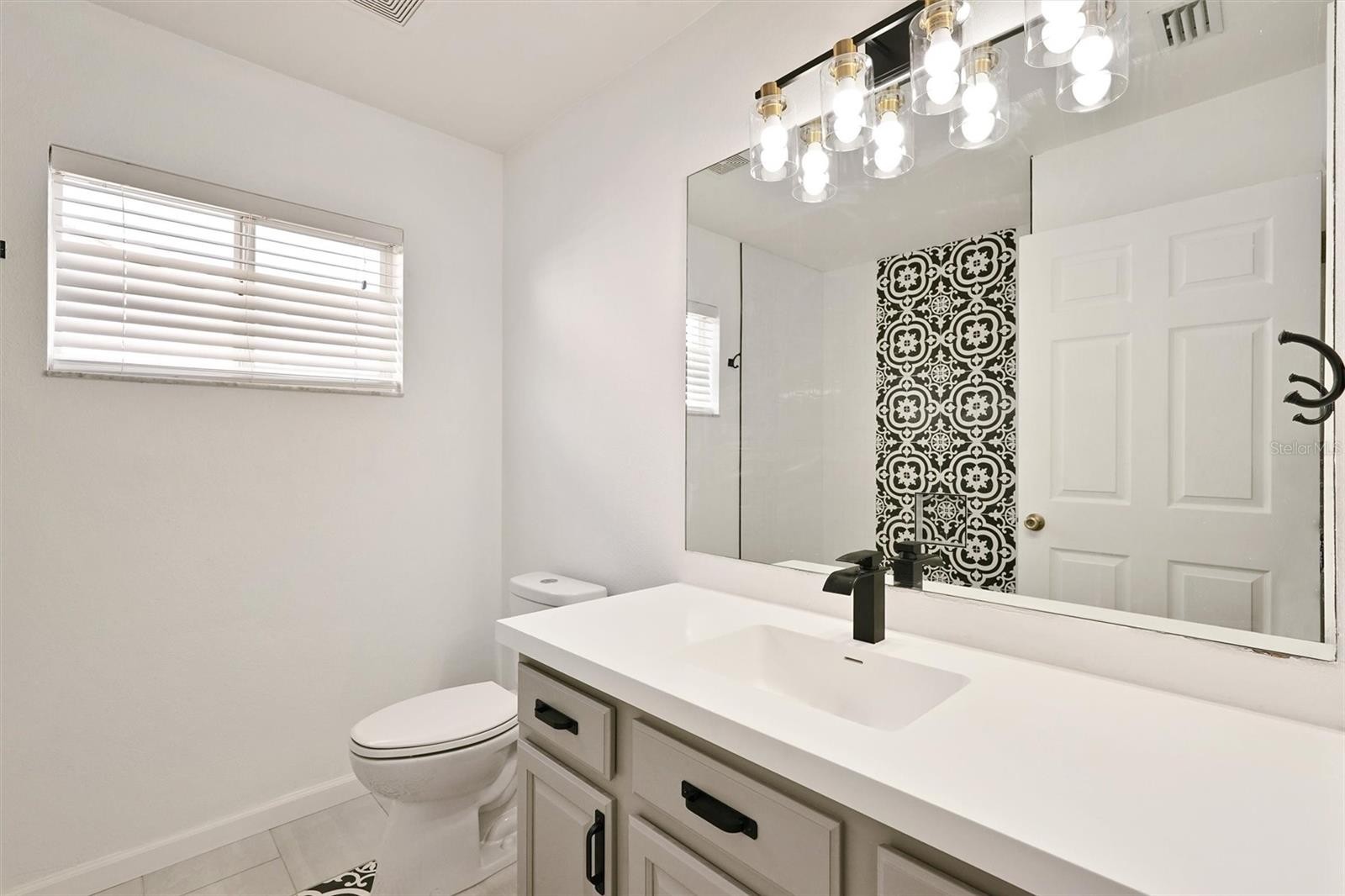 Beautifully updated 4-bedroom, 2-bath lakefront home with a fenced backyard and stunning water views! This move-in-ready property showcases thoughtful upgrades and cohesive, modern design throughout. Step inside to find brand-new porcelain tile flooring in the main living areas and kitchen, complemented by a decorative inlaid tile entry that creates a warm and inviting first impression. The fully updated kitchen features new quartz countertops, sink, faucet, dishwasher, range, microwave, and newer refrigerator, along with updated cabinet hardware for a clean, contemporary finish. All bedrooms feature waterproof luxury vinyl plank flooring with seamless transitions, combining durability and style. Both bathrooms have been completely renovated with new showers, quartz counters, sinks, fixtures, and updated lighting. The primary bath features elegant porcelain tile with a stylish subway-tile accent wall, while the guest bath includes a new tub, a subway-tile surround, a decorative black-and-white tile detail, and a custom niche. Fresh lighting and ceiling fans throughout enhance the home’s bright and modern feel. Neutral, cohesive color selections make it easy to personalize with any décor. Enjoy indoor-outdoor living on the expansive, newly redone lanai, accessible from both the family room and primary suite. Featuring new aluminum framing, screening, door, and two ceiling fans with remotes, it’s the perfect space to relax and take in peaceful lake and preserve views. Additional highlights include a roof and AC replaced in 2019, and both the interior and exterior of the home were just painted in March 2026, adding long-term value and peace of mind. Don’t miss this beautifully renovated lakefront home—schedule your private showing today!