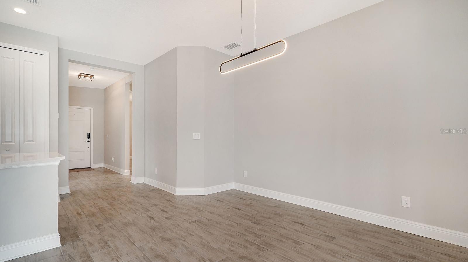 Discover the epitome of elegance in this beautifully bright villa, positioned on a premium interior lot with serene lake and lush landscaping views. Built by Neal Communities, this villa is in like new condition and exudes charm with its wood like tile throughout and 9'4" ceilings adorned with 8-foot doors. The living area features coffered ceilings that enhance the spacious feel of the open floor plan. Upon entering, double doors lead you into a tiled den just off the foyer, perfect for a home office or cozy retreat. The kitchen and bathrooms boast continuity with white quartz countertops and cabinetry, complemented by trendy bronze and black lighting fixtures and fans. The owner's suite is a true sanctuary, offering two closets, including a generous walk-in, dual separate vanities, and a beautifully tiled walk-in shower. The second bedroom also features a ceiling fan and walk-in closet for ample storage. Enjoy outdoor living in the extended, screened lanai equipped with a gas hookup for your grilling pleasure. Canoe Creek offers residents exclusive amenities including two swimming pool- one with a hot tub, grilling area, and outdoor kitchen just steps away in the villa section. The gated community also boasts a large community center perfect for hosting events, a fire pit, pickleball courts, a dog park, and a full-time event coordinator. Villa members benefit from exterior maintenance and lawn mowing, freeing you to embrace the maintenance-free lifestyle. Located in the vibrant area of Parrish, you are minutes away from shopping, dining, gyms, and stores, with easy commutes to St. Petersburg, Tampa, and Sarasota. Come and experience the perfect blend of luxury and convenience in this stunning villa.