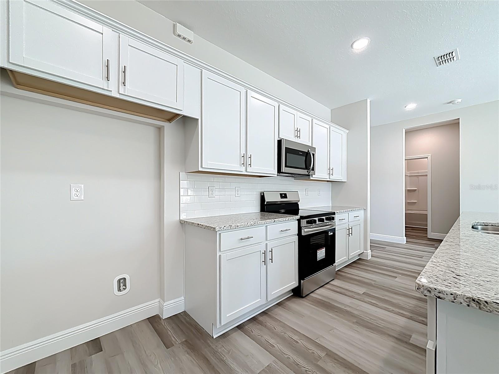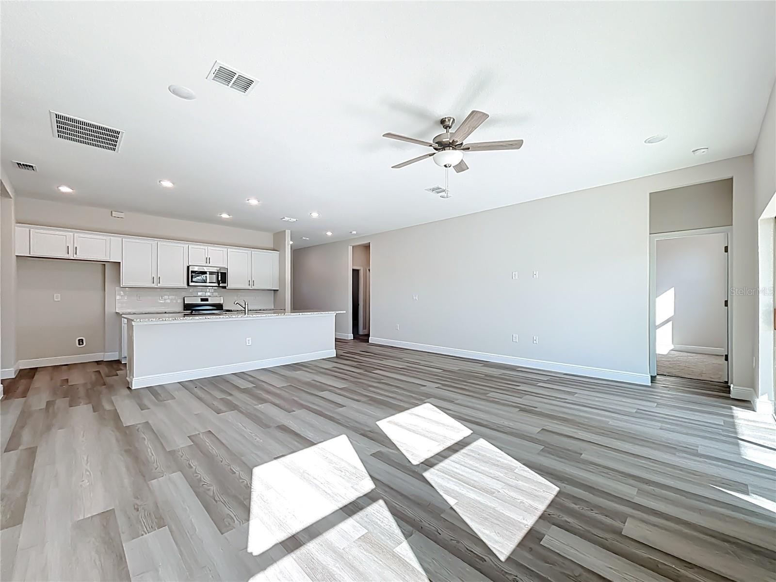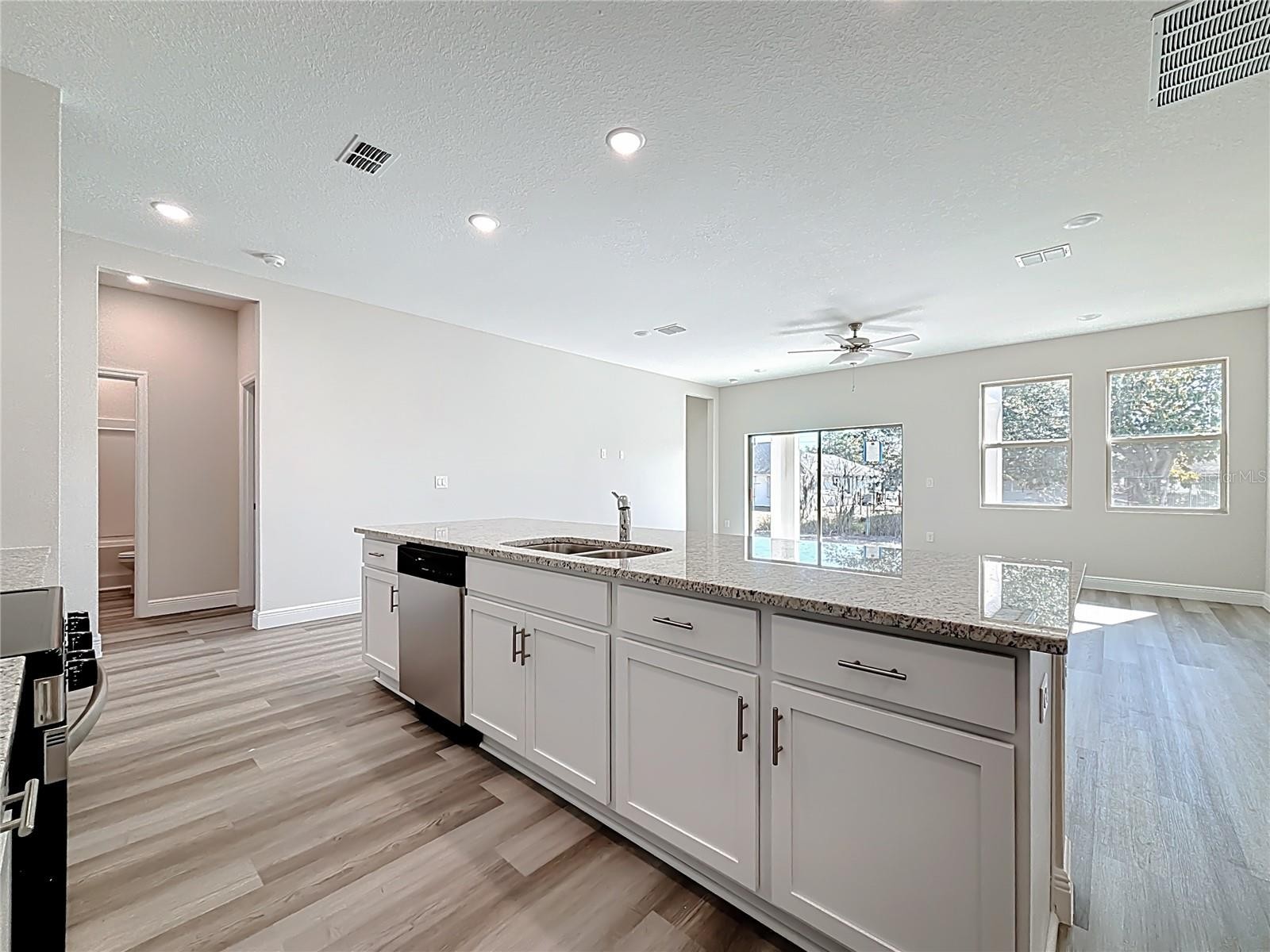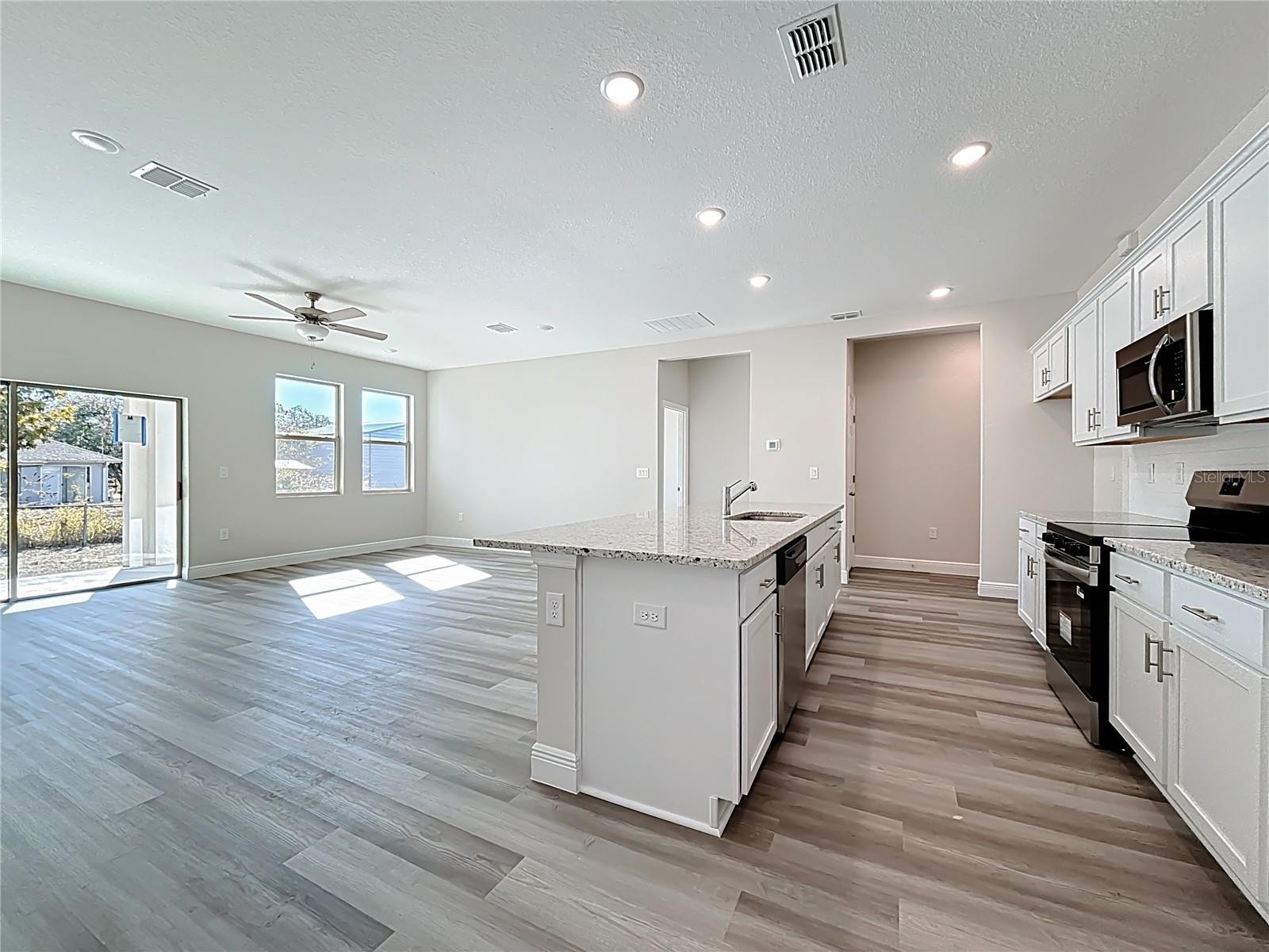 Excellent price with luxury features and move-in ready! A brand new home with city water and septic system in North Port – no HOA fees! Great location! Ideally located for quick access to Highway 41, shopping, schools, medical facilities, Warm Springs Park, and the Aquatic Park. This affordable new home is ready for you and is just what you've been looking for... No HOA fees and city water! This home features 9-foot ceilings, a spacious and open layout with a versatile floor plan. The home has 4 bedrooms, 2 full bathrooms, a formal dining room, a living room, an open kitchen, and a two-car garage, with 1,810 square feet of living space. The living space is well-utilized, with high ceilings and numerous windows providing natural light. The interior finishes will provide you with the quality and luxury you were looking for in your new home. This home has a split floor plan, with the primary suite on one side and the guest bedrooms on the other. The primary bedroom has tray ceiling and large windows allowing for plenty of natural light. You will also enjoy a spa-like bathroom with a spacious walk-in shower with floor-to-ceiling tiled walls and a glass enclosure. It also features a linen closet, a double vanity, and a large walk-in closet. The living room has large windows and several LED light fixtures providing ample light, with access to the covered lanai. The living room is open to the kitchen, where you will find a large center island with additional seating for casual dining and plenty of cabinetry. The kitchen features stainless steel appliances, Shaker-style cabinets with crown molding , decorative hardware, a subway tile backsplash, and granite countertops. The dining room is located at the front of the house, with large windows allowing for abundant natural light. The home includes luxury vinyl plank flooring in the main living areas and bathrooms for durability and comfort. You'll love these floors! They are easy to maintain and offer a modern design, perfect for new homes. Other features include the same beautiful Shaker-style cabinets with hardware and granite countertops in the bathrooms, 5-inch baseboards, a garage door opener, exterior gutters, R38 insulation, a 16 SEER HVAC system, and much more. Visit our showroom and compare the features and quality to other homes, and you'll see the difference. We make buying easy for you! The photos and videos are the same floor plan, but different location.