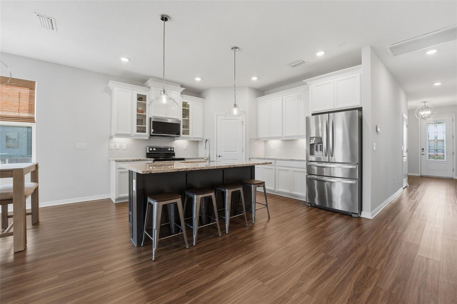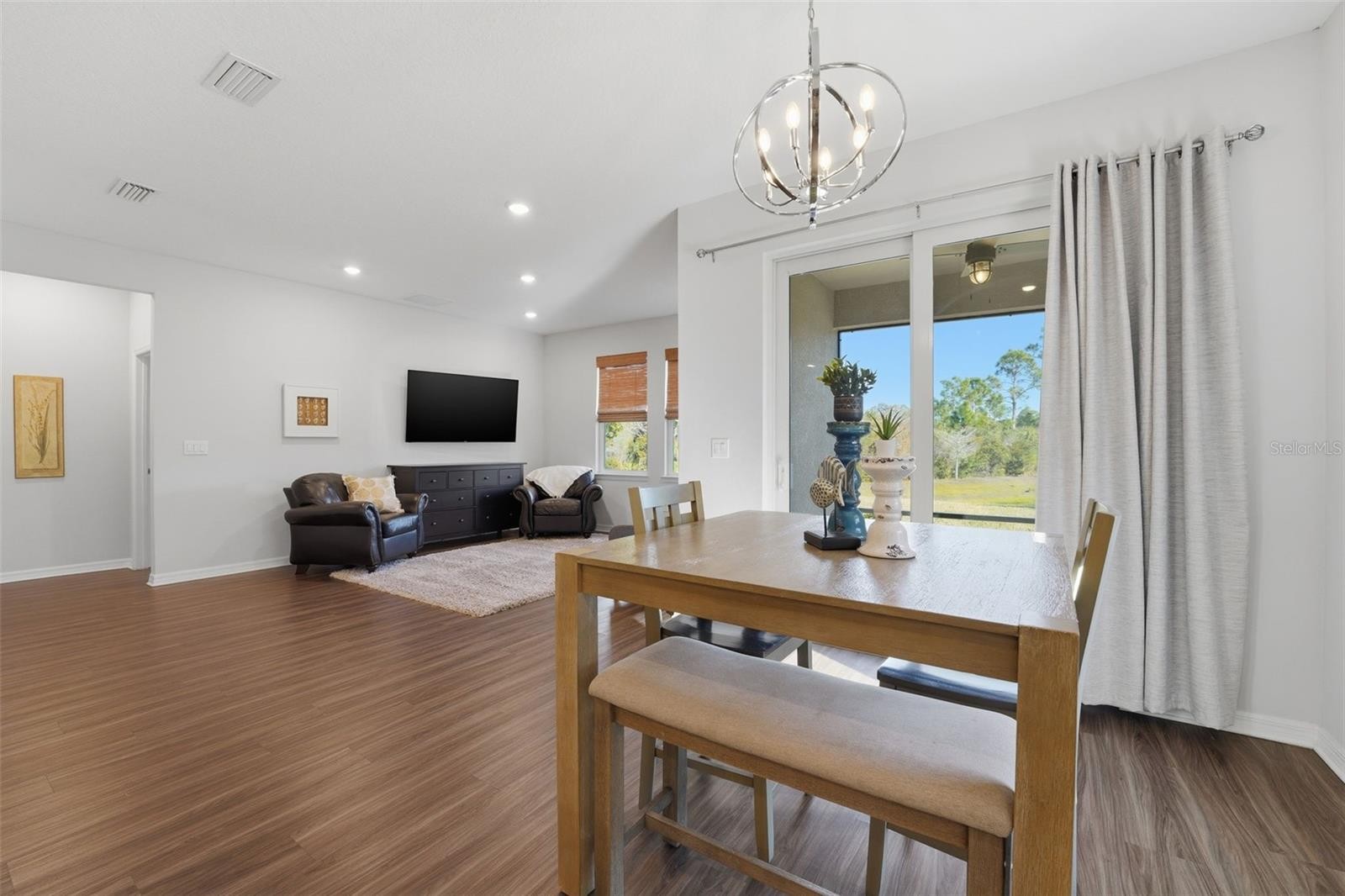 Luxurious Valencia Model Home with Tranquil Preserve and Water Views. Discover the perfect blend of serenity and convenience in this highly sought-after Valencia model, a four-bedroom single-family home located within the secure, low-maintenance, gated community of Venice Woodlands. Enjoy breathtaking views from your private lanai, with a tranquil wooded preserve sanctuary and waterfront as your daily backdrop. Nothing behind you but trees, water and wildlife! Tucked away on the border of Nokomis and Venice, this prime location places you just minutes from the vibrant centers of Downtown Venice, Wellen Park, and stunning Gulf Coast beaches, all while offering a peaceful retreat from the hustle and bustle. Built in 2020, this meticulously appointed home showcases a host of features discerning buyers will appreciate, including elegant stone countertops throughout, soaring tall ceilings, glass-front kitchen cabinets, a double oven, and the peace of mind provided by hurricane impact windows. As a Meritage home, it is built with superior energy efficiency, from insulation to appliances and HVAC, ensuring long-term value and comfort. The community provides exceptional value with one of the area’s lowest HOA fees and no CDD fee. Residents enjoy a full suite of resort-style amenities, including tennis and pickleball courts, a fitness center, a playground, and a stunning resort-style swimming pool, all conveniently located just across the street.