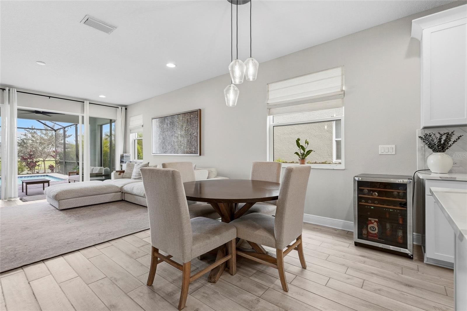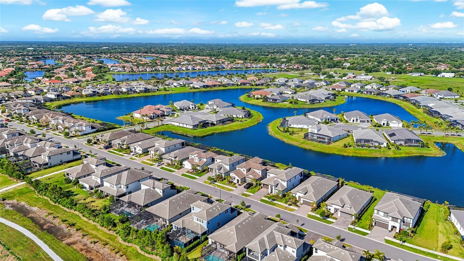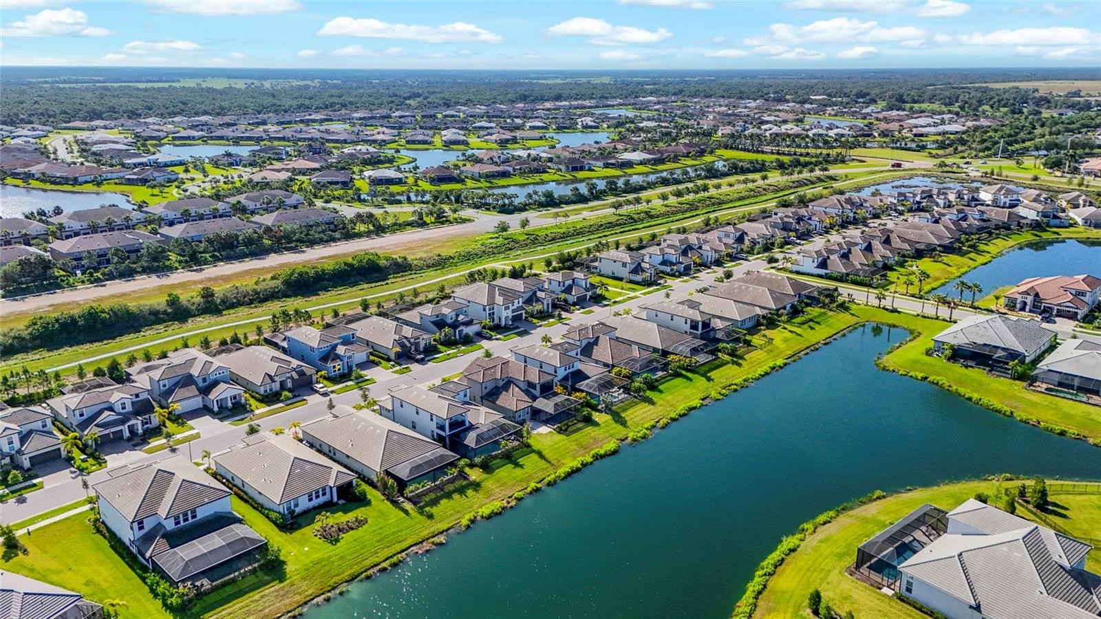 Tucked inside the gated community of Worthington in East Sarasota, this lakefront pool home offers a side of Sarasota that many buyers do not even realize exists. Quiet streets, natural surroundings, and newer construction come together to create a setting that feels removed, yet remains just minutes from everything that makes Sarasota so desirable. Built in 2022 and offering over 3,000 square feet of thoughtfully designed living space, this residence delivers the perfect balance of function, flexibility, and lifestyle. From the moment you walk in, you are greeted by clean lines, tile flooring throughout the main level, and a layout that flows effortlessly from one space to the next. The kitchen is designed for both everyday living and entertaining, featuring white cabinetry, quartz countertops, a large center island, natural gas cooking, and stainless steel GE appliances. It opens seamlessly into the main living area, creating a bright and connected space that feels both comfortable and inviting. The primary suite is privately positioned and takes full advantage of the home’s lakefront setting, offering peaceful water views, a tray ceiling, upgraded lighting, and a spacious bathroom complete with dual vanities, a fully tiled walk in shower, and a custom built in closet system. Flexibility is a key feature of this home, with a downstairs den that works perfectly as a home office and an upstairs bonus space that can be tailored to fit your lifestyle, whether that is a media room, gym, or additional living area. Step outside and the home truly comes to life. The saltwater pool, complete with an electric heater, overlooks a wide lake view framed by natural landscaping for added privacy. With its west facing exposure, this is the kind of backyard where sunsets become part of your daily routine. Worthington is a newer gated community known for its quiet atmosphere and low density design, offering a more private alternative to larger master planned neighborhoods. With no CDD fees and a location just east of I 75, residents enjoy quick access to Waterside at Lakewood Ranch, UTC shopping and dining, and some of Sarasota’s favorite local spots. Stottlemyer’s Smokehouse, the Celery Fields, and Big Top Brewing are all just a short drive away, making it easy to enjoy live music, outdoor activities, and local craft culture without going far from home. This is a rare opportunity to own a move in ready lakefront pool home in one of Sarasota’s most underrated communities, where space, privacy, and convenience all come together.