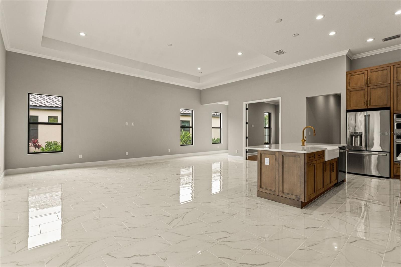Welcome to the Vicenzo at Aria — where refined design meets the ease of RESORT-STYLE LIVING. This beautifully appointed 3-bedroom, 3.5-bath residence offers 2,412 square feet of OPEN, THOUGHTFULLY DESIGNED SPACE on a .22-acre homesite. From the moment you enter, you’ll notice the architectural details — CROWN MOLDING, RECESSED CEILINGS, 8-FOOT INTERIOR DOORS — and the way natural light fills the great room.The POCKET SLIDING GLASS DOOR opens wide to the EXTENDED COVERED LANAI, creating seamless indoor-outdoor living. Step outside to your SCREENED POOL WITH WATER FEATURE and imagine quiet morning coffee, afternoon swims, and evenings under the Florida sunsets. The OUTDOOR KITCHEN ROUGH-IN is already in place, making future entertaining effortless. The GOURMET KITCHEN is both elegant and functional, featuring QUARTZ COUNTERTOPS, a LARGE CENTER ISLAND with APRON-FRONT FARMHOUSE SINK, GE CAFÉ STAINLESS APPLIANCES, GAS COOKTOP, WALL OVEN, UNDER-CABINET LIGHTING, and generous cabinetry. It’s a space designed for gathering whether hosting friends after pickleball or enjoying a relaxed dinner at home. The PRIMARY SUITE offers a true retreat, complete with DUAL WALK-IN CLOSETS and a SPA-INSPIRED BATH with FREESTANDING SOAKING TUB and EXPANSIVE WALK-IN SHOWER. A PRIVATE ENSUITE BEDROOM and additional guest bedroom provide comfort and flexibility for visiting family and friends. Additional highlights include IMPACT-RESISTANT GLASS (SIDES & REAR), SMART HOME PACKAGE, 50-GALLON GAS WATER HEATER, PAVER DRIVEWAY AND LANAI, and a THREE-CAR GARAGE. Positioned within the gated community of Aria, this homesite backs toward the COMMUNITY AMENITIES AND PICKLEBALL COURTS — offering OPEN SIGHTLINES, A VIBRANT BACKDROP, and the convenience of being just moments from the CLUBHOUSE, FITNESS CENTER, and social activities. For those who enjoy an active lifestyle, it’s like having the heart of the community just beyond your backyard. New construction without the wait. Elevated finishes without compromise. A lifestyle that blends privacy, activity, and ease. Schedule your private showing and experience Aria living for yourself.