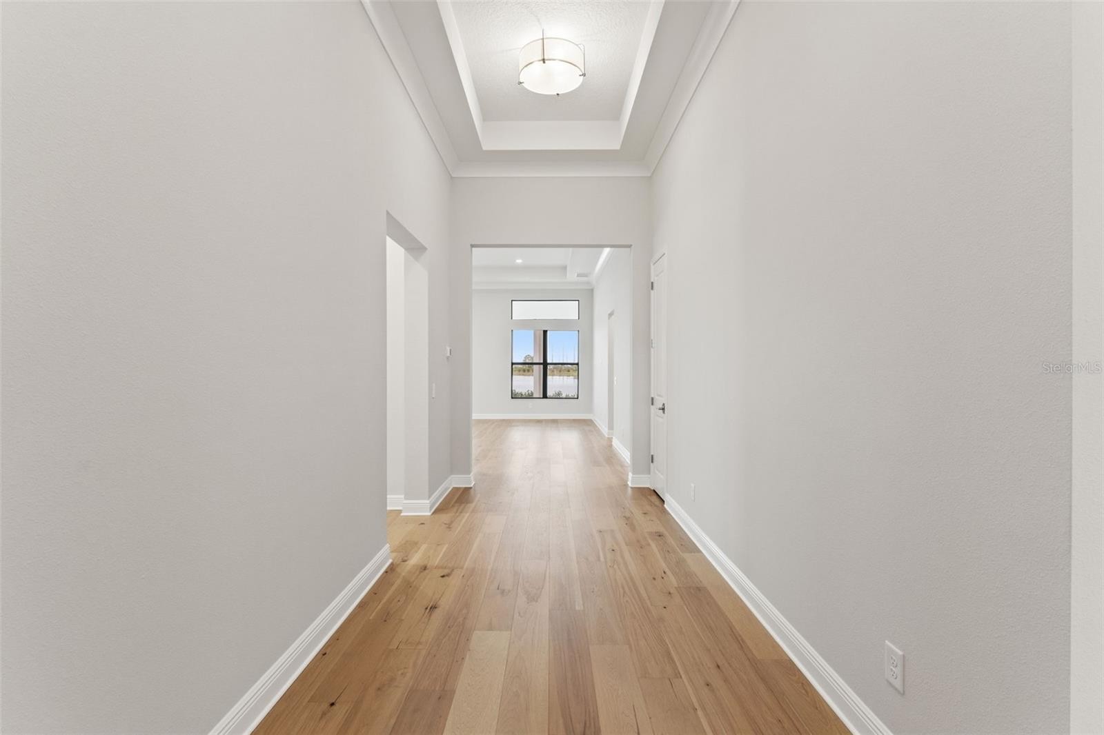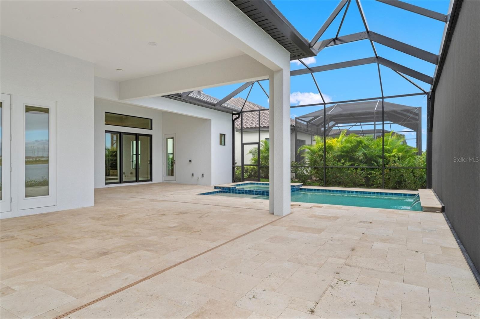 One or more photo(s) has been virtually staged. Neal Signature Homes is proud to present this brand-new CORTINA floor plan nestled in the gated community of Aria. Offering 3 bedrooms, 2.5 baths, a DEN/OFFICE/GYM, and an upgraded 2-CAR GARAGE PLUS GOLF CART GARAGE. Every square inch is beautifully designed. The home features an INCREDIBLE POOL AND SPA, a huge screened enclosed lanai overlooking a GORGEOUS, SERENE POND, and impact glass on the sides and rear. Inside, you'll find upgraded wood flooring throughout the main areas, recessed ceiling details, and a highly upgraded kitchen with LEVEL 6 CABINETS, stacked uppers, soft-close doors and drawers, full-height quartz backsplash, roll-outs, pot and pan drawers, and a GE Café appliance package including gas cooktop, vented hood, French-door refrigerator, wall oven, and Advantium microwave. The owner’s suite includes a luxury walk-in shower with DOUBLE RAINHEADS, frameless glass, quartz counters, and upgraded cabinetry with double drawer banks. The owner's suite closet is what dreams are made of! Additional upgrades include the pool bath with exterior access, outdoor kitchen prewire, pool/spa prewire, enhanced HVAC, smart-home package, paver driveway and lanai, and upgraded landscaping. Residents enjoy regular Maintenance-Assisted Landscaping including Lawn Mowing, Trimming and Fertilization, Plant Bed Trimming, Weeding and Fertilization, Annual Mulching and Common Area Maintenance. Aria offers a RESORT-STYLE HEATED POOL AND SPA, 24-hour gated entry, STUNNING clubhouse with service kitchen, covered verandahs with bar area, 24/7 Fitness Center, 4 Pickleball Courts, Fire Pit, and event lawn all just minutes to beaches, dining, and downtown Venice.