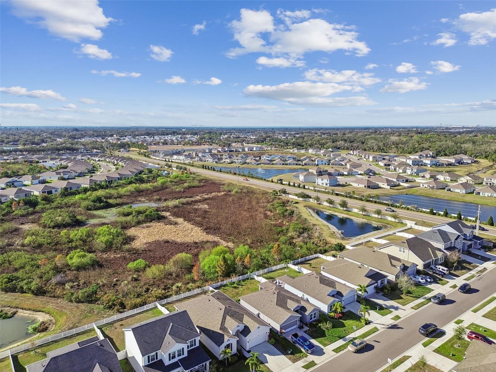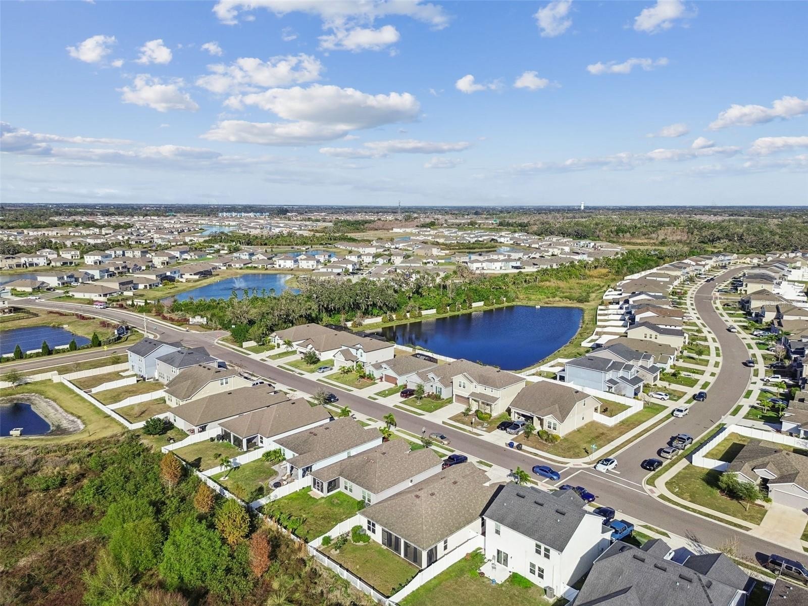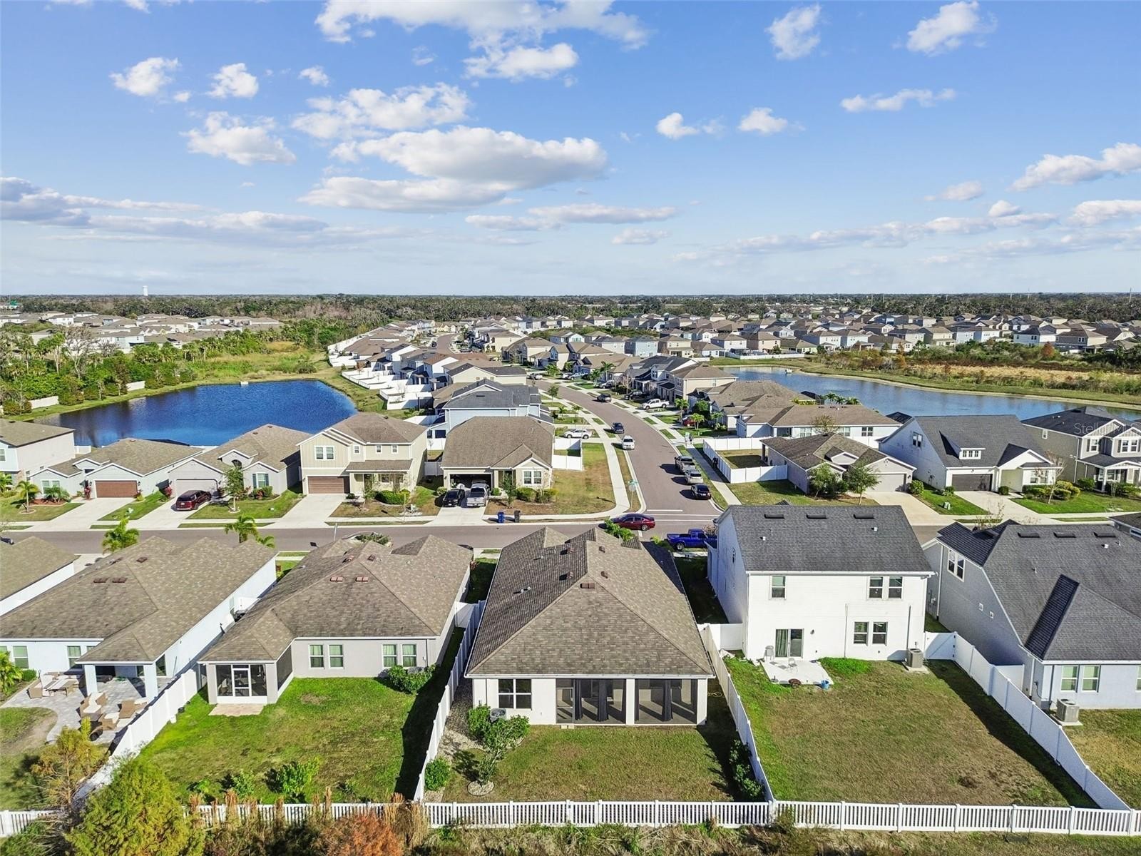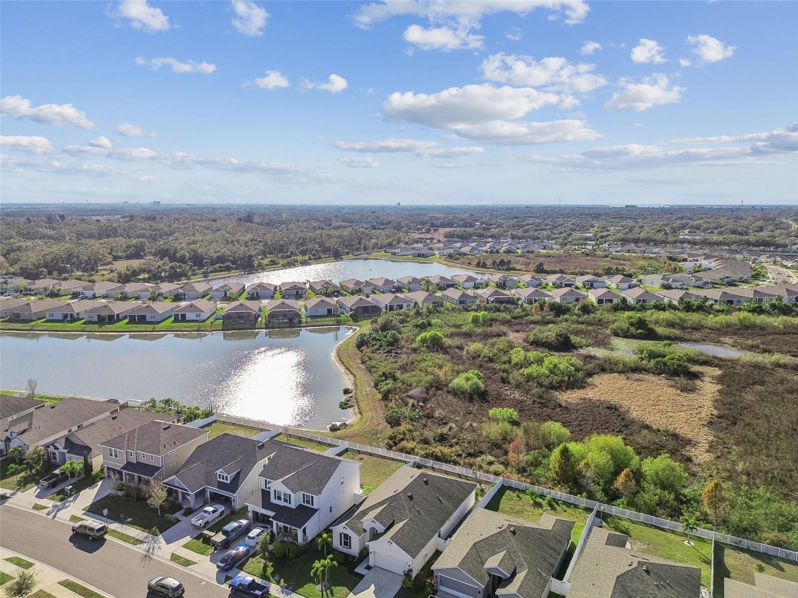 One or more photo(s) has been virtually staged. Welcome to 4807 Windy Hammock, a beautifully maintained 2020 inland-built home offering 2,004 square feet of thoughtfully designed living space with peaceful pond views. This 4-bedroom, 2-bath residence with a 2-car garage features neutral tile flooring throughout the main living areas, kitchen, bathrooms, and laundry room, with two bedrooms offering luxury vinyl plank flooring and the remaining two comfortably carpeted. The spacious primary suite is a true retreat, complete with two walk-in closets and an en-suite bathroom featuring dual sinks, a separate water closet, and a large walk-in shower. The kitchen is ideal for both everyday living and entertaining, offering abundant cabinetry, a very large center island, stainless steel appliances, and a pantry. Enjoy Florida living year-round on the large screened lanai, overlooking the fully fenced backyard and tranquil pond, perfect for relaxing or hosting guests. Additional features include a whole-home water filtration system, adding extra comfort and value. Conveniently located near shopping, dining, and major roadways and just a 20 minute drive over the scenic skyway bridge to St Pete Beach and only 30 minutes to Sarasota Siesta Keys Beach. This home blends space, functionality, and serene Florida living.