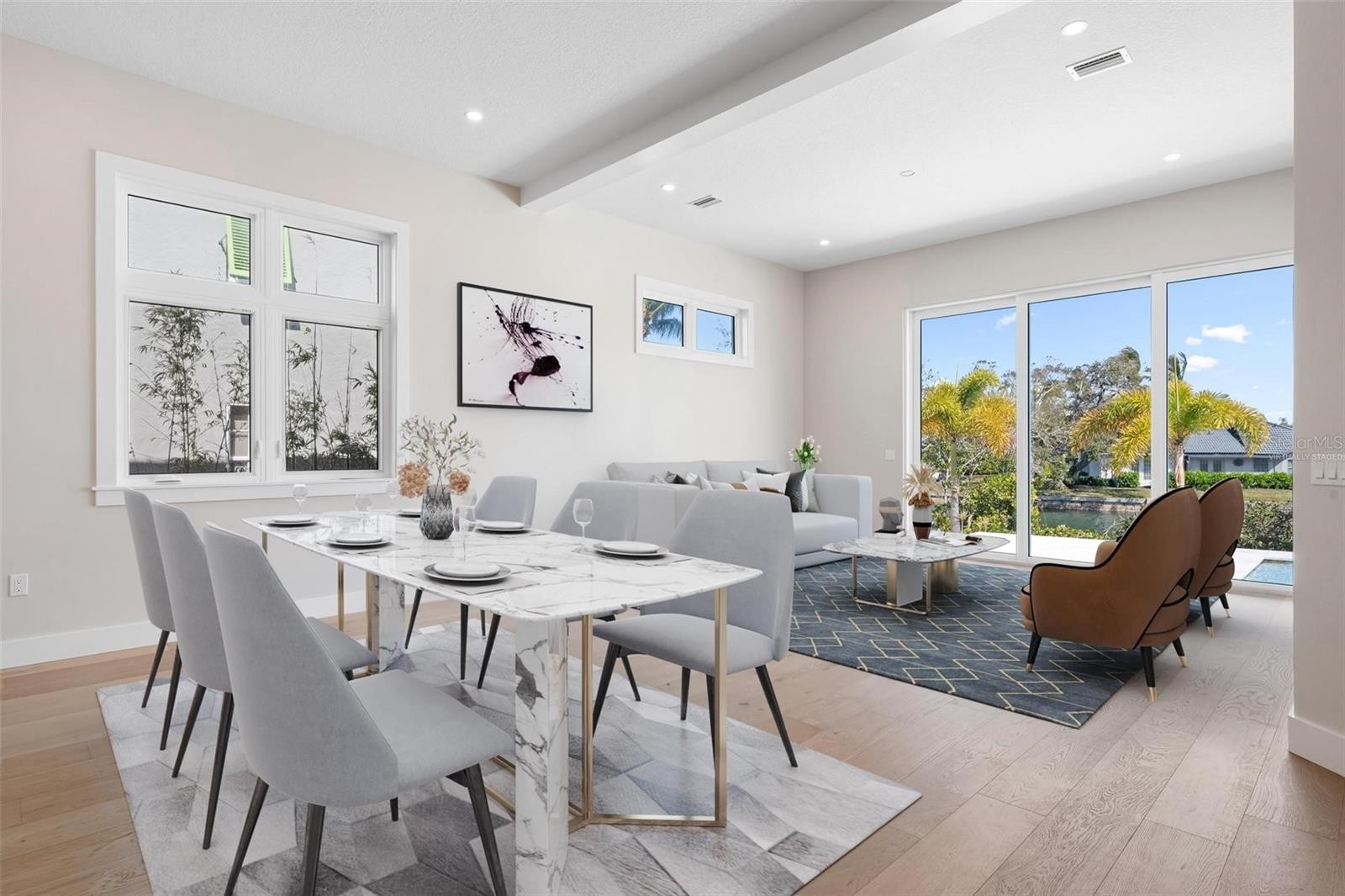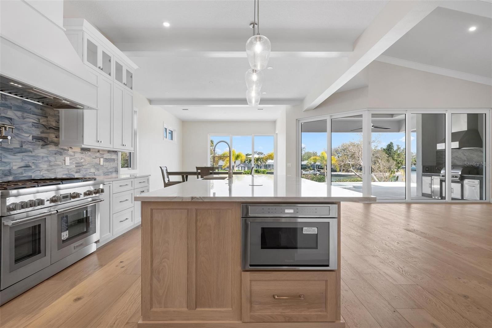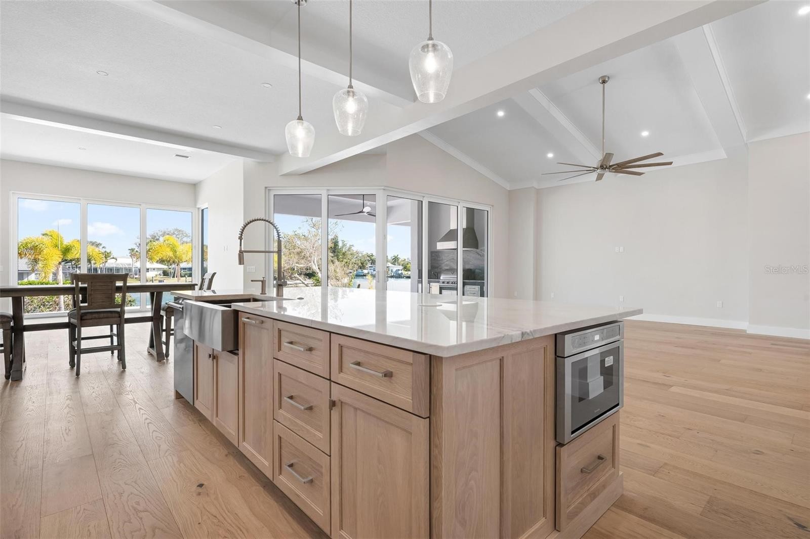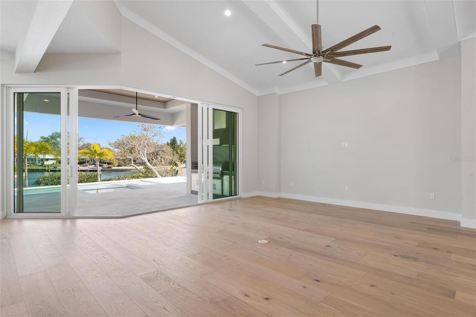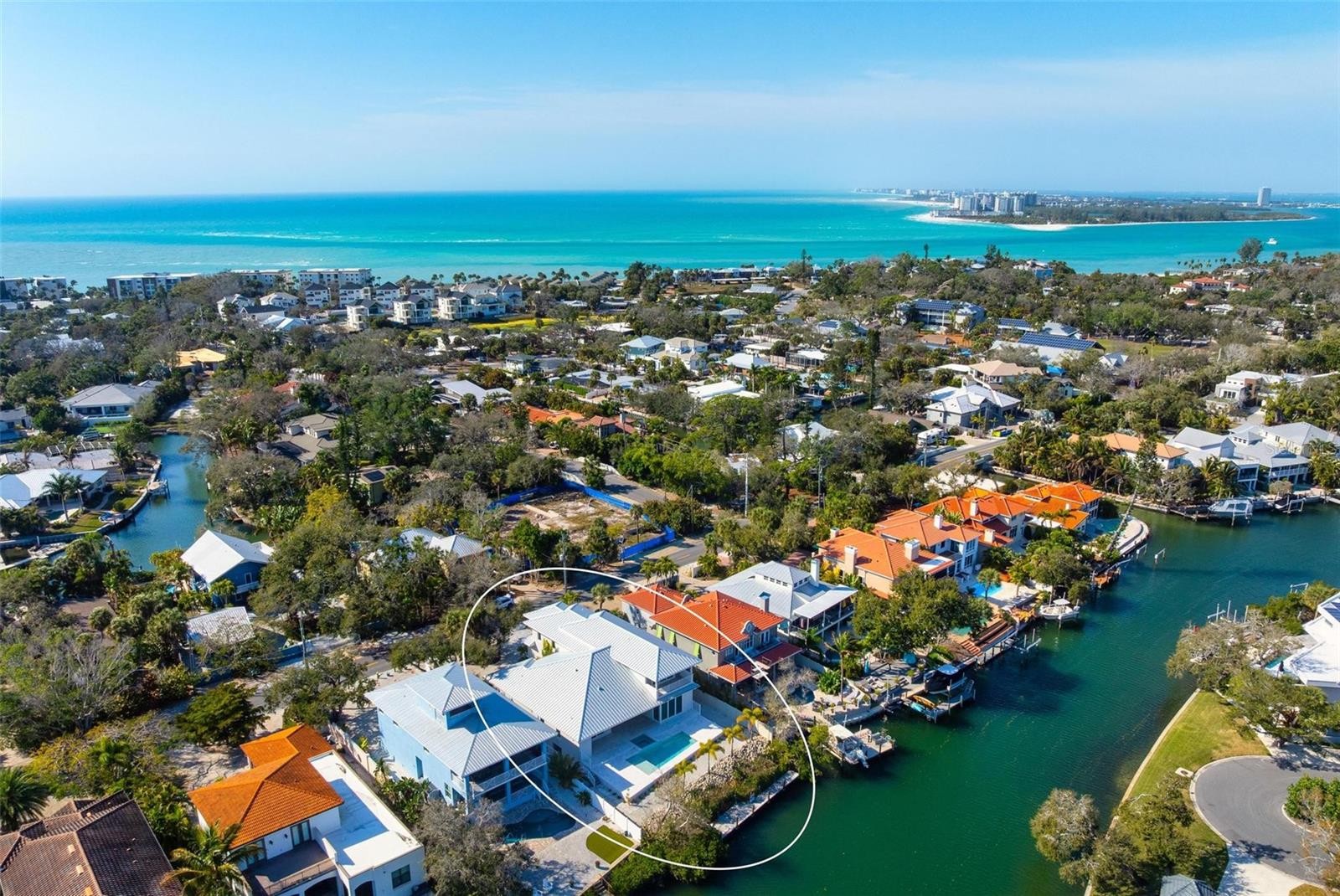 One or more photo(s) has been virtually staged. New Construction. Come see this coastal Siesta Key home located on the Grand Canal. The home is located on prime waterfront property with the best views of the Grand Canal, which provides easy access to the bay. A boater's dream! This three-level waterfront property offers the best in luxurious living, with four spacious bedrooms and four full baths and two half baths. Step inside the impressive front doors into the bright foyer which leads to the spacious great room, well-planned kitchen and bonus and/or dining room. Take in the beautiful wide views of the Grand Canal from your gorgeous pool, spa and travertine deck or while cooking from your outdoor kitchen. The first floor also features the primary bedroom, powder bath, and laundry room. The beauty of the home is the open concept living area which allows for natural light to flow from large windows and slider throughout the space. Located on the second floor are the second and third bedrooms each with their en suite bathroom. On the third floor, you will find another master suite where you can enjoy more waterfront views from its balcony. Enjoy your private den or office with walk in closet and mechanical storage closet. This home is situated in a prime location, just moments away from the world-famous Siesta Key Beach, known for its pristine beaches and clear waters. Close enough to famous Siesta Key Village but still out of the hustle and bustle. Also this home is in walking distance to The Out of Door Academy. Explore local dining and shopping or enjoy all the activities that Siesta Key living provides, fishing, boating, kayaking, walking, biking. You can even golf cart to the Siesta Key Village. Come see for yourself, this brand new residence and feel the Siesta Key life style. This is an exceptional custom home with well appointed extra features that will give you the best, easiest coastal living in Sarasota. Don't miss out on this home! Some photos virtually staged.