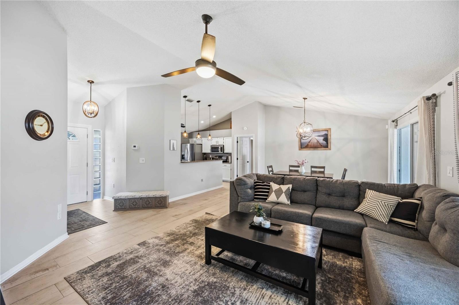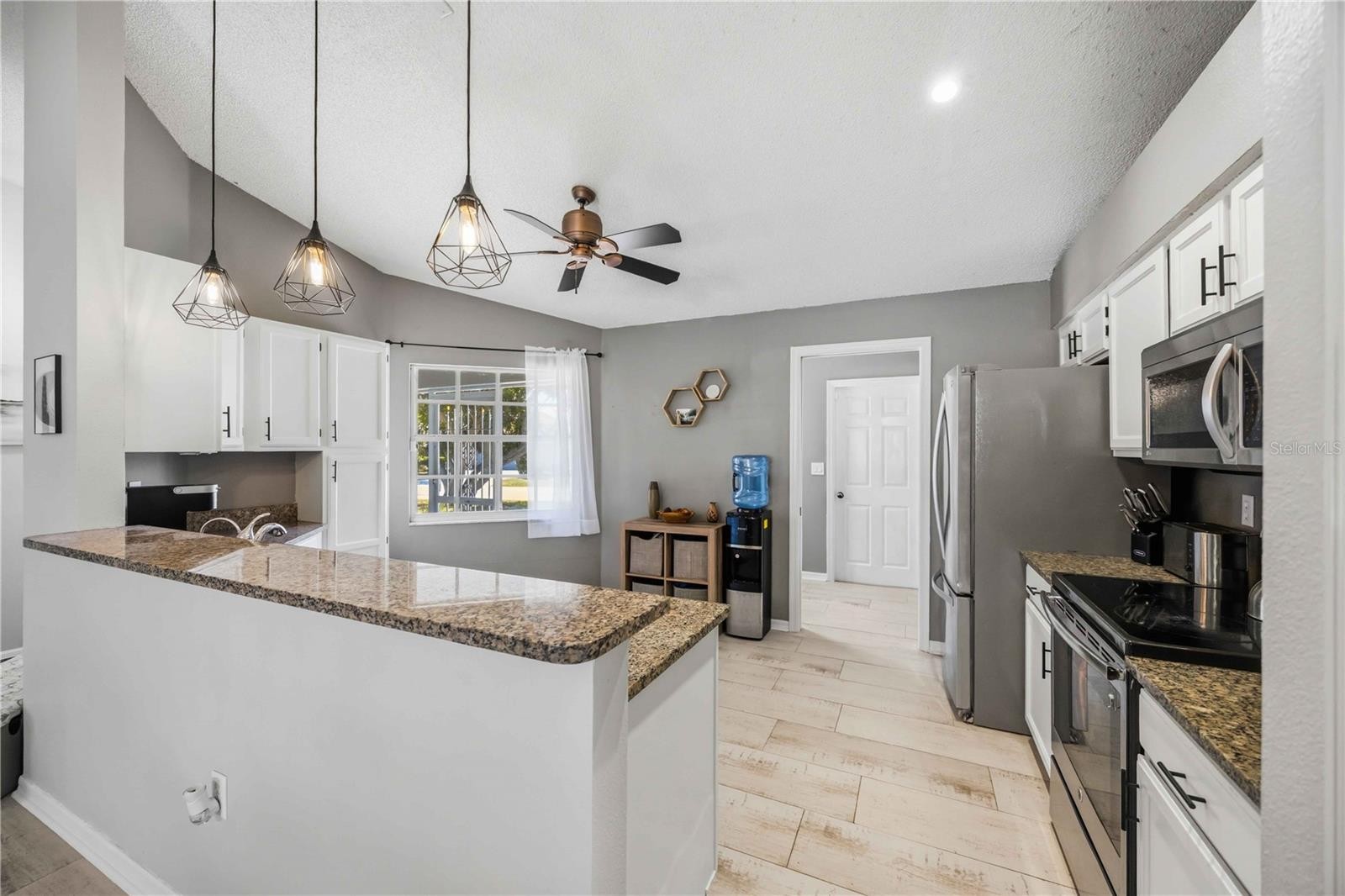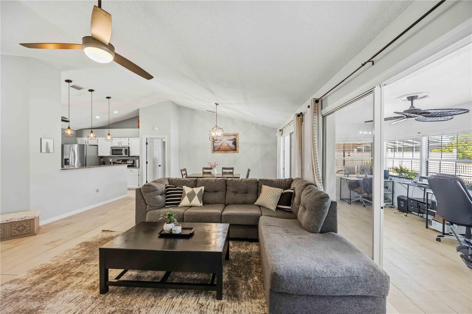 Welcome to The Grove at Beekman Place, an inviting, deed-restricted community of just 98 homes known for its friendly, close knit atmosphere. This well-maintained 3 bedroom, 2 bath residence offers a thoughtfully designed split bedroom floor plan with vaulted ceilings and wide plank LVP flooring throughout the main living areas. The open-concept kitchen features granite countertops, stainless steel appliances, a breakfast bar, and stylish pendant lighting, seamlessly connecting to the living and dining spaces...perfect for everyday living and entertaining. Enjoy peaceful lake views from the Florida room overlooking the fenced backyard, or relax on the screened lanai just off the primary suite. The spacious primary bedroom includes sliding glass doors to the lanai, a walk-in closet, and an ensuite bath with double sink vanity, soaking tub, and separate shower. Additional highlights include a 2 car attached garage, roof replaced in 2018, new water heater, and updated A/C compressor for added peace of mind. Ideally located just minutes from world renowned beaches including Siesta Key Beach, as well as downtown Sarasota’s vibrant dining, arts, and cultural scene, featuring theaters, museums, the opera house, ballet, and the Florida Orchestra. Convenient access to I-75 allows for easy travel to Tampa, Orlando, Fort Myers, and Naples. Enjoy the perfect blend of comfort, convenience, and Florida lifestyle living in this charming Sarasota home.