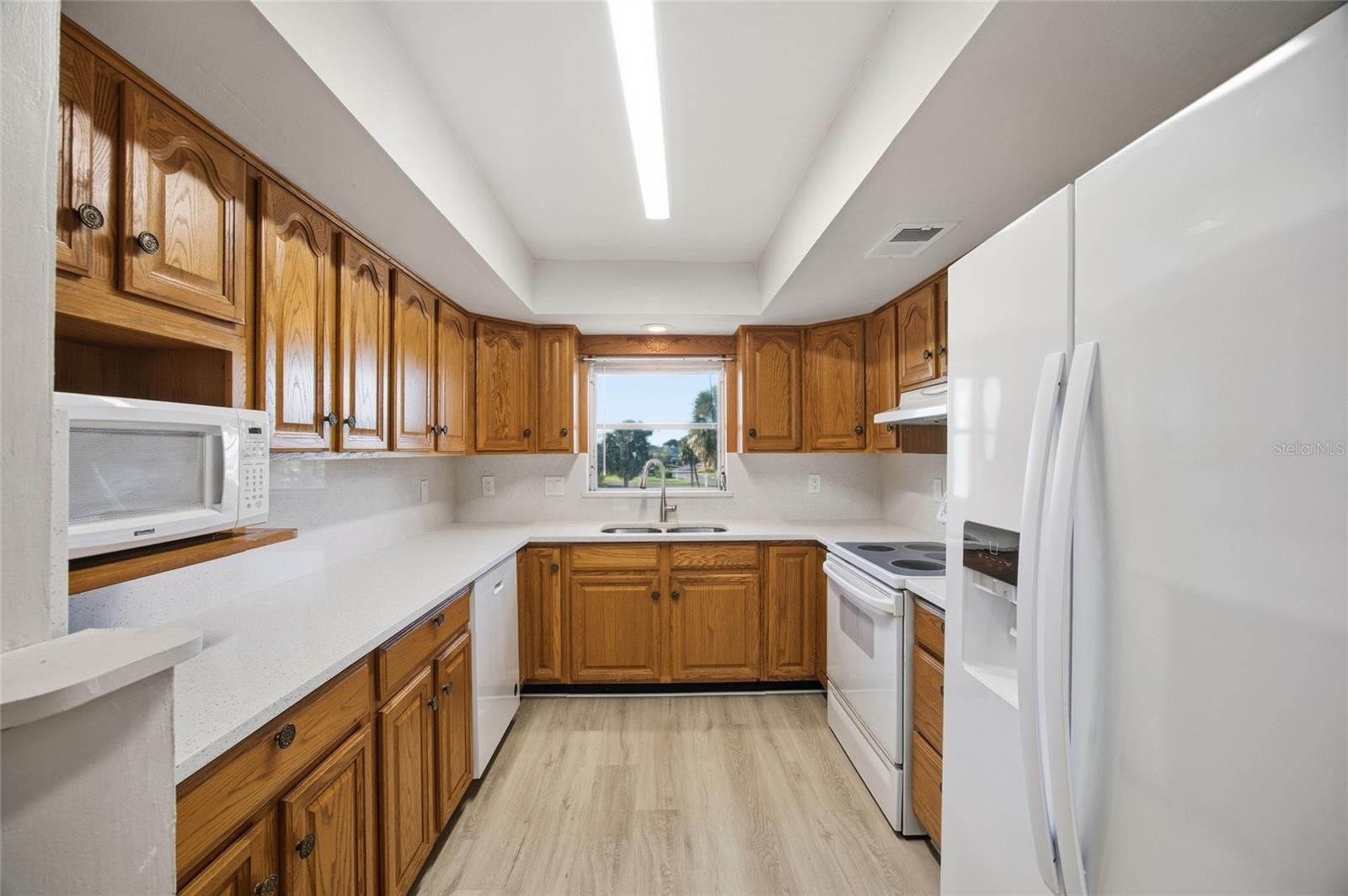 Welcome to your breezy Bradenton retreat in the desirable coastal community of Mount Vernon. This spacious two bedroom, two bathroom second floor condo offers relaxed Florida living with serene pond views and glimpses of Sarasota Bay. The home has been beautifully refreshed with brand new luxury vinyl flooring throughout, brand new quartz countertops, new fixtures, and fresh paint, creating a clean and modern move in ready feel. The former lanai has been enclosed to provide a bright and flexible bonus space that works well as a reading nook, office, hobby area, or morning coffee spot. The open floor plan brings in abundant natural light and creates an inviting flow for both daily living and entertaining. The community maintained roof was replaced in 2019 for added peace of mind. Mount Vernon offers an active lifestyle with a heated resort style pool, pickleball and tennis courts, shuffleboard, boat slips, a bayfront park, nature trails, a butterfly garden, kayak launch and storage, and a clubhouse with a library, game room, and banquet space. Your monthly fee includes cable, internet, water, sewer, trash, pest control, landscaping, and exterior maintenance, allowing for convenient and stress free living. The location is ideal, with a quick five minute drive or twenty minute bike ride to some of Florida’s most beautiful beaches. Whether you are looking for a full time residence, a seasonal getaway, or a smart investment opportunity, this condo offers comfort, value, and a true coastal lifestyle. Come take a look and see why life at Mount Vernon feels like vacation every day.