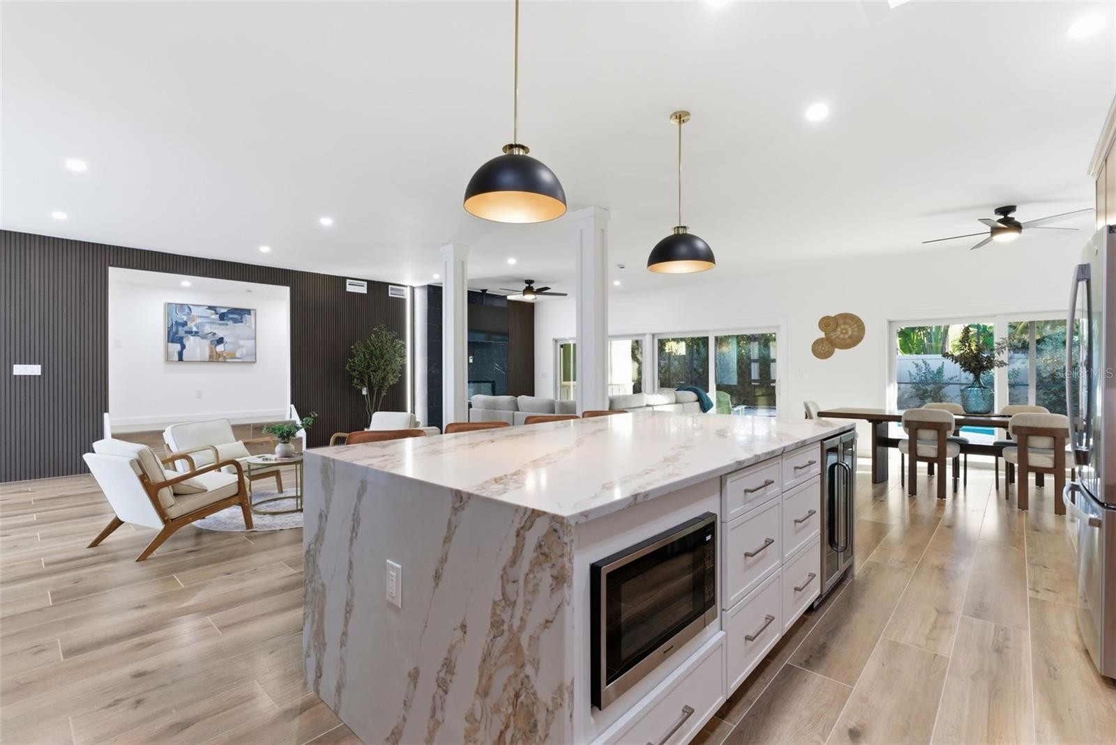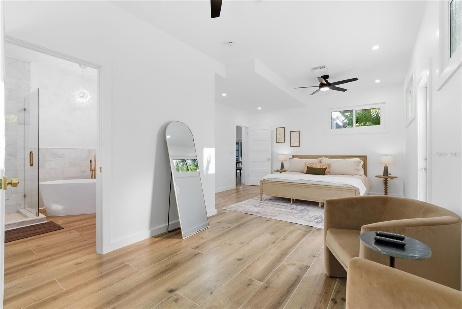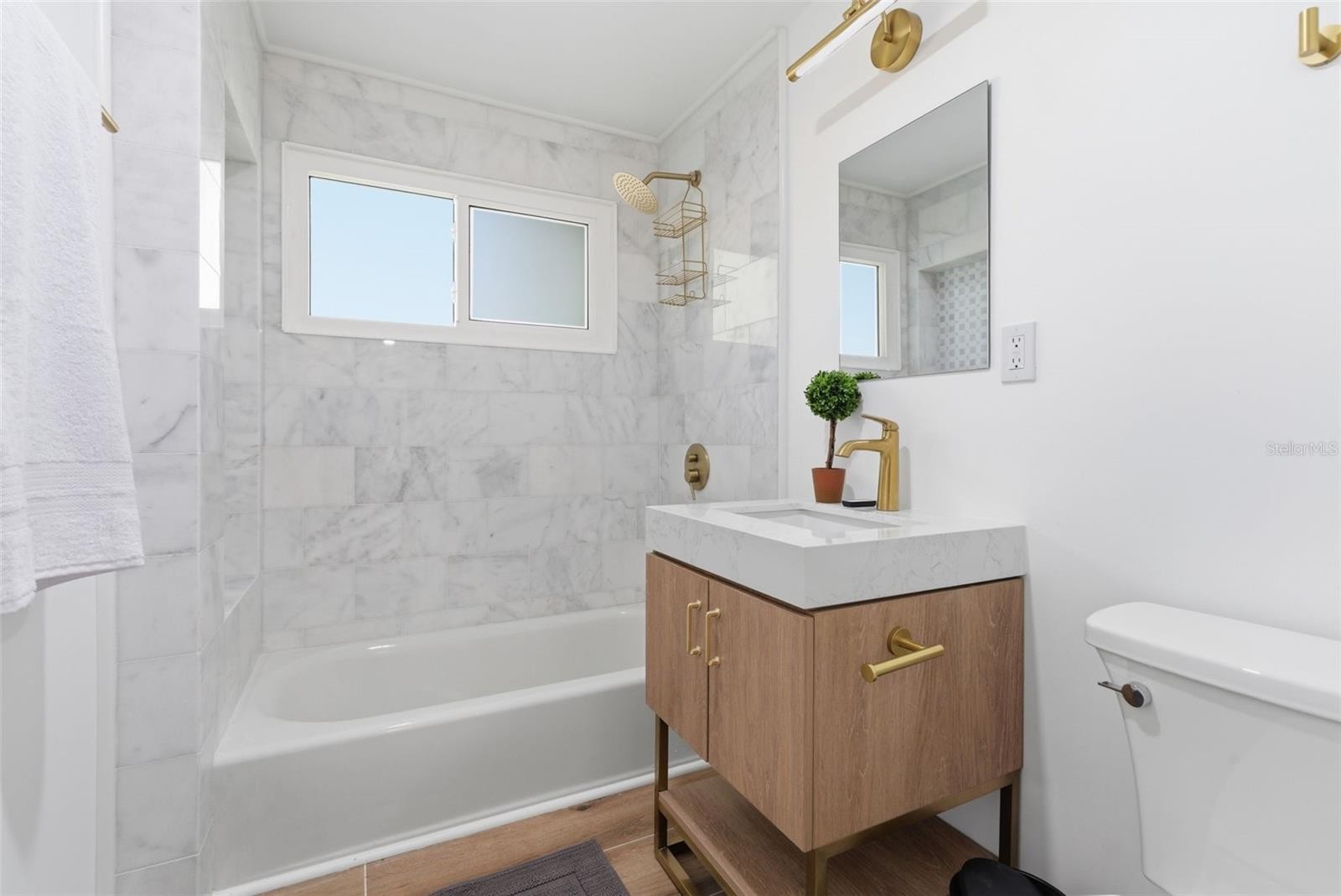 FULLY FURNISHED rental available in Siesta Key, close to the beach and walking distance to Siesta Key Village. Rent a Rare Piece of Sarasota's Architectural History on Siesta Key! Step into timeless design and architectural significance with this rare mid-century modern masterpiece, situated on a private double lot in the heart of Siesta Key. Boasting 2,500 square feet of light-filled living space, this 4-bedroom, 3-bathroom residence has been meticulously renovated while preserving its original architectural integrity. Clean lines, expansive impact windows, and an open floor plan define the home’s iconic style, inviting the outdoors in and creating a sense of calm sophistication throughout. Inside, the split floor plan provides distinct zones for privacy and connection. The primary suite is a sanctuary of its own, complete with private access to the outdoors, a luxurious bath featuring a freestanding soaking tub, and a marble-lined walk-in shower. On the opposite side of the home, three additional guest bedrooms provide comfort and style—including a junior suite with its own private bath, full marble detailing, and oversized picture window with views of the pool and deck area. High-end renovations include: New commercial-grade roof (30-year lifespan); High-impact windows and doors throughout the home; Durable wood-grain tile flooring; Quartz waterfall countertops & custom wood cabinetry in the kitchen; Floor to ceiling marble tile in all bathrooms; All new major appliances including HVAC, pool equipment and water heater; Spray foam insulation throughout the home for an extra layer of protection; and designer finishes and curated lighting throughout. Step outside to your personal paradise: a heated saltwater pool with screened enclosure, surrounded by lush tropical foliage for complete privacy and serenity. The home is ideally located just blocks from Roberts Bay and less than a mile from the award-winning crystal sands of Siesta Key Beach. A true retreat, the lushly landscaped double lot offers unmatched privacy and space—perfect for entertaining or simply relaxing beneath the tropical canopy. Whether you're a collector of architectural homes, a beach lover, or simply someone looking for the rare blend of heritage, location, and luxury, this one-of-a-kind property is your opportunity to own an iconic piece of Sarasota’s rich design legacy.