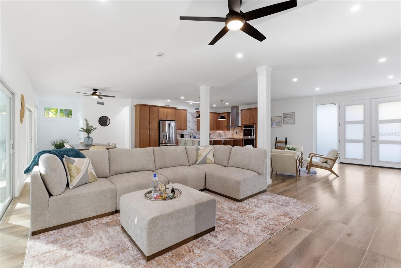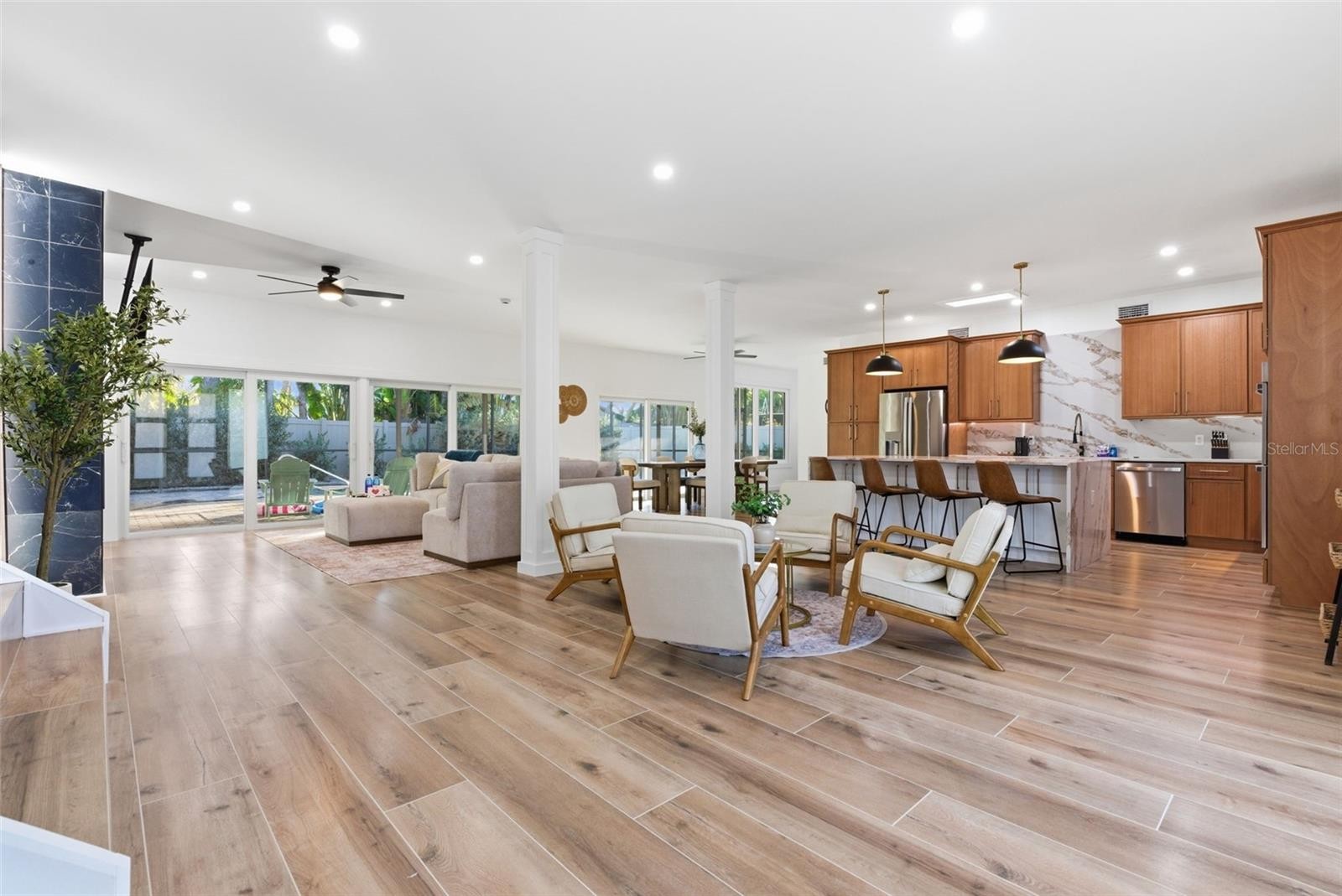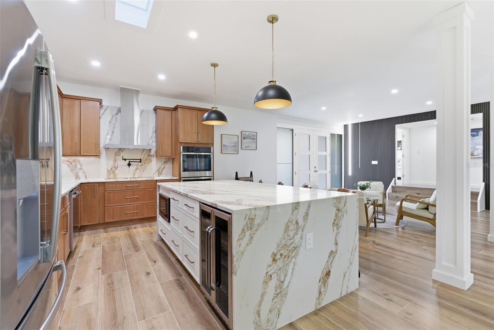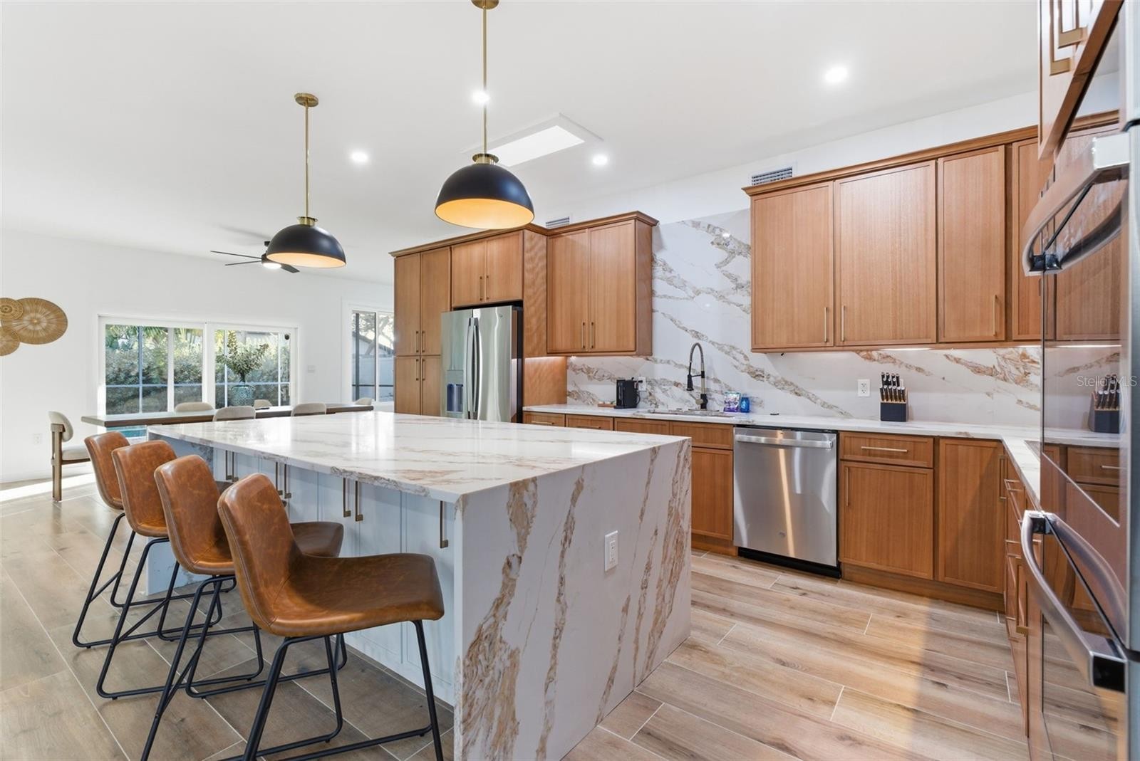 FULLY FURNISHED rental available in Siesta Key, close to the beach and walking distance to Siesta Key Village. Rent a Rare Piece of Sarasota's Architectural History on Siesta Key! Step into timeless design and architectural significance with this rare mid-century modern masterpiece, situated on a private double lot in the heart of Siesta Key. Boasting 2,500 square feet of light-filled living space, this 4-bedroom, 3-bathroom residence has been meticulously renovated while preserving its original architectural integrity. Clean lines, expansive impact windows, and an open floor plan define the home’s iconic style, inviting the outdoors in and creating a sense of calm sophistication throughout. Inside, the split floor plan provides distinct zones for privacy and connection. The primary suite is a sanctuary of its own, complete with private access to the outdoors, a luxurious bath featuring a freestanding soaking tub, and a marble-lined walk-in shower. On the opposite side of the home, three additional guest bedrooms provide comfort and style—including a junior suite with its own private bath, full marble detailing, and oversized picture window with views of the pool and deck area. High-end renovations include: New commercial-grade roof (30-year lifespan); High-impact windows and doors throughout the home; Durable wood-grain tile flooring; Quartz waterfall countertops & custom wood cabinetry in the kitchen; Floor to ceiling marble tile in all bathrooms; All new major appliances including HVAC, pool equipment and water heater; Spray foam insulation throughout the home for an extra layer of protection; and designer finishes and curated lighting throughout. Step outside to your personal paradise: a heated saltwater pool with screened enclosure, surrounded by lush tropical foliage for complete privacy and serenity. The home is ideally located just blocks from Roberts Bay and less than a mile from the award-winning crystal sands of Siesta Key Beach. A true retreat, the lushly landscaped double lot offers unmatched privacy and space—perfect for entertaining or simply relaxing beneath the tropical canopy. Whether you're a collector of architectural homes, a beach lover, or simply someone looking for the rare blend of heritage, location, and luxury, this one-of-a-kind property is your opportunity to own an iconic piece of Sarasota’s rich design legacy.