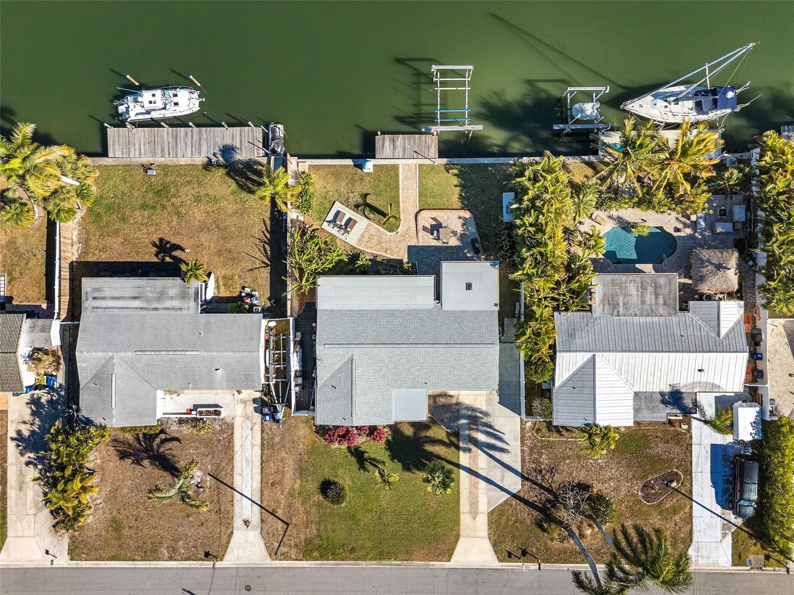 A rare deepwater opportunity in Bay Colony—Manatee County’s best-kept secret for serious boaters. This non-deed restricted waterfront community features the widest and deepest canals in the county, no HOA fees, and direct Gulf access—perfect for those who live life on the water. This fully updated 2-bedroom, 2-bath residence offers 1,519 square feet and sits directly on a deepwater canal, allowing you to keep your boat just steps from your back door. The property includes a 7,500-lb boat lift and a 22-foot dock—a rare setup in this price range. Enjoy tranquil canal views from the expansive backyard paver patio, designed for waterfront entertaining, morning sunrises, and sunset cocktails. A 220-volt outlet is already in place for a hot tub, enhancing the outdoor living experience. Inside, the home has been completely renovated featuring white quartz countertops, custom white cabinetry, and premium stainless-steel appliances. Original terrazzo flooring preserves mid-century character, while updated spa-inspired bathrooms elevate the space. Recent capital improvements within the past year include a new roof, new HVAC system, new water heater, and new irrigation pump. A large canal-view storage room offers flexible use as an office, captain’s room, or gear storage. Hurricane shutters provide added security. Conveniently located near I-275, I-75, US-41, US-301 and the Skyway Bridge, offering quick access to St. Petersburg, Tampa, Sarasota, Bradenton, and open water. Boating season is just around the corner, so hurry and put this one on your list today, before another buyer is enjoying your lifestyle in your house!