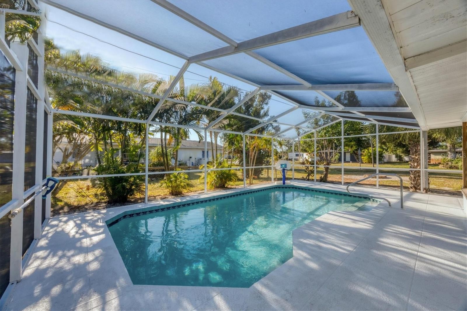 Welcome to this beautifully updated 2-bedroom, 2-bath home with a 1-car garage and private pool, ideally located in Venice, just minutes from downtown shopping, dining, and the stunning shores of Venice Beach and Nokomis Beach. Step inside to find porcelain tile flooring throughout and fresh interior paint that brings a bright, modern feel to every room. The updated kitchen features wood cabinets, granite countertops, stainless steel appliances, and a brand new refrigerator, making it both stylish and functional. The owner’s suite offers a spacious walk in closet and an en suite bathroom complete with updated vanity and a sleek walk-in shower. The guest bedroom and bath provide comfortable accommodations for visitors or family. Enjoy Florida living at its best in the screened in swimming pool and patio area, perfect for relaxing, entertaining, or soaking up the sunshine. Additional updates include a new roof, a tile entryway, and a newer leach field for the septic, giving buyers peace of mind. This move in ready home combines comfort, convenience, and an unbeatable location. A must see!