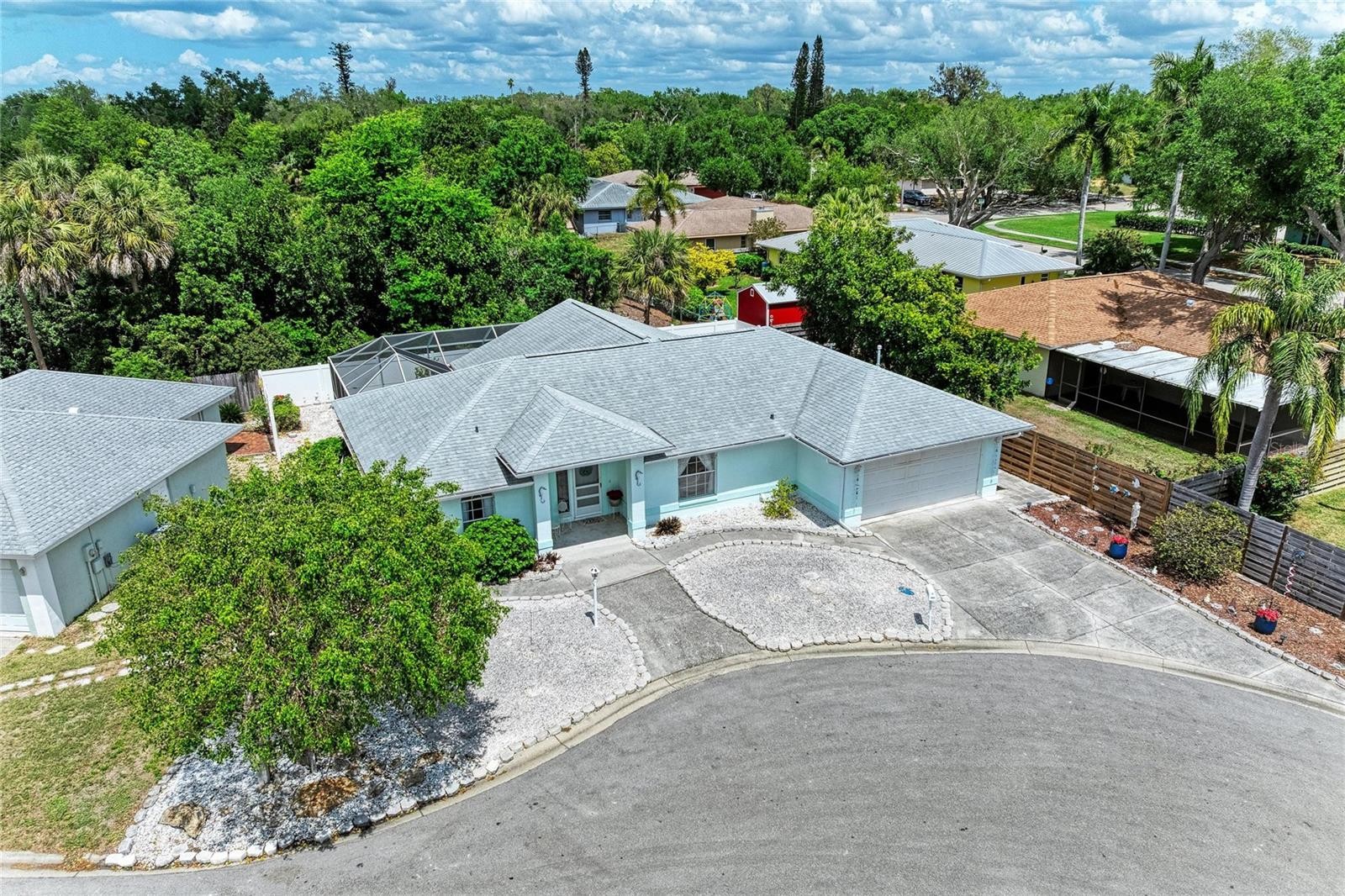 OUTDOOR LIVING GEM IN LAKE ROYALE!!! This delightful single-story home sits on the end of a quiet cul-de-sac in the intimate 20-home community of Lake Royale and delivers everything you want in Florida living — comfortable indoor space PLUS a spectacular SCREENED POOL & LANAI that becomes the true heart of the home! Xeriscaped for low maintenance and environmental friendliness, the property greets you with cheerful coastal colors, a fresh gray shingle roof (2021), and a welcoming arched entry. Step inside to find a practical, light-filled floor plan with soaring cathedral ceilings that flows effortlessly toward the backyard oasis. The generously screened pool enclosure with tiled patio is ready for morning coffee, afternoon swims, or evening gatherings under the stars — perfect for soaking up those warm Gulf Coast breezes. The charming Florida room off the lanai makes an ideal club room, craft space, or garden room. And the gas hook-up on the grill is connected to a large in-ground propane tank that also fuels the gas stove and gas water heater — convenient, cost-effective, and worry-free! The inside is a split bedroom design with an open center with access to the lanai from the primary bedroom, living room and kitchen. Mature palms, lush landscaping, and a fenced backyard give you privacy and plenty of room to play. Located in established Lake Royale, you’re just minutes from GT Bray Park, top-rated schools, shopping, and a short drive to the sugar-sand beaches of Anna Maria Island where spectacular sunsets and gentle waves are waiting. This friendly residential community focuses on what matters most — easy living and great neighbors. Whether you’re a first-time buyer looking for that “just right” family home or ready to embrace the Florida lifestyle without the upkeep, this one truly shines. Call TODAY and come see why this charming pool home is the one you’ve been waiting for. Paradise like this won’t last long!