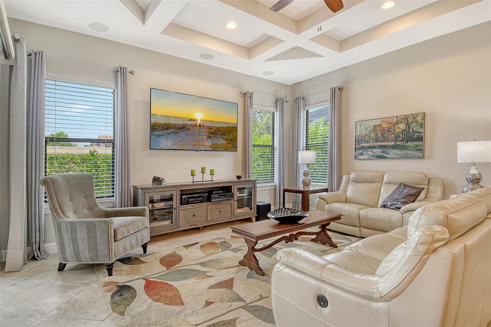 WELCOME HOME to your BELLA CASA VII Floorplan. Very few of this floorplan were built and even fewer become available! Open and airy, this floorplan provides nearly 3000 sq ft of under air living space while delivering the spaciousness desired in a great floorplan with a uniqueness all its own. Offering three bedrooms all on suites with an additional powder room and den! Tray ceiling in the family room brings that special touch to the family room area while keeping the other ceilings in the home transitional in design. The home's neutral color palette makes it a decorator's delight. A large quartz island with pendant lighting along with GE stainless steel appliances including a gas cooktop with built in oven and microwave makes this kitchen highly functional and very attractive. Surround sound throughout. The tandem garage is currently a built-out area which can function in a variety of ways with air condition for a wine room or the current owner would be happy to remove convert it back to open extra garage space. The Full-Home Kohler Generator provides added peace of mind. Home Warranty Included. GOLF MEMBERSHIP IS INCLUDED in the HOA fees. Enjoy playing on your 18-hole championship course as you enjoy all the resort-style amenities provided. Enjoy the onsite world class culinary center. Enjoy all the wonderful dining options for dining out within leaving your private gated community. The Tiki Bar, The Bahama Bar, The Barrel House. Numerous ways to get your steps in -pickle ball courts, tennis, bocce ball then you can cool down on of the two pools and spa. Wellness programs, fitness center with full time activities director on site! Let's not forget the playground and dog park! The home is one block away from all these neighborhood activities. Esplanade Golf and Country Clubs is one of Lakewood Ranch's premier Golf and Country Club Communities and Lakewood Ranch is one of the top ranked Master Planned Community in America! Yes, it is all about the Floorplan and the Location.