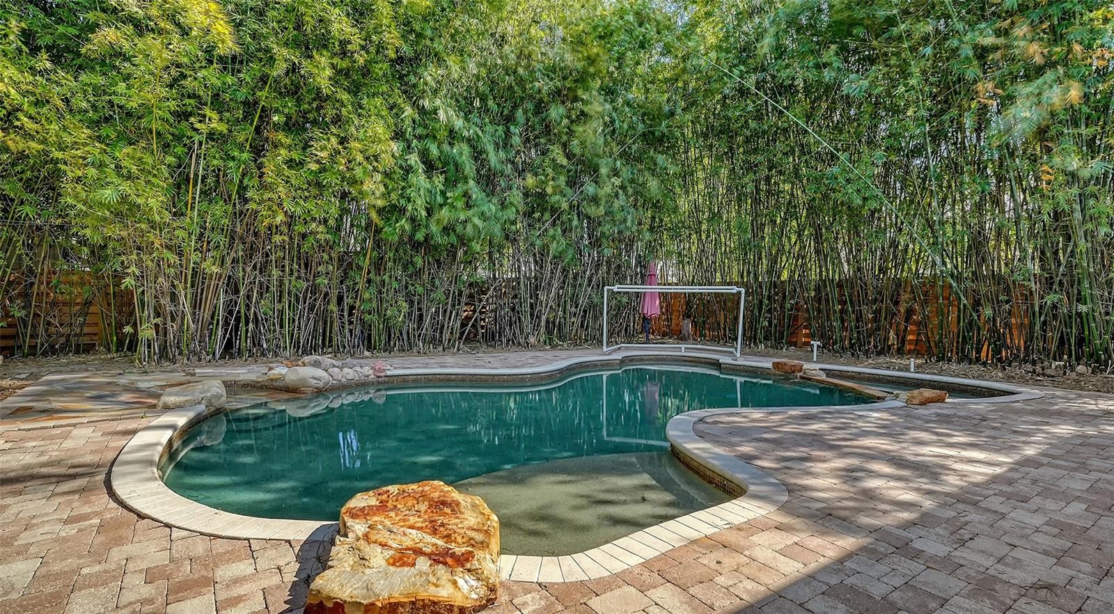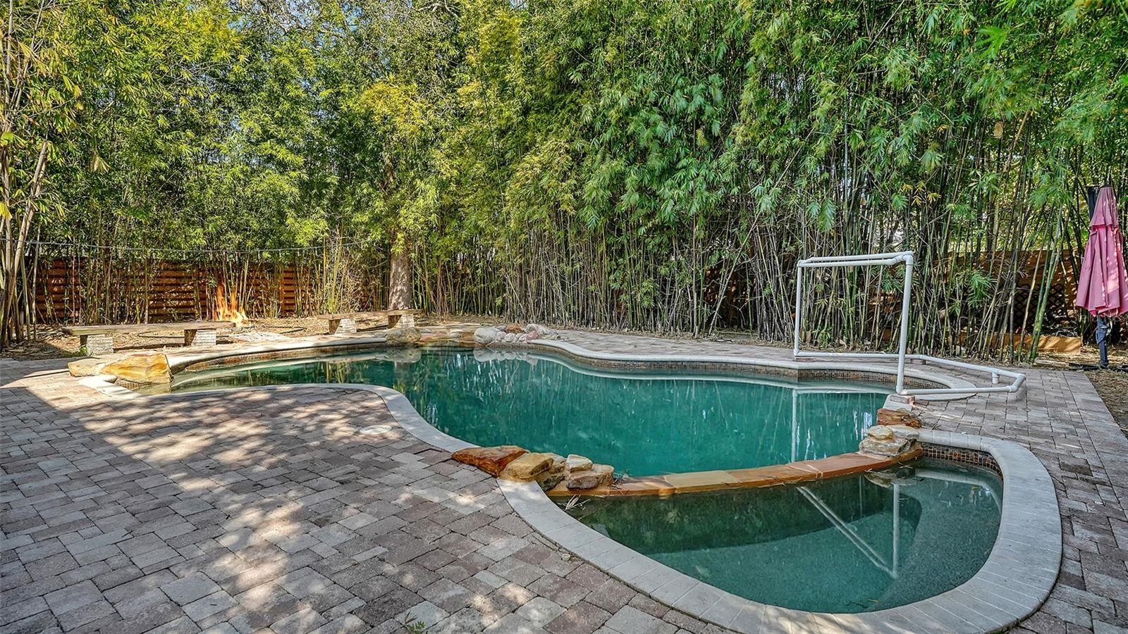 Tucked behind a private wall of mature bamboo, this home offers a true backyard oasis in the heart of Sarasota. The fully fenced yard features a custom PebbleTec pool and spa with sun shelf and the ability to add a grotto waterfall, plus an expansive paver patio and fire pit—perfect for entertaining, relaxing, or enjoying Florida’s indoor-outdoor lifestyle year-round. Inside, the vaulted main living area creates a bright, open feel, seamlessly connecting the upstairs loft with the primary living space below. Recent upgrades include new countertops, pool pump, and HVAC and custom living room millwork (2025), along with a freshly painted exterior, all new carpet, and new flooring in the downstairs bedrooms and hallway completed in January 2026. Additional highlights include an extra-large driveway, ideal for guests, boat, or multi-vehicle households. Located just 5 minutes from UTC and 10–15 minutes from Downtown Sarasota, you’re perfectly positioned for top-tier dining, shopping, and entertainment—while still enjoying exceptional privacy at home.