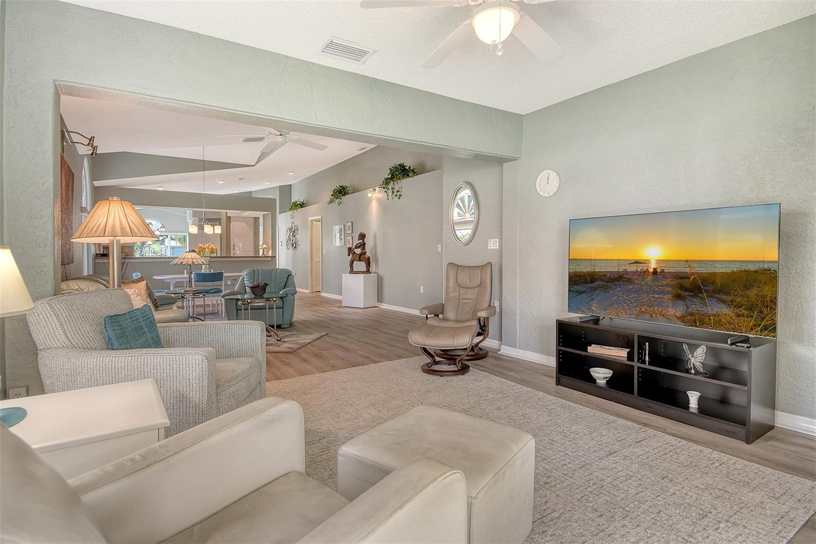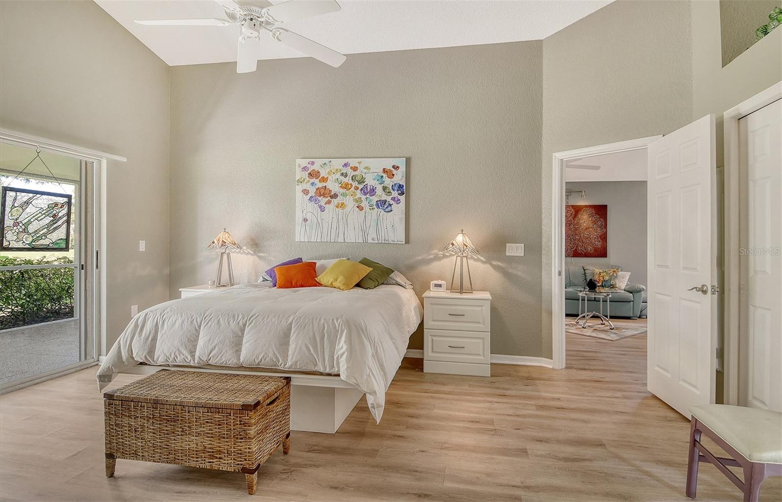 Beautifully Updated 3BR/2BA Home in Pinehurst. Peace of mind comes with recent upgrades: a new roof (July 2025), HVAC (Nov 2023), and impact glass windows for hurricane protection. Auto enthusiasts will love the air-conditioned garage with epoxy flooring, ideal for a workshop, gym, or hobby space. Step inside and discover an open floorplan with vaulted ceilings, and waterproof luxury vinyl flooring, no carpet. The kitchen is a chef’s delight, boasting sleek European cabinetry, granite countertops, quality appliances, and a pantry closet. The primary bedroom includes a huge walk-in closet and a gorgeous ensuite bath. The second bedroom is versatile, with a murphy bed and built-in desk, making it perfect for an office or guest suite, and includes an updated ensuite bath. Relax at your screened and covered lanai, overlooking a serene pond and majestic oak trees, surrounded by lush tropical landscaping. With HOA-maintained lawncare, you can truly enjoy a low-maintenance lifestyle. Furniture is also available under a separate contract for a move-in ready option. Community amenities include a pool and tennis court, adding to the neighborhood’s appeal. The Pinehurst neighborhood boasts a Sarasota address yet located in Manatee County. Perfectly situated minutes from downtown Sarasota, UTC, Lakewood Ranch, Bradenton, the SRQ Airport and the pristine Gulf beaches. This home combines thoughtful updates, comfort, and a prime location—ready for its next owner.