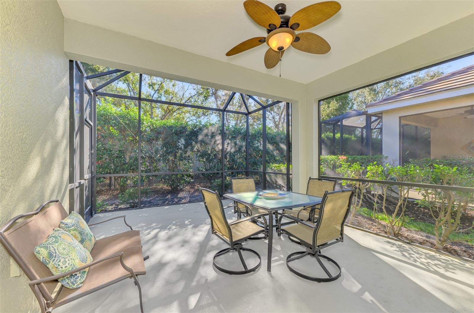 START LIVING YOUR SUNCOAST DREAM TODAY! This beautifully appointed maintenance-free villa is being offered fully turnkey and furnished, for a truly effortless move-in. Three bedrooms and two baths provide a comfortable split layout for privacy, while custom finishes add a polished touch throughout. Blending Coastal style with everyday functionality, this home has been thoughtfully designed with an open floor plan, upgraded kitchen cabinetry, stylish window treatments, crown molding, stone countertops, gas cooking, and a kitchen island. There is no carpeting in the entire home, just beautiful tile and wood flooring. ** Located in the back of the Fairfield neighborhood, you can relax on the extended screened lanai that is plumbed for a gas grill; enjoy the convenience of a true, full two-car garage with epoxy floors and storage; and take comfort in a newer AC system (less than two years old). Fairfield is a gated, maintenance-free community that offers amenities such as a heated spa and pool, fitness room, and gathering room, all in an unbeatable location close to UTC, Lakewood Ranch, downtown Sarasota, SRQ Airport, and the area’s renowned Gulf beaches. Just bring your suitcase—Florida living starts here!