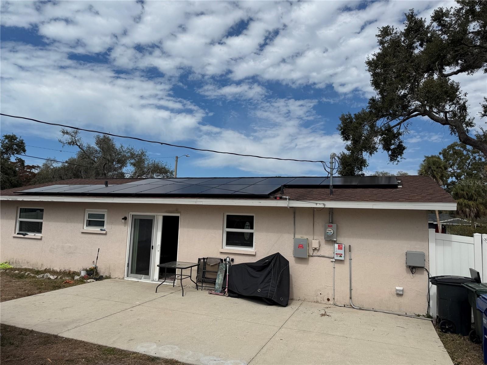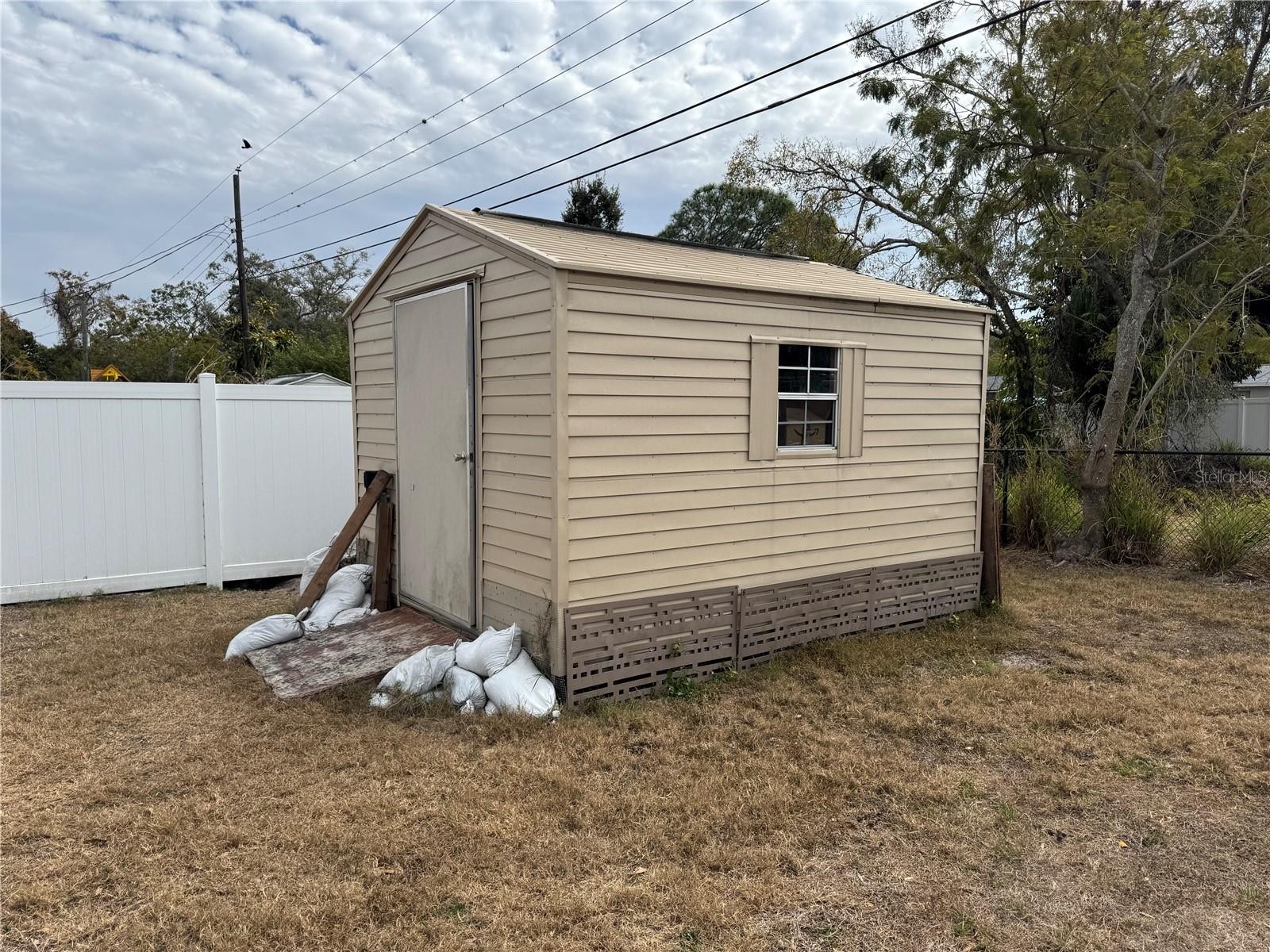 Check Out These Newer big-ticket updates, including a Newer Roof (2020), brand new air conditioner (2025), and hurricane impact windows for added protection and efficiency. A Large Shed (2022) with electric and a window unit A/C offers flexible space for a workshop, hobby area, or storage. This 3-bedroom, 1-bath block home offers 900 square feet of heated living space with ceramic tile flooring throughout for easy care. The kitchen features granite countertops, and a full appliance package including range, refrigerator, microwave, and dishwasher. An inside laundry room adds convenience. Covered parking in the carport, and low electric bills with the owned solar panels. Situated on an approximately 0.18-acre lot, the property includes a large, fenced backyard and a concrete patio for outdoor enjoyment. Ridgewood Estates has no HOA and no deed restrictions, allowing space to park a boat, RV or trailer. Additional features include a carport, driveway parking, public water and sewer, paved streets, and sidewalks, all in a convenient Sarasota location near shopping, dining, and public transit.