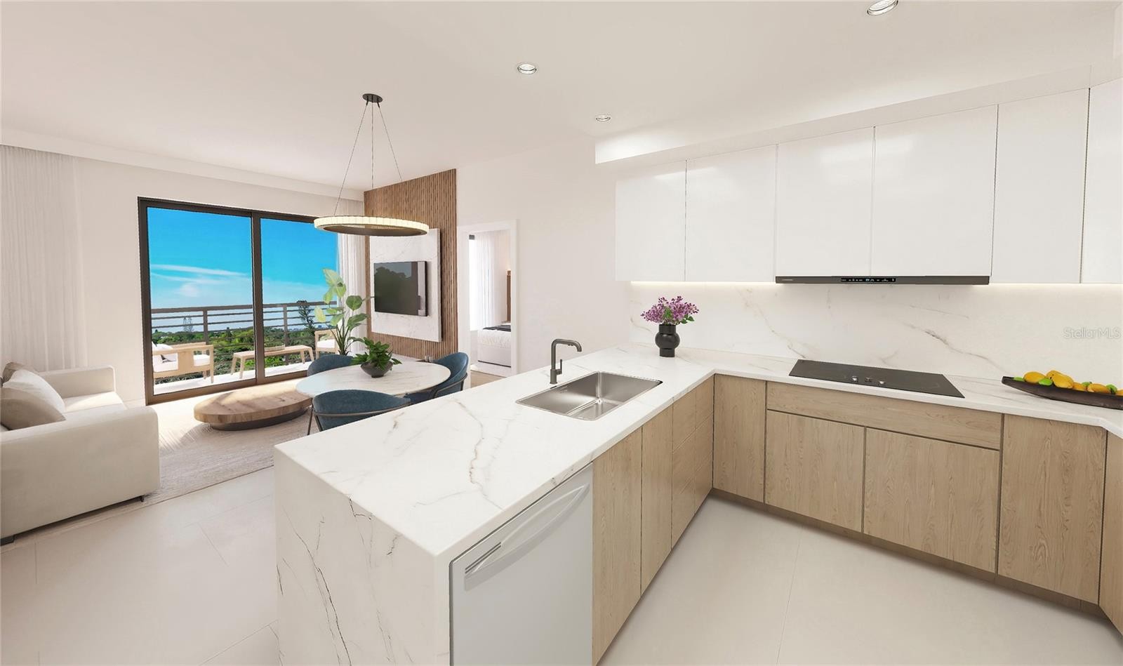 Pre-Construction. To be built. Best New Construction Condo Price Per Square Foot. Introducing the Two-Bedroom Residence at Akoya, West of the Trail in Sarasota’s Museum District. Just a short walk to The Bay, Ringling Museum, and Asolo Theatre, and only 5 minutes to Downtown Sarasota. This spacious two-bedroom two bathroom features an open-concept layout, expansive sunrise terrace, high ceilings, impact-rated sliding glass doors/windows, and a central kitchen with European-style cabinetry, waterfall-edge island, solid stone countertops, and stainless-steel appliances. Both bedrooms offer walk-in closets. Dedicated laundry room included. Akoya residents enjoy luxury amenities: saltwater pool, fitness center, social lounge, outdoor grilling/dining area, and pet-friendly. Enjoy modern design, unbeatable location, and Sarasota’s best value per square foot. Now selling – don’t miss this opportunity!