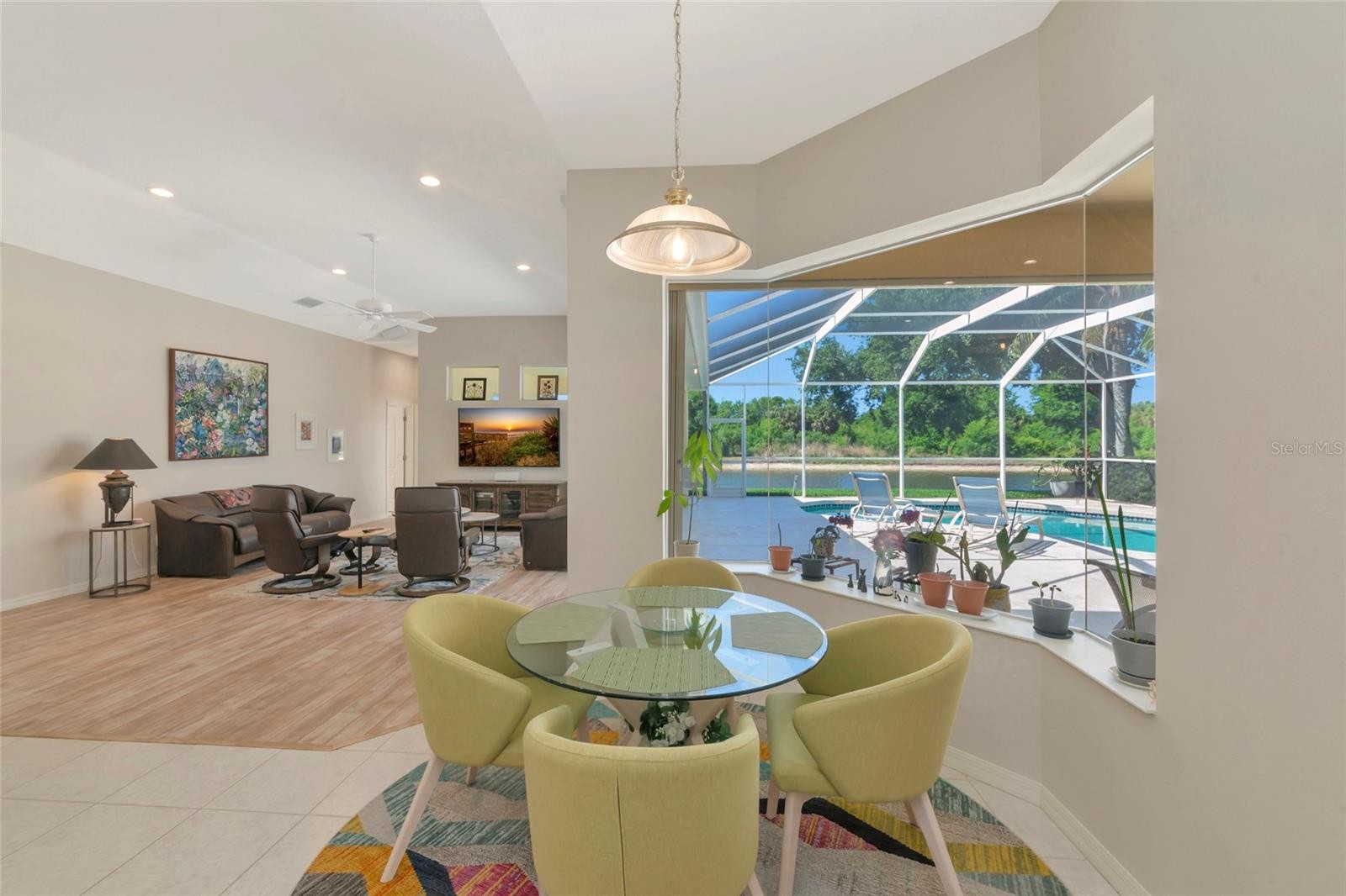 Peaceful panoramic long lake and park views over your blue water pool, come discover gated West Hampton on exclusive Palmer Ranch. Move in ready, new flat tile roof 2025, one owner, meticulously maintained 2960 sqft under air. Double French door entry to combined living and dining room with lanai, pool, lake, and views of the 83-acre Culverhouse Nature Park. Split plan 4-bedroom, large front den, 3-bath, and 2-car garage. The island kitchen offers stainless steel appliances (2024), Corian countertops, and natural gas hook-up. Raised panel 42” cabinets, pull outs, and closet kitchen pantry. Your kitchen café has a captivating aquarium glass window view of the lanai, pool, lake, and park. Large kitchen correspondence desk. Enjoy a south-facing, natural gas-heated pool with private sunbathing on a new cool deck surface (2025) and two spacious covered lanais. Crown molding in foyer, dining, and living room. Spacious primary suite with double entry doors, large walk-in closet and hanging closet. Primary bath with frameless glass walk-in shower, separate tub, and twin vanities. Tile and laminate flooring throughout, no carpeting. Palmer Ranch is an expertly engineered 10,000 acre planned unit development, minutes to Siesta Key beach, unhurried parkways, excellent schools, new public library, shopping, restaurants, state of the art fitness centers, parks, and quick access to the Legacy bike trail. 2- Carrier a/c 2019 & 2022, re-plumbed home 10/2015, & natural gas pool heater 4/2020. Furniture package available.