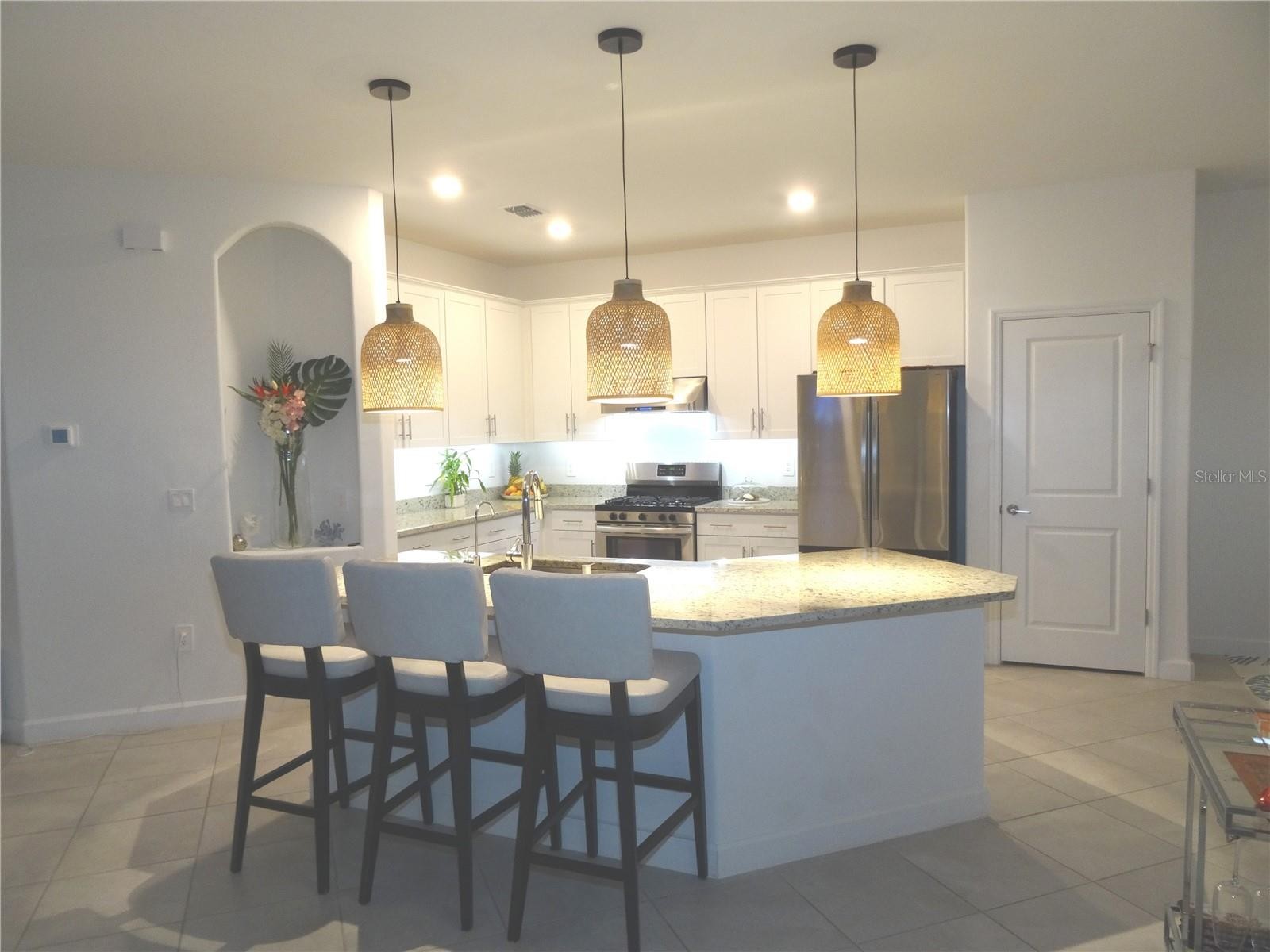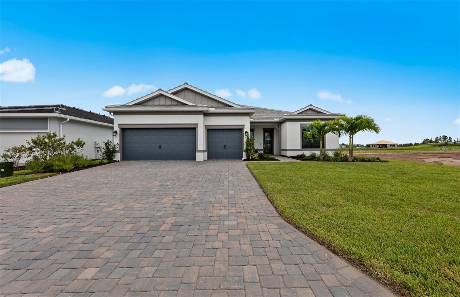 A PEACEFUL RETREAT in the heart of Lakewood Ranch, nestled in a QUIET GATED COMMUNITY within Lorraine Lakes! This 2023-BUILT 2,239-SQUARE-FOOT POOL HOME offers modern style and lasting comfort with a spacious 4-BEDROOM, 2-BATHROOM layout, SOARING 9.5' CEILINGS throughout and 10.5' IN THE MAIN LIVING AREA for a bright open space, plus a VERSATILE FLEX ROOM that easily becomes a dining space, home office or creative studio, all complemented by abundant closets and a ROOMY 3-CAR GARAGE. Enjoy pure water everywhere thanks to the WHOLE-HOUSE PURIFICATION SYSTEM with WATER SOFTENER and REVERSE OSMOSIS in the kitchen. Wake up to SERENE LAKE VIEWS and birdsong, then step into your PRIVATE TROPICAL OASIS featuring a CUSTOM-DESIGNED SALTWATER POOL on a PREMIUM 70-FOOT WATERFRONT LOT with stunning sunrise and sunset vistas, lush landscaping of swaying COCONUT, FOXTAIL AND ADONIDIA PALMS, and LAWN MAINTENANCE INCLUDED in the HOA. Savor al fresco cooking with the OUTDOOR KITCHEN’S PROPANE GAS STOVE for unforgettable BBQs, while the INDOOR KITCHEN delights with a NATURAL GAS STOVE, PROFESSIONAL EXHAUST FAN and ON-DEMAND NATURAL GAS HOT WATER. Built for durability with CONCRETE BLOCK CONSTRUCTION and a TILE ROOF, this home delivers a WHISPER-QUIET INTERIOR excellent for restful nights. The Lorraine Lakes HOA brings RESORT-STYLE LIVING with massive COMMUNITY POOLS, TENNIS, BASKETBALL AND PICKLEBALL COURTS, a PROFESSIONAL FITNESS CENTER and a FULL-SERVICE ON-SITE RESTAURANT AND BAR. All this tranquility sits minutes from diverse dining, premier shopping and top entertainment, with a short drive via the new 44th Avenue extension to the pristine beaches of Longboat, Lido, Siesta and Anna Maria Island. See for yourself why this PRIME WATERFRONT GEM represents incredible value—once you look around, you’ll completely understand.