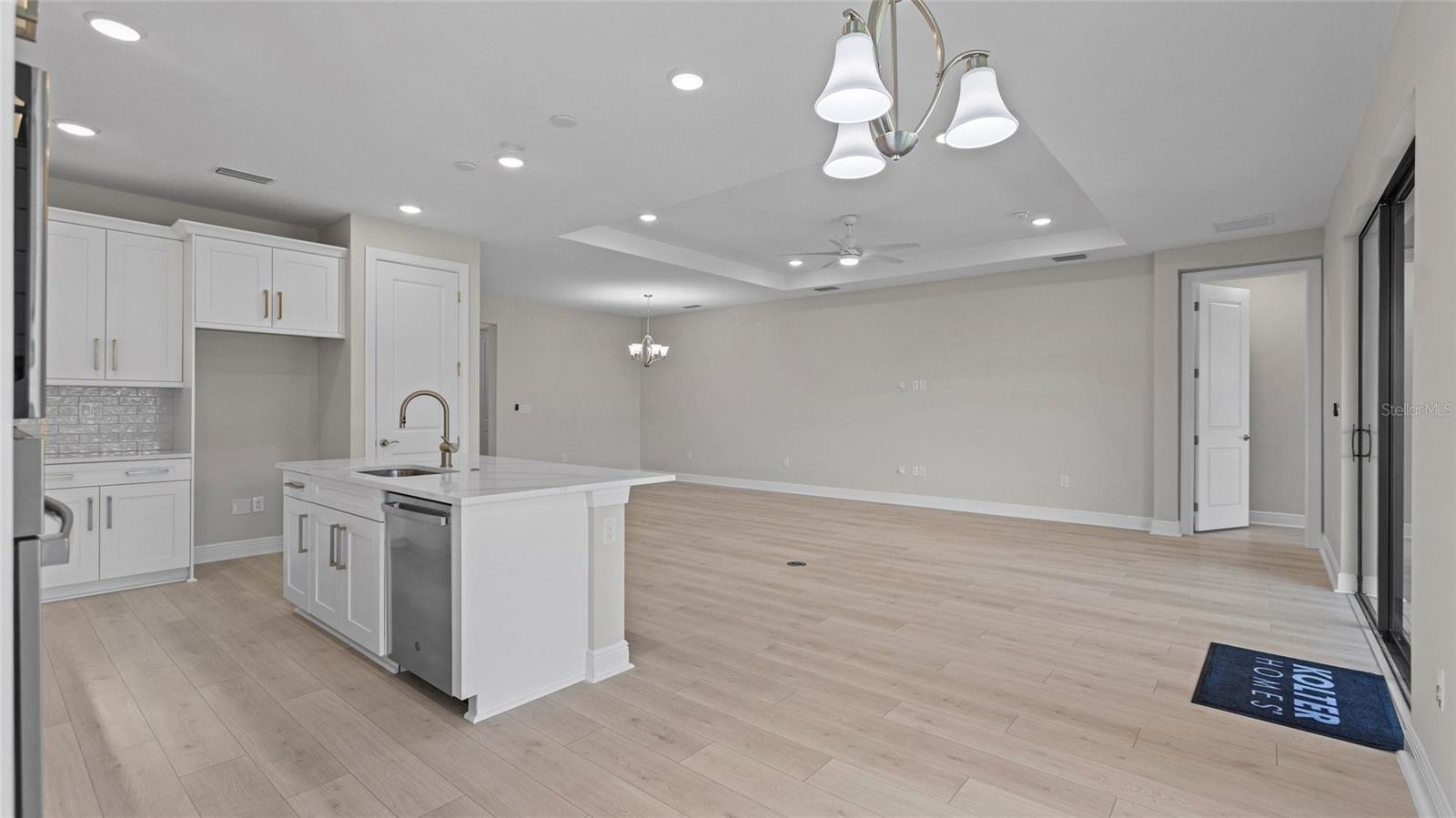 Cresswind Lakewood Ranch by Kolter Homes is an exclusive gated community in Lakewood Ranch, Florida, designed for active adults seeking new energy-efficient homes and low-maintenance living. Residents enjoy a pet-friendly environment, scenic walkways, and access to a private lakeside clubhouse with organized activities, flexible event spaces, fitness and yoga studios, and creative art facilities. Outdoor amenities include pickleball, tennis, bocce, resort-style pools, a dog park, food truck court, and social areas. Located in Sarasota/Bradenton, the community offers proximity to beaches, shopping, dining, and cultural attractions, making it an ideal choice for those searching for vibrant, resort-style living on Florida’s Cultural Coast. Step into the Santa Rosa, a spacious single-story floor plan offering 3 bedrooms, 3 bathrooms, a private den, and a 3-car garage. Through its double-door front entry, the home opens to an expansive gathering space filled with natural light from two large sliding glass doors. The rear kitchen layout is ideal for entertaining, featuring GE stainless steel appliances, quartz countertops, ample cabinetry, and a large island with seating for four. Luxury tile flooring extends through the main living areas, den, and primary suite.The owner’s suite is privately located at the rear of the home and features a coffered ceiling, oversized walk-in shower, dual vanities with quartz countertops, and a large walk-in closet. Two secondary bedrooms are positioned at the front of the home for added privacy. Additional upgrades include impact glass throughout, a drop zone, floor outlet, and pre-plumbing for a future pool and summer kitchen. A privacy wall enhances the covered lanai, which overlooks tranquil pond and preserve views, perfect for relaxing or entertaining.