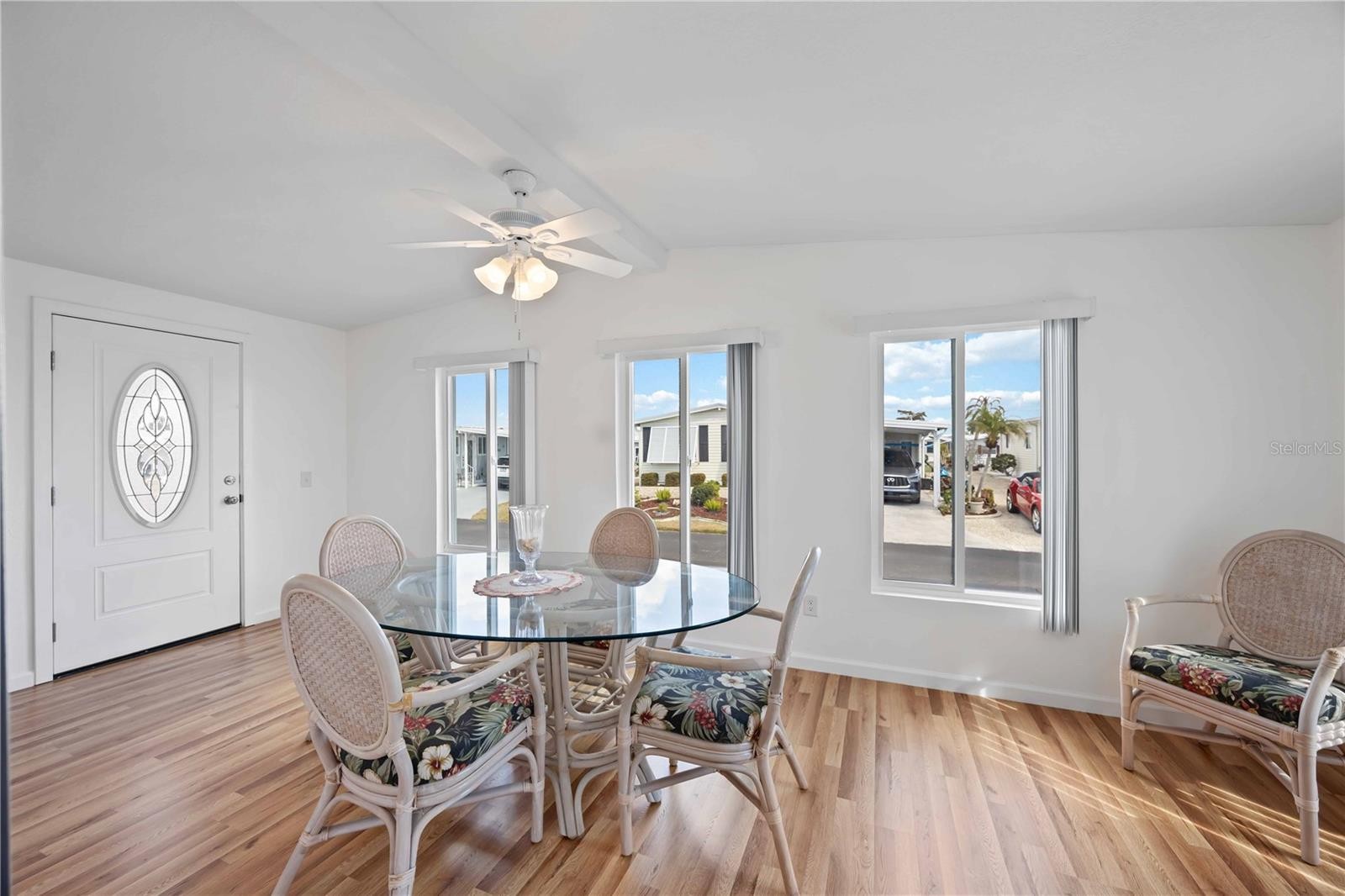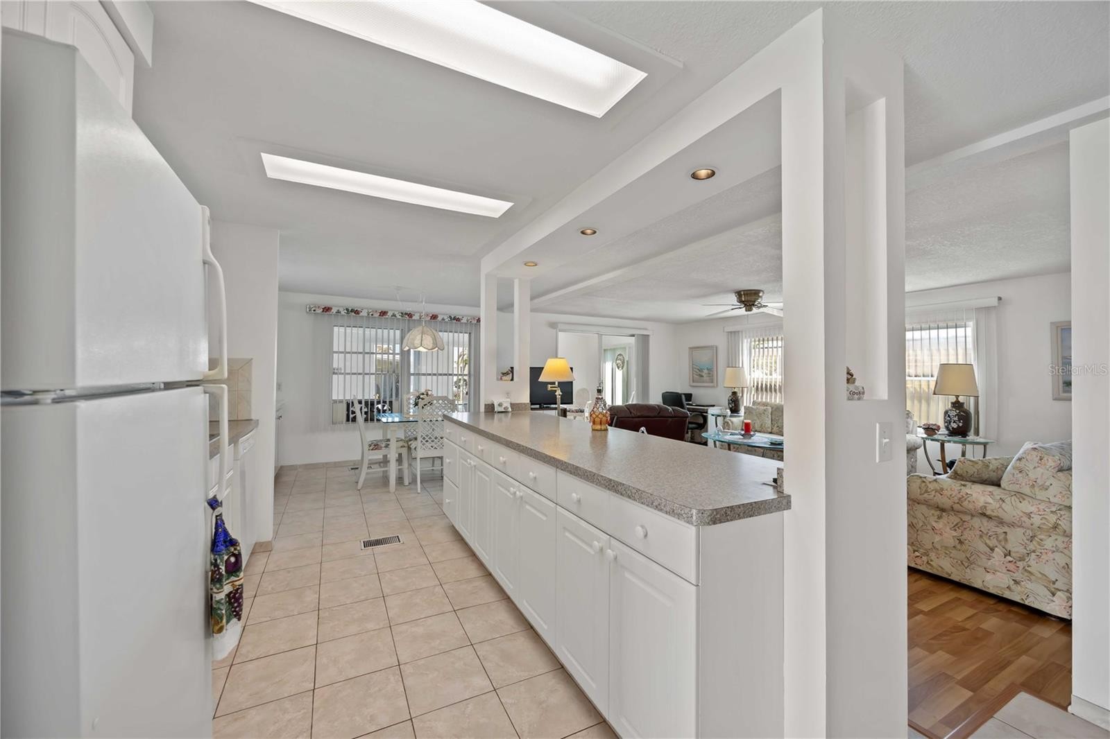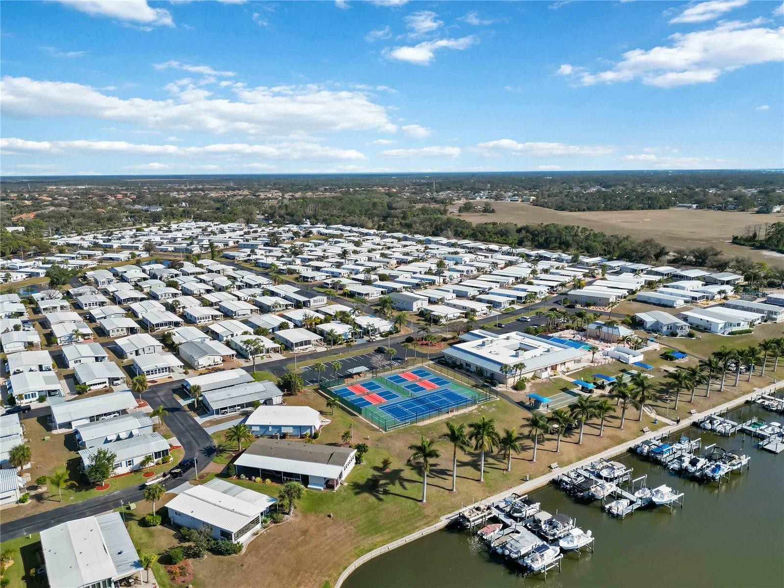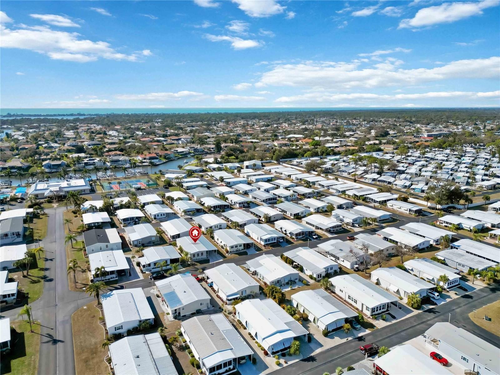 TURNKEY FURNISHED home featuring TWO PRIMARY SUITES located in the desirable waterfront (with INTRACOASTAL ACCESS) community of Alameda Isles, a 55+ community of manufactured homes that offers social activities, pickleball clubhouse, pool, hot tub, sauna, fitness center, library, card room and more! This beautiful home has all the recent upgrades including a new roof, carport, a fully remodeled Florida room with new windows, sheet rock, flooring & paint. As you enter the home, the "Florida room" has laminate flooring and serves as great additional living space for an office, hobby room or additional sitting area with ample natural lighting and sliding doors that lead into the living room. The recently painted interior and spacious open floor plan welcome you in. The main living areas feature easy to maintain laminate flooring & tile, and room for everyone inside with a large living room and formal dining area... all open to the kitchen offering an ideal layout for entertaining. The stunning kitchen features easy to maintain tile flooring, an abundance of white cabinets including storage space in island--and ample counter space, a chef's dream. Enjoy the luxury of both bedrooms having ensuite baths--one bedroom features a roomy walk-in closet, the same laminate flooring and the bathroom has a tub/shower combo. The second suite has laminate flooring, a large closet and ensuite with a double door shower and sizable vanity. Relax out back in the screened (20' x 11') lanai the covered lanai with your morning coffee or favorite book. Alameda Isles offers boat slips and storage for additional fees along with a plethora of amenities. Don't miss your opportunity to call this amazing home and one-of-a-kind community yours.