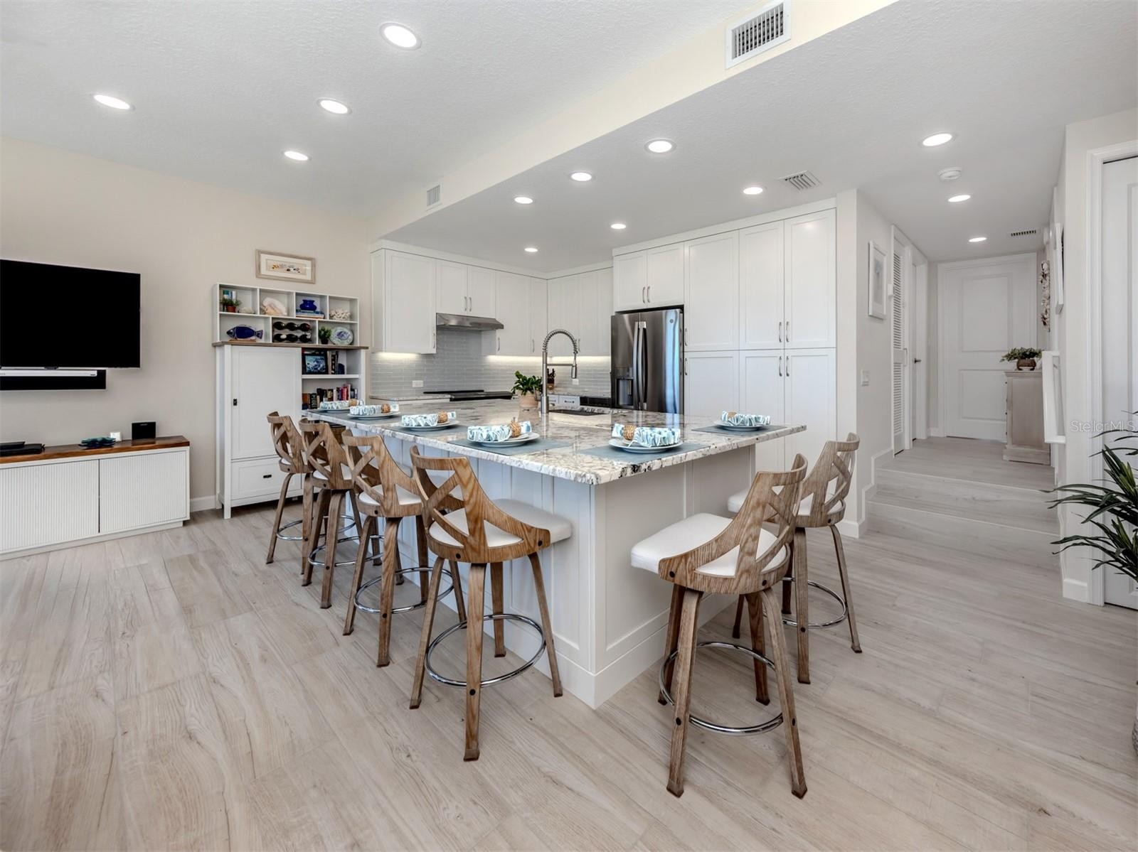 Where the Emerald Coast Meets the Gulf: Welcome to Aldea Mar “Village by the Sea”, an 11-acre private beach front green space with 128 villas and condos. In the world of beachfront real estate, the most coveted luxury is often the one that cannot be built: The View. This meticulously maintained nearly 1100 sq. ft. ground floor condo offers a perspective rarely found on the Gulf. Through an expansive wall of impact rated glass, your private living space extends across a protected emerald greenspace, terminating only where the turquoise waters of the Gulf meet the horizon. Ownership here means a lifestyle without friction. With direct beach access just steps from your door, the Gulf is your daily backdrop. Whether you are looking for a stylish primary residence or a high-value secondary retreat, this 2 bedroom, & 2 bath condominium represents a rare opportunity to own a piece of the shoreline where the natural landscape is as much a part of the home as the interior itself offering a seamless blend of indoor-outdoor living Property Highlights • Total Square Footage: Almost 1100 Sq. Ft. of high-efficiency living space • Primary View: Unobstructed West/Southwest exposure (ideal for sunset views) overlooking protected greenspace and the Gulf • Windows/Glazing: Impact-rated windows & doors providing maximum storm protection and sound insulation. • Climate Control: Newer AC system installed in 2020 with programmable smart thermostat. • Flooring: Seamless porcelain plank tile throughout for beach-ready durability. • New stacked full-size washer and dryer • Designer Kitchen: Features all new custom cabinetry in the kitchen and baths and designer finishes, premium stone countertops, and new stainless-steel appliances. • Beautiful Custom Made: main bedroom closet and custom-made queen-size murphy bed in second bedroom • All New window Treatments: blackout energy efficient blinds/shades for all windows and sliders • THE RENOVATION: No detail was spared in this complete 2025/2026 top-to-bottom renovation. • THE LOCATION: Step out your door and follow the dedicated paver path directly to the beach through the iconic community gazebo. Located on the quieter "Island" side of Venice, you are mere steps from the Gulf of Mexico and a very short distance to the historic downtown Venice shops, restaurants, galleries and theatre. • Parking: One assigned covered space plus guest park parking. • Storage: Separate storage unit for beach gear or bike. • • THE FINANCIAL ADVANTAGE: • In today's Florida market, Aldea Mar stands out. As a low-density, condo, town home & two-story community, this property is exempt from the costly State-Mandated Structural Integrity Reserve Studies (SIRS) and Milestone Inspections that are currently impacting high-rise owners. Enjoy more predictable HOA fees and the peace of mind that comes with a well-maintained, ground-level condo. THE CONO ASSOCIATION AND AMENITIESS • Monthly Dues: Includes Water, Sewer, Cable, Trash, Exterior and Roof Maintenance • On-Site Facilities: Heated Gulf-side pool, clubhouse, putting green, and shuffleboard • Pet Policy: Pet-friendly for owners up to 30 lbs. • Monthly Rentals allowed Rarely does an opportunity arise to own a "like-new" residence in the historic and beloved Aldea Mar community. Following the 2024 storm season, this condo underwent a total, permit-backed reconstruction (2025/2026), transforming it into one of the most resilient and modern units on Venice Island.