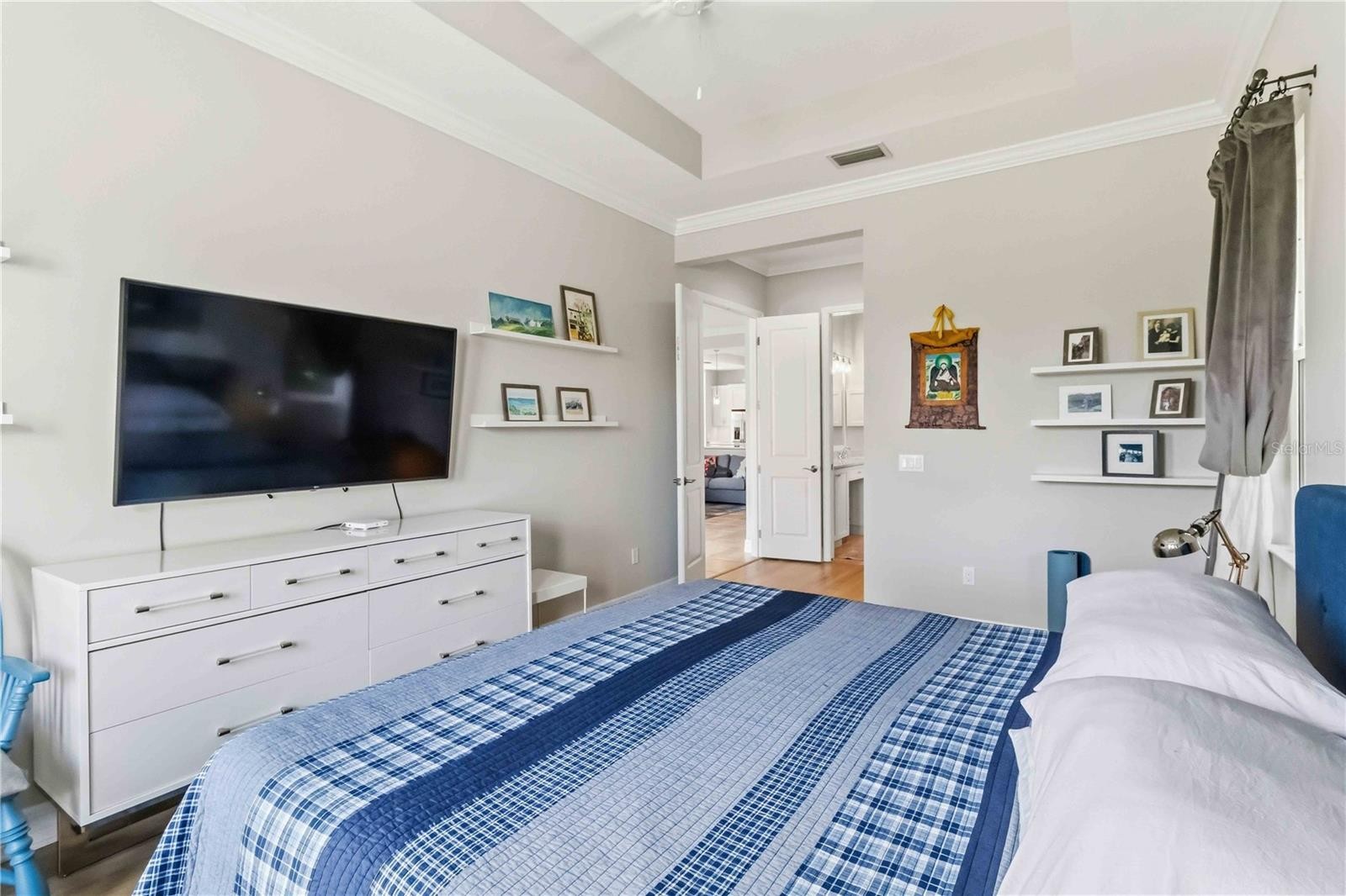 This beautifully enhanced WATER VIEW Augusta model set within the prestigious 24-hour guard-gated community of Rosedale Golf & Country Club—is where there are NO CDD fees and the lifestyle is elevated to an art form! This refined residence showcases soaring 12 FOOT CEILINGS, elegant 8-FOOT INTERIOR DOORS, DESIGNER TILE flooring, and a light-filled OPEN GREAT-ROOM layout designed for both sophisticated entertaining and comfortable everyday living. AND, EXTRA GARAGE STORAGE which can be used for your GOLF CART or storage! The CHEF-inspired kitchen with stainless steel appliances seamlessly connects to a custom fireplace and TV feature wall, while thoughtful UPGRADES—including luxury vinyl plank flooring, a professionally designed primary closet, built-in bookcase and curated shelving, designer window treatments, upgraded fixtures, and a premium HVAC UV light system—reflect meticulous attention to detail. Outside, enjoy a paver brick driveway and walkway, impact-resistant windows and doors, durable tile roof, retractable indoor lanai screen, gas hook up for a grill or outdor kitchen... lush professional landscaping, and full gutter system for long-term efficiency. The flexible floor plan offers 3 spacious bedrooms, a private den ideal for a home office or media retreat, 3 full designer baths, and a 2-car garage. Residents of Rosedale enjoy an active, resort-inspired lifestyle with GOLF, TENNIS, FITNESS CENTER, CLUBHOUSE DINING, heated Junior Olympic pool, bocce ball, vibrant social clubs, and year-round events, while the HOA provides exceptional value including manned gates, security, cable, high-speed internet, lawn care, community management, and common area maintenance. Perfectly positioned just beyond the gates are A-rated schools and quick access to Lakewood Ranch, UTC’s premier shopping and dining, medical facilities, gyms, I-75, Sarasota-Bradenton International Airport, downtown Sarasota, and some of the nation’s top-rated beaches including Siesta Key, Lido Beach, Anna Maria Island and more!—Experience luxury country club living at its finest.
