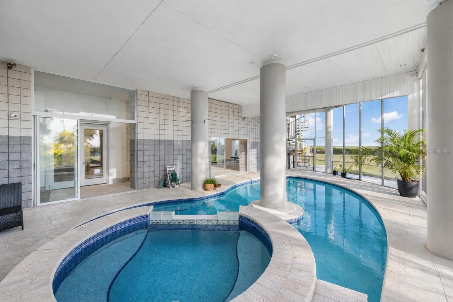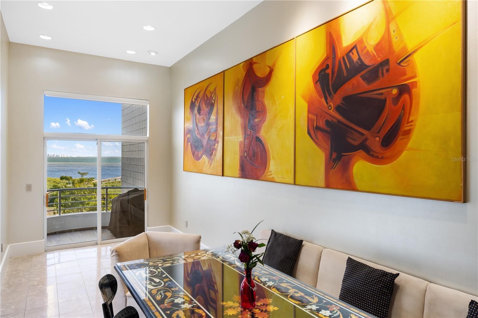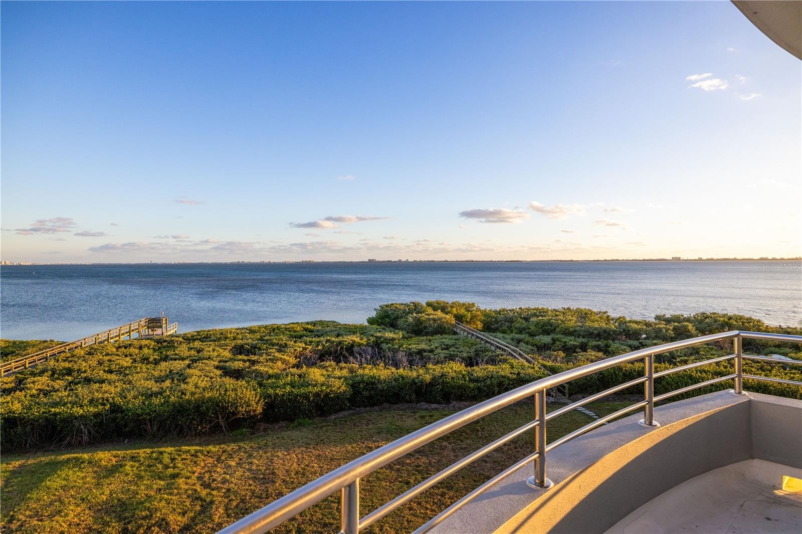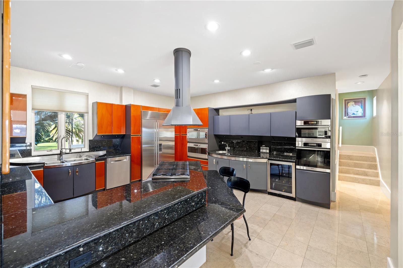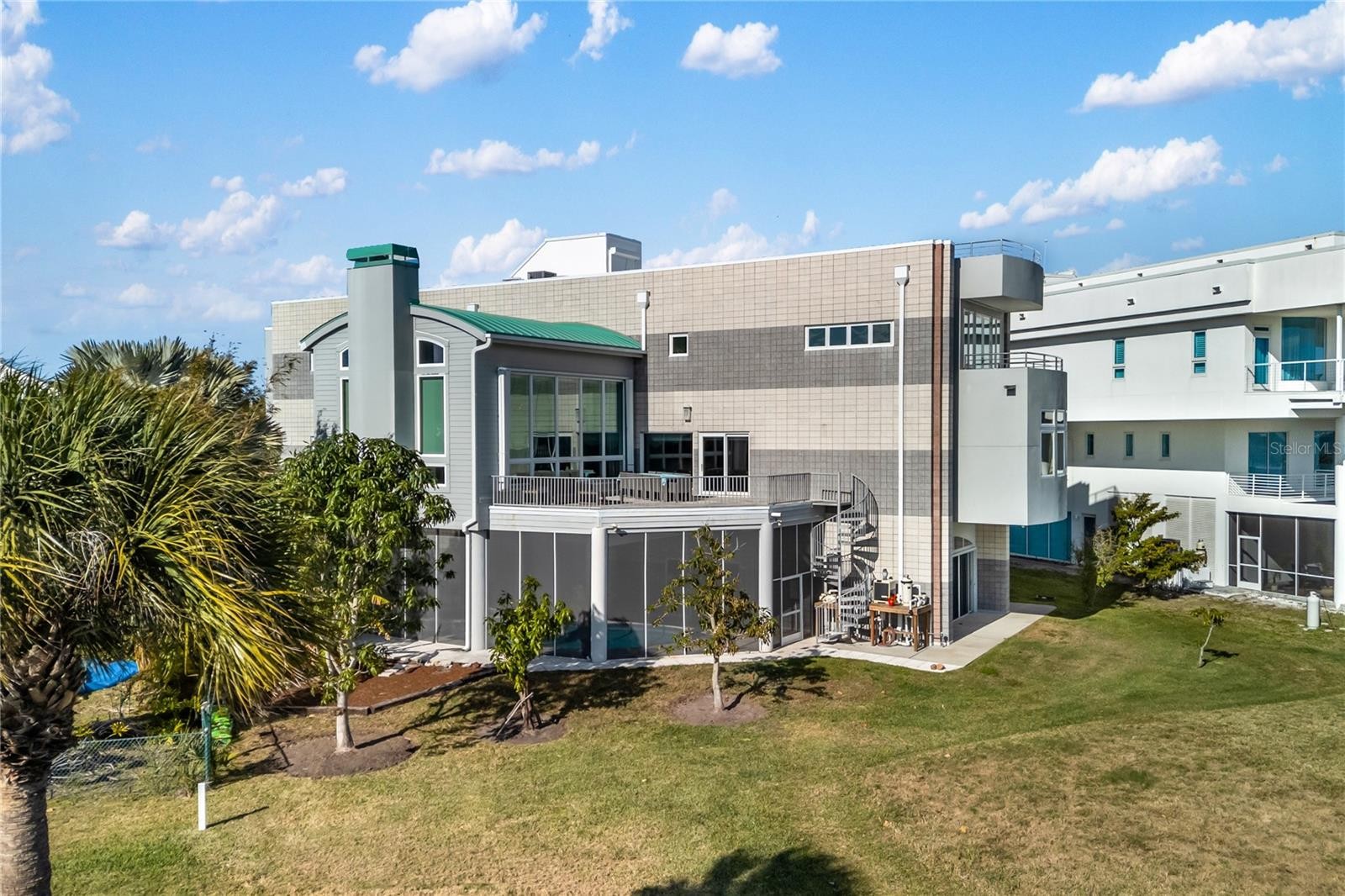 One or more photo(s) has been virtually staged. A truly one-of-a-kind Sarasota Bay waterfront estate set within the private gated enclave of Esplanade on the Bay, offering rare scale, architectural distinction, and 100 feet of direct Sarasota Bay frontage. Encompassing 7,862 square feet under air and 12,088 total square feet, the residence showcases a striking architectural presence shaped by its waterfront setting. Originally featured in a regional architectural publication for its innovative “Tri-Plexity” concept—uniting three distinct architectural ideas into one cohesive waterfront composition—the home reflects a forward-thinking approach to form, vertical volume, and the intentional framing of Sarasota Bay from nearly every room. Upon entering the main living level, sweeping views of Sarasota Bay unfold through expansive walls of glass as the living room rises to 18-foot ceilings and features a fireplace, while floor-to-ceiling windows frame the water and fill the interior with natural light, creating a dramatic yet welcoming atmosphere. From the living room, the home unfolds into surrounding living spaces with the gourmet kitchen positioned at the center of the layout. It features a large center island, professional gas cooktop, premium appliances, and extensive cabinetry arranged to connect seamlessly with the surrounding areas while maintaining views toward Sarasota Bay. Adjacent to the kitchen, a light-filled casual dining space overlooks the bay and opens to a private balcony, creating a beautiful setting for morning coffee or relaxed meals. Beyond the kitchen, a formal dining room provides an elegant setting for gatherings and special occasions and opens to a spacious balcony overlooking Sarasota Bay, complete with a spiral staircase leading to the ground level. Just past the dining room, a seating area with views of Sarasota Bay offers a relaxed place to enjoy the waterfront setting while remaining connected to the surrounding living spaces. This level also includes a private study, a full bathroom, and an additional bedroom. A guest bedroom is positioned in its own wing near the laundry and features a private full bathroom, sitting area, and a separate exterior entrance, creating a private and welcoming guest suite for visitors. The upper level features the expansive primary suite with fireplace and private balcony overlooking Sarasota Bay, ideal for enjoying tranquil water views and spectacular sunsets. Also located on this level are two additional bedrooms, each with its own en-suite bathroom, along with a spacious media room with its own bathroom. A private elevator connects the ground, main living, and primary suite levels. The ground level includes a large fitness area, lounge space, and bathroom, along with two attached garages accommodating up to seven vehicles. Outdoor living features a heated saltwater pool and spa within a screened terrace, designed for relaxation and entertaining, with space for outdoor dining and the potential for an outdoor kitchen. A private dock extends from the property’s Sarasota Bay frontage, providing convenient access to the water for kayaking, paddleboarding, or simply enjoying the waterfront lifestyle. Located minutes from IMG Academy, Sarasota-Bradenton International Airport, shopping, dining, and the beaches of Anna Maria Island and Longboat Key, this extraordinary residence stands as a distinctive architectural waterfront home along Sarasota Bay.