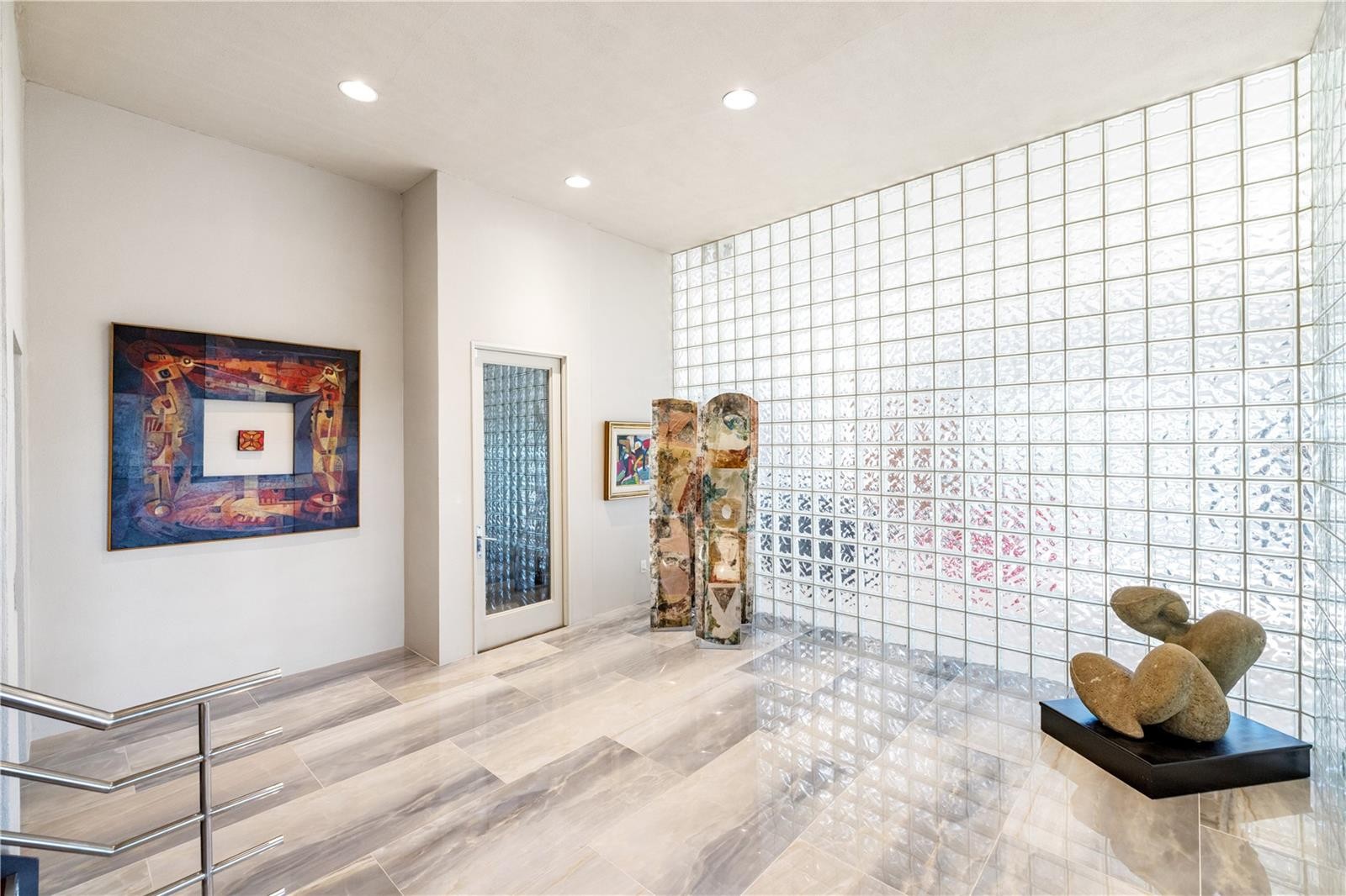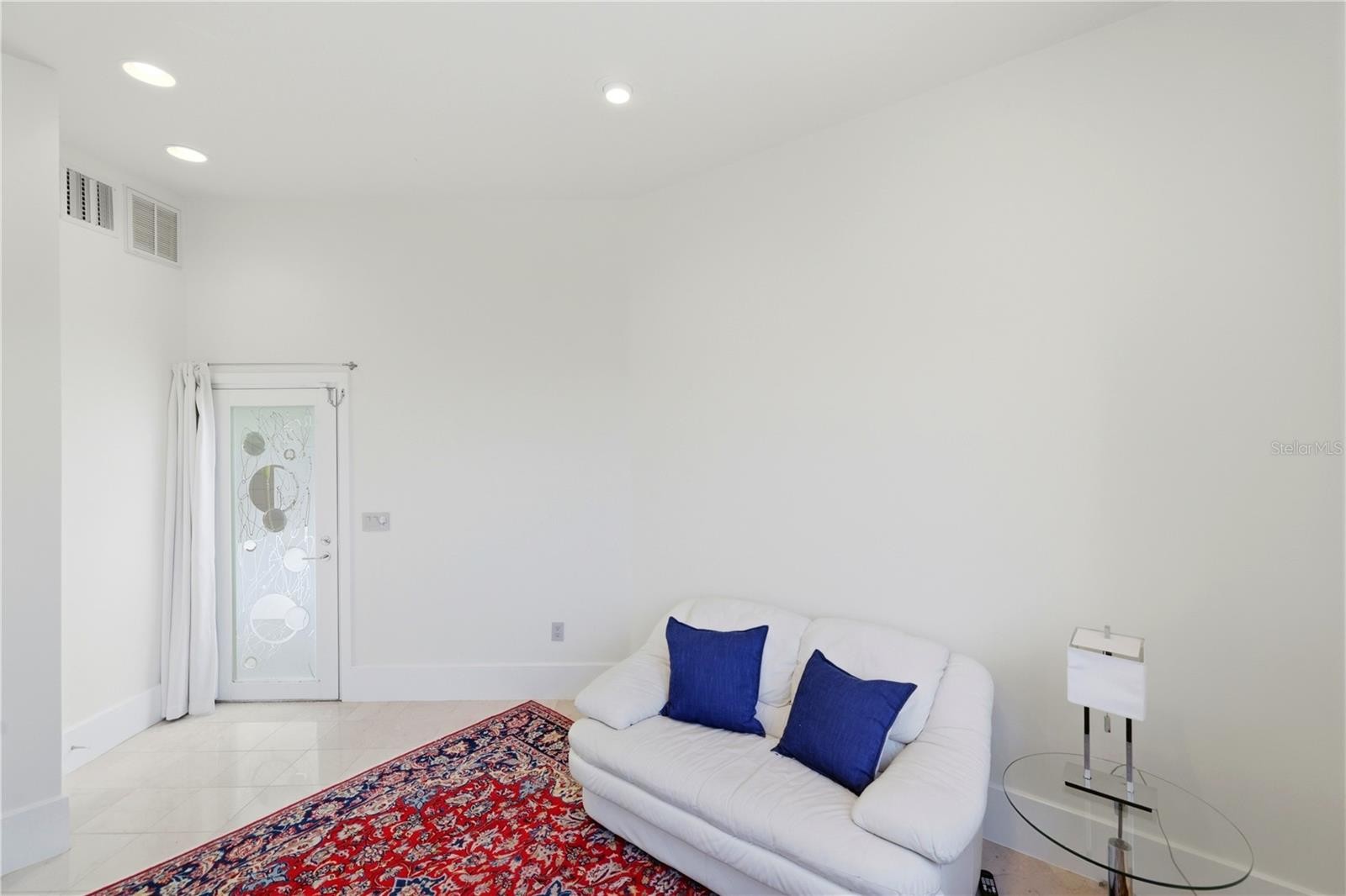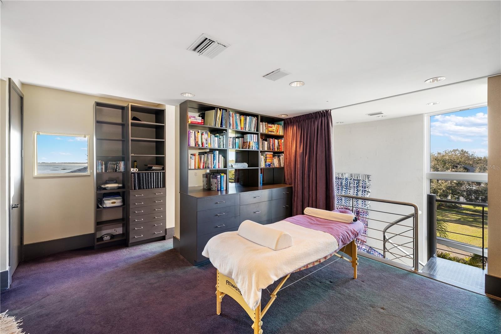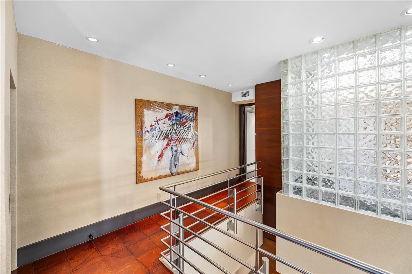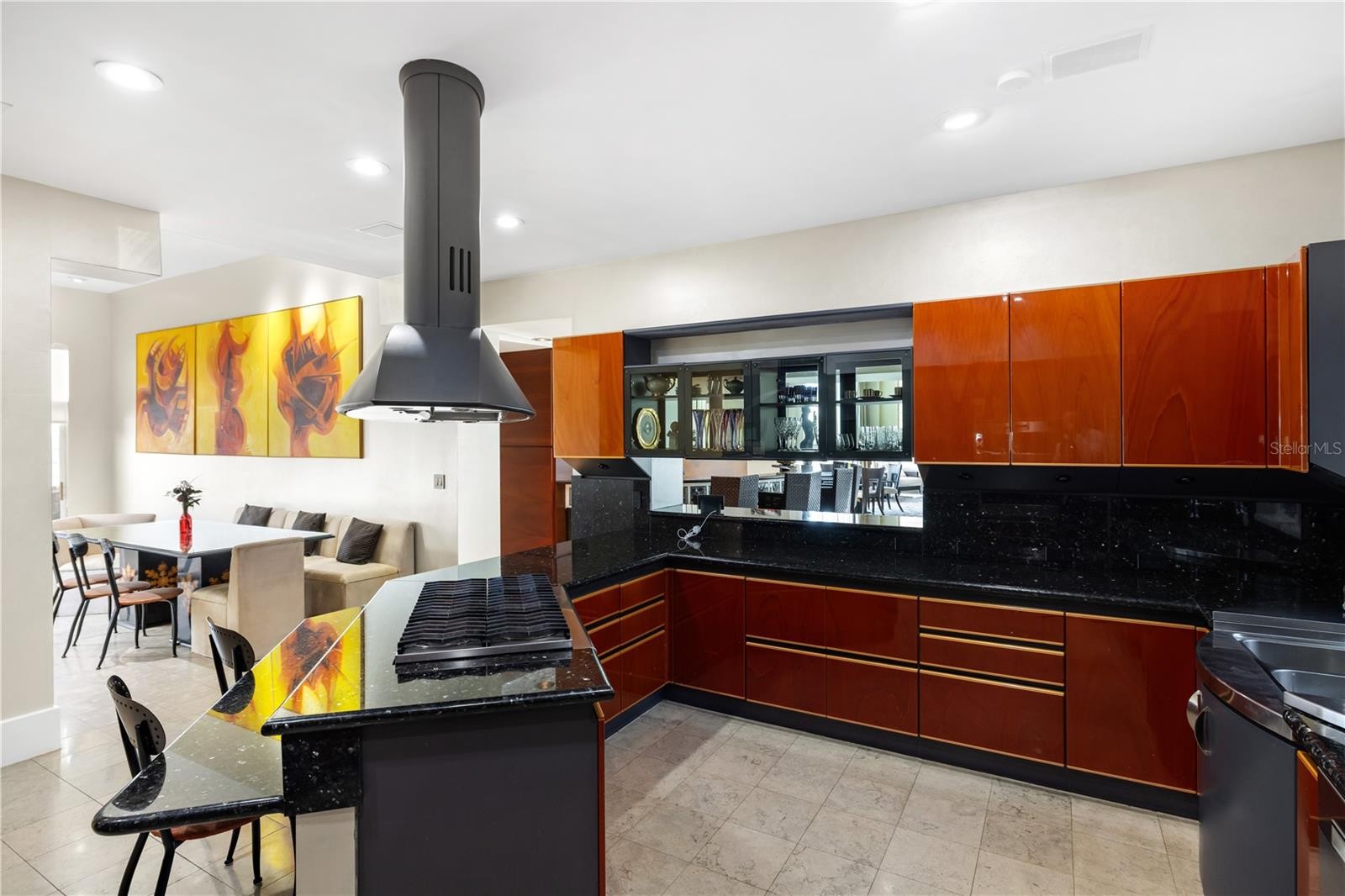 One or more photo(s) has been virtually staged. A truly one-of-a-kind Sarasota Bay waterfront estate set within the private gated enclave of Esplanade on the Bay, offering rare scale, architectural distinction, and 100 feet of direct Sarasota Bay frontage. Encompassing 7,862 square feet under air and 12,088 total square feet, the residence showcases a striking architectural presence shaped by its waterfront setting. Originally featured in a regional architectural publication for its innovative “Tri-Plexity” concept—uniting three distinct architectural ideas into one cohesive waterfront composition—the home reflects a forward-thinking approach to form, vertical volume, and the intentional framing of Sarasota Bay from nearly every room. Upon entering the main living level, sweeping views of Sarasota Bay unfold through expansive walls of glass as the living room rises to 18-foot ceilings and features a fireplace, while floor-to-ceiling windows frame the water and fill the interior with natural light, creating a dramatic yet welcoming atmosphere. From the living room, the home unfolds into surrounding living spaces with the gourmet kitchen positioned at the center of the layout. It features a large center island, professional gas cooktop, premium appliances, and extensive cabinetry arranged to connect seamlessly with the surrounding areas while maintaining views toward Sarasota Bay. Adjacent to the kitchen, a light-filled casual dining space overlooks the bay and opens to a private balcony, creating a beautiful setting for morning coffee or relaxed meals. Beyond the kitchen, a formal dining room provides an elegant setting for gatherings and special occasions and opens to a spacious balcony overlooking Sarasota Bay, complete with a spiral staircase leading to the ground level. Just past the dining room, a seating area with views of Sarasota Bay offers a relaxed place to enjoy the waterfront setting while remaining connected to the surrounding living spaces. This level also includes a private study, a full bathroom, and an additional bedroom. A guest bedroom is positioned in its own wing near the laundry and features a private full bathroom, sitting area, and a separate exterior entrance, creating a private and welcoming guest suite for visitors. The upper level features the expansive primary suite with fireplace and private balcony overlooking Sarasota Bay, ideal for enjoying tranquil water views and spectacular sunsets. Also located on this level are two additional bedrooms, each with its own en-suite bathroom, along with a spacious media room with its own bathroom. A private elevator connects the ground, main living, and primary suite levels. The ground level includes a large fitness area, lounge space, and bathroom, along with two attached garages accommodating up to seven vehicles. Outdoor living features a heated saltwater pool and spa within a screened terrace, designed for relaxation and entertaining, with space for outdoor dining and the potential for an outdoor kitchen. A private dock extends from the property’s Sarasota Bay frontage, providing convenient access to the water for kayaking, paddleboarding, or simply enjoying the waterfront lifestyle. Located minutes from IMG Academy, Sarasota-Bradenton International Airport, shopping, dining, and the beaches of Anna Maria Island and Longboat Key, this extraordinary residence stands as a distinctive architectural waterfront home along Sarasota Bay.