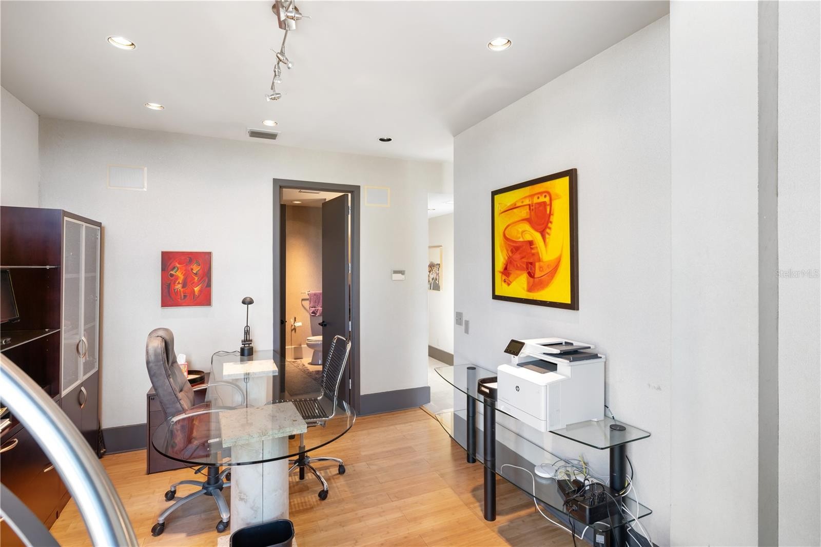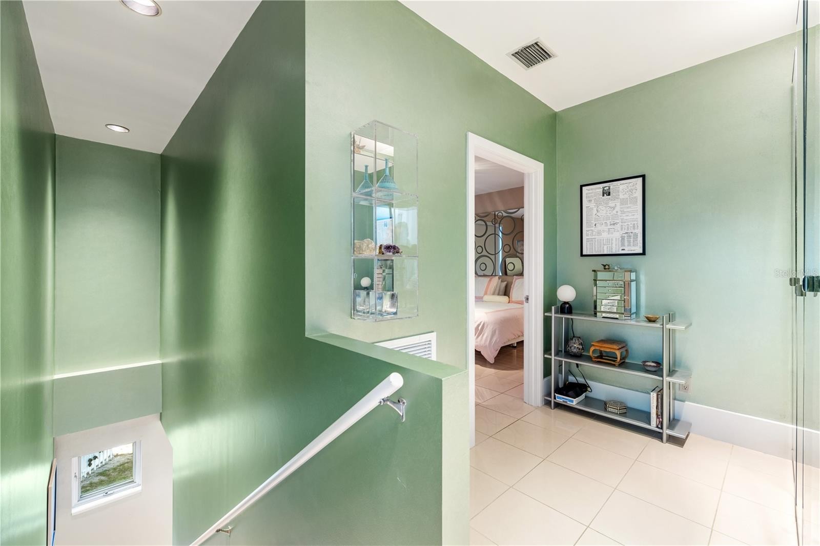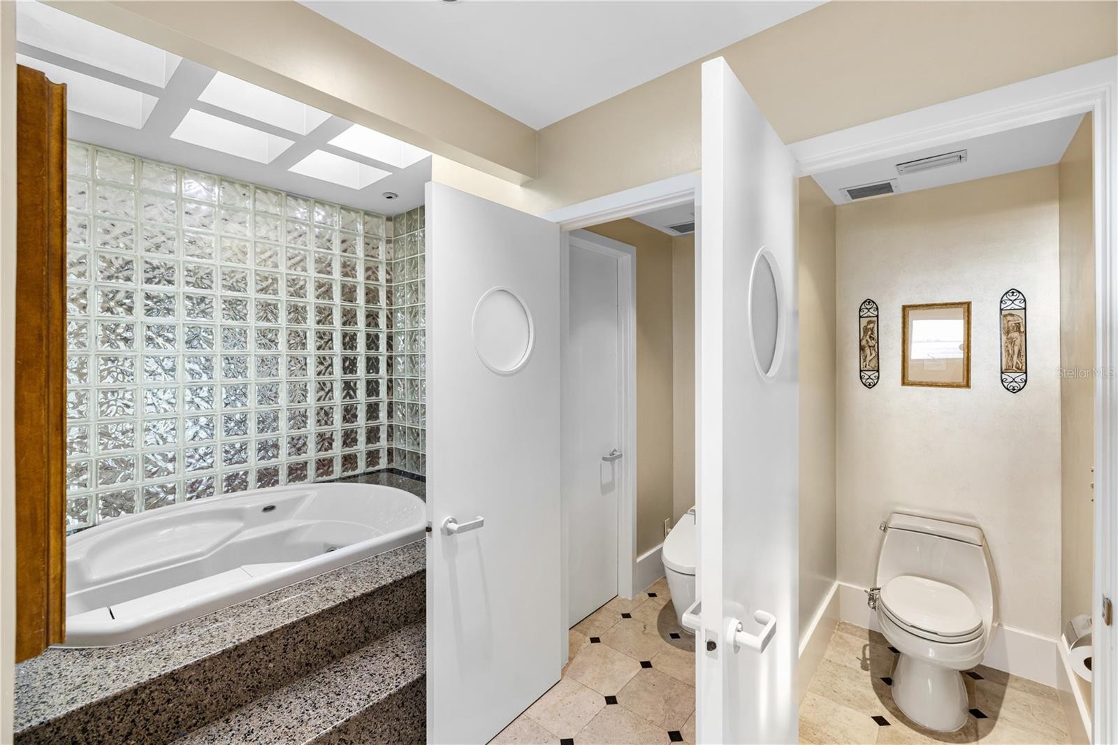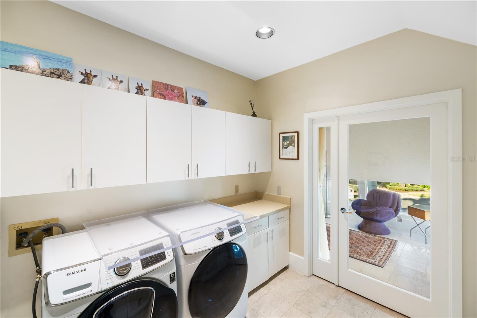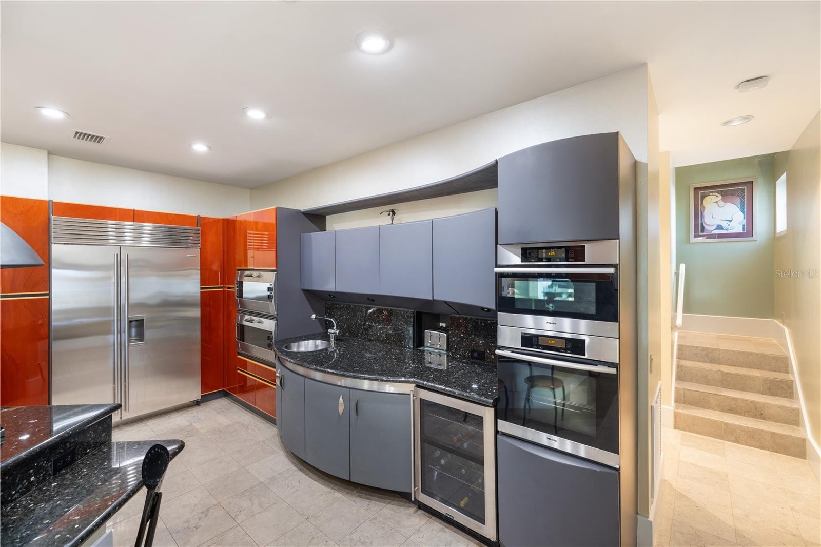 One or more photo(s) has been virtually staged. A truly one-of-a-kind Sarasota Bay waterfront estate set within the private gated enclave of Esplanade on the Bay, offering rare scale, architectural distinction, and 100 feet of direct Sarasota Bay frontage. Encompassing 7,862 square feet under air and 12,088 total square feet, the residence showcases a striking architectural presence shaped by its waterfront setting. Originally featured in a regional architectural publication for its innovative “Tri-Plexity” concept—uniting three distinct architectural ideas into one cohesive waterfront composition—the home reflects a forward-thinking approach to form, vertical volume, and the intentional framing of Sarasota Bay from nearly every room. Upon entering the main living level, sweeping views of Sarasota Bay unfold through expansive walls of glass as the living room rises to 18-foot ceilings and features a fireplace, while floor-to-ceiling windows frame the water and fill the interior with natural light, creating a dramatic yet welcoming atmosphere. From the living room, the home unfolds into surrounding living spaces with the gourmet kitchen positioned at the center of the layout. It features a large center island, professional gas cooktop, premium appliances, and extensive cabinetry arranged to connect seamlessly with the surrounding areas while maintaining views toward Sarasota Bay. Adjacent to the kitchen, a light-filled casual dining space overlooks the bay and opens to a private balcony, creating a beautiful setting for morning coffee or relaxed meals. Beyond the kitchen, a formal dining room provides an elegant setting for gatherings and special occasions and opens to a spacious balcony overlooking Sarasota Bay, complete with a spiral staircase leading to the ground level. Just past the dining room, a seating area with views of Sarasota Bay offers a relaxed place to enjoy the waterfront setting while remaining connected to the surrounding living spaces. This level also includes a private study, a full bathroom, and an additional bedroom. A guest bedroom is positioned in its own wing near the laundry and features a private full bathroom, sitting area, and a separate exterior entrance, creating a private and welcoming guest suite for visitors. The upper level features the expansive primary suite with fireplace and private balcony overlooking Sarasota Bay, ideal for enjoying tranquil water views and spectacular sunsets. Also located on this level are two additional bedrooms, each with its own en-suite bathroom, along with a spacious media room with its own bathroom. A private elevator connects the ground, main living, and primary suite levels. The ground level includes a large fitness area, lounge space, and bathroom, along with two attached garages accommodating up to seven vehicles. Outdoor living features a heated saltwater pool and spa within a screened terrace, designed for relaxation and entertaining, with space for outdoor dining and the potential for an outdoor kitchen. A private dock extends from the property’s Sarasota Bay frontage, providing convenient access to the water for kayaking, paddleboarding, or simply enjoying the waterfront lifestyle. Located minutes from IMG Academy, Sarasota-Bradenton International Airport, shopping, dining, and the beaches of Anna Maria Island and Longboat Key, this extraordinary residence stands as a distinctive architectural waterfront home along Sarasota Bay.