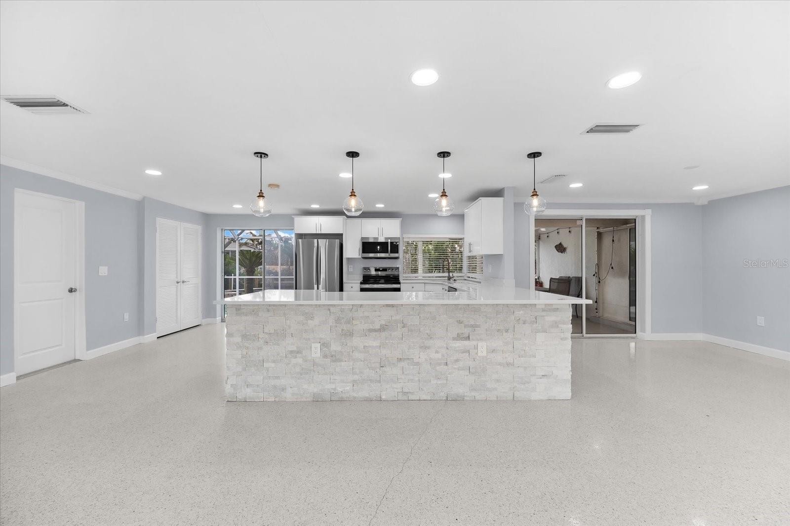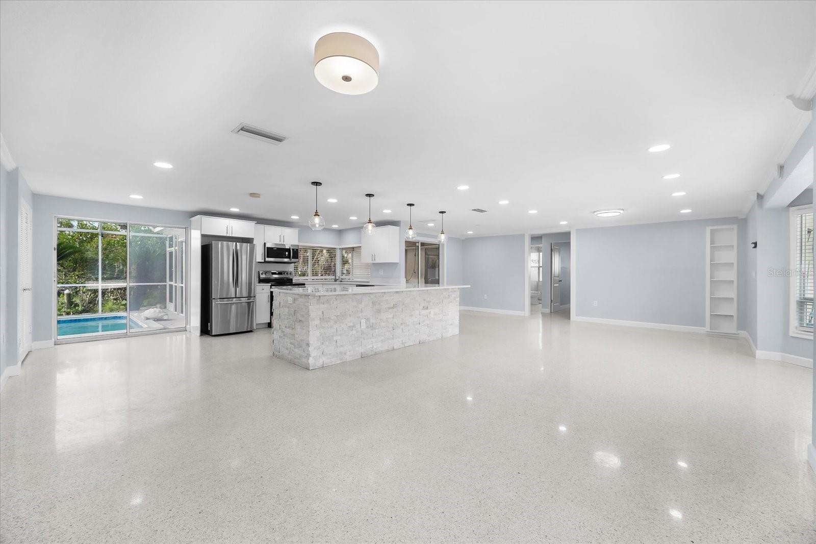 Some homes whisper. Others make a statement. 501 De Narvaez Drive commands attention—with bold architecture, elegant updates, and a prime waterfront location that elevates the Florida lifestyle into something exceptional. Nestled on a quiet corner lot in the coveted Sleepy Lagoon Park neighborhood, this home is your gateway to prestige, privacy, and the purest form of coastal living. Spanning 1,708 square feet of refined single-story living, this 3-bedroom, 2.5-bath residence is a masterclass in modern comfort and timeless materials. Designed with block construction and finished in stucco with a durable metal roof, the home is as solid as it is stylish. Inside, terrazzo flooring sweeps across the entire home, providing a sleek and enduring foundation underfoot. Enter into a light-drenched open floor plan, where the layout has been carefully crafted for entertaining, lounging, and effortless day-to-day living. The living room flows into a dining space and gourmet kitchen—outfitted with stone counters, solid surface tops, a spacious island, and stainless steel appliances including a convection oven and cooktop. Whether you’re entertaining guests or enjoying a peaceful morning coffee, every room connects you to the water and the outdoors. The primary suite is an owner’s haven, complete with a walk-in closet and full bath featuring a tub/shower combination. Two additional bedrooms—each with walk-in closets—offer comfort, functionality, and flexibility. A second full bath, half bath, and spacious laundry area provide all the elements of ease and convenience. But what truly defines this home is what lies beyond the doors. A private, heated pool, enclosed within a screened lanai, becomes your year-round sanctuary. The oversized covered deck is perfect for afternoon shade or sunset cocktails. And then there’s the water: with direct canal access to the Intracoastal Waterway, this home is a dream for boaters. The 2022 composite dock and concrete seawall are in pristine condition and ready for your vessel. No HOA means you can live your way, and with 1-month minimum leases allowed (rental license required), this property also offers incredible short- or long-term rental potential. Add in a two-car garage, central air, electric heat, public water/sewer, and fiber optic internet, and you have every modern amenity at your fingertips. This is more than just a home—it’s a statement of lifestyle. A bold, beautiful, and rare opportunity to own in one of Longboat Key’s most established and beloved communities, just moments from world-class beaches, golf, fine dining, and everything the Sarasota area has to offer. For the visionary buyer who seeks distinction, privacy, and water access—501 De Narvaez is where your story begins.