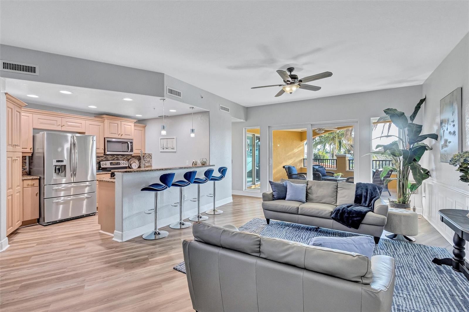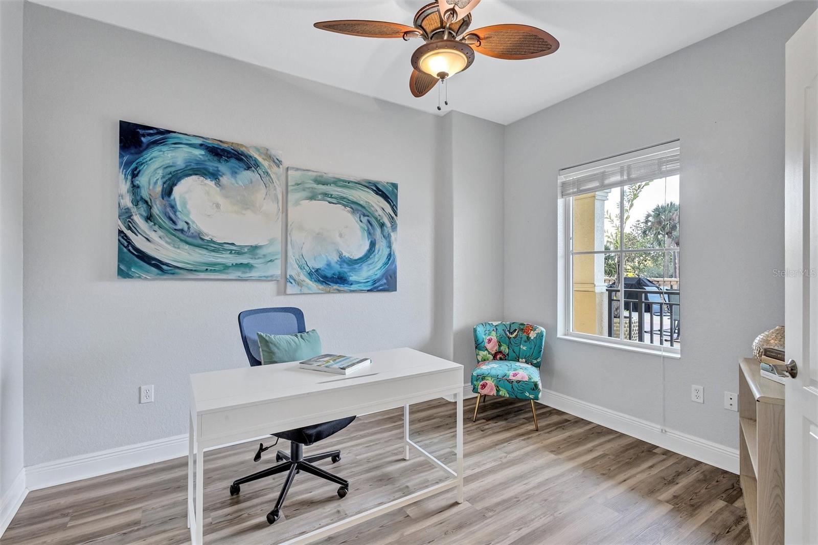 Welcome to your serene retreat at The Palms of Riviera Dunes! Step into this beautifully maintained 2-bedroom plus den, 2-bath condo, thoughtfully designed with a split floor plan that provides comfort and privacy between the two bedroom suites—ideal for guests or a flexible home workspace. The inviting open-concept living and dining area blends seamlessly with the expansive private balcony, creating an effortless indoor–outdoor flow. Here, you can unwind, enjoy peaceful views of the lush grounds and tranquil, fountain-accented ponds, or set the stage for memorable evenings under the Florida sky. The spacious primary suite features an elegant en-suite bathroom, a walk-in closet, and an additional built-in closet, offering generous storage options. A separate den provides endless versatility—perfect for a home office, reading nook, or extra bedroom. This residence also includes a dedicated on-site storage unit, ideal for bikes, beach gear, hobby items, and seasonal décor, along with one assigned covered parking space for added convenience. At The Palms, you’ll enjoy a vibrant, resort-style atmosphere with amenities designed for relaxation and connection. Just steps from your door, the community offers a sprawling heated pool, fitness center, and an expansive outdoor grilling and seating terrace—perfect for hosting friends, enjoying casual meals outside, or simply taking in the fresh air. Additional gathering spaces create an inviting environment for socializing or unwinding. Located in an exceptional central corridor, you’ll appreciate easy access to restaurants, shopping, medical facilities, entertainment venues, and world-famous beaches. Tampa, St. Pete, Sarasota, and the Sarasota–Bradenton International Airport are all within approximately 35 miles. The property is also adjacent to the Bradenton Area Convention Center and the newly opened Marriott, which regularly hosts popular events and activities. This condo offers a rare blend of comfort, convenience, and elevated Florida living. Seller is motivated offering the potential for a smoother, quicker closing. Furniture available under separate contract.