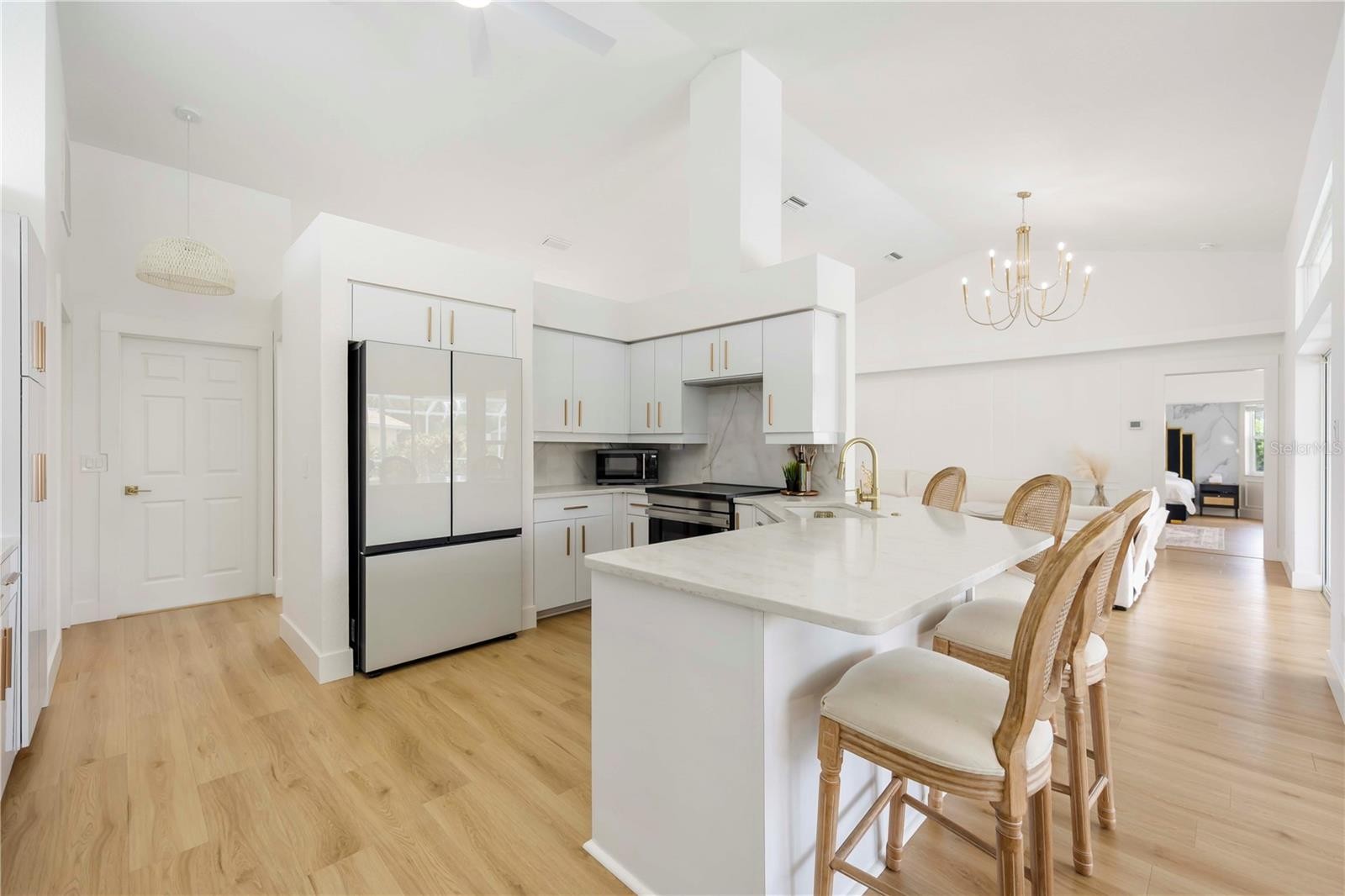 Welcome to this 3 bedroom 2 bathroom beautifully updated home in a desirable Sumter Green deed restricted community.Located just 25 minutes from Gulf beaches and only minutes from shopping plazas, restaurants, and everyday convenience. Nestled on an oversized corner lot this property features a perfect blend of comfort, style, and practicality. This home features bright, open floor plan with high ceilings that create an airy and inviting atmosphere. Custom finishes throughout the home speak to the quality and care invested in every detail. A new heating and air conditioning system, along with a roof less than 3 years old, ensures peace of mind for years to come. The chef's kitchen is outfitted with premium appliances , quartz counter tops and overlook the view of the pool, making it both functional and elegant space for entertaining or every day use. The Primary suite features two large walk in closest with custom shelving, gorgeous light fixtures, and a private bathroom that includes two separate sinks, a relaxing soaking tub and a gorgeous tile shower. Step outside to your private oasis - a heated pool with a 2017 pool heater and an updated pump. The irrigation system, running on its own private well, keeps the beautifully landscaped yard green and thriving, while the home is conveniently connected to public water and sewer. This is Florida living at its finest whether you're looking for a full-time residence or a seasonal retreat. Schedule your private showing today and experience all this stunning home has to offer.