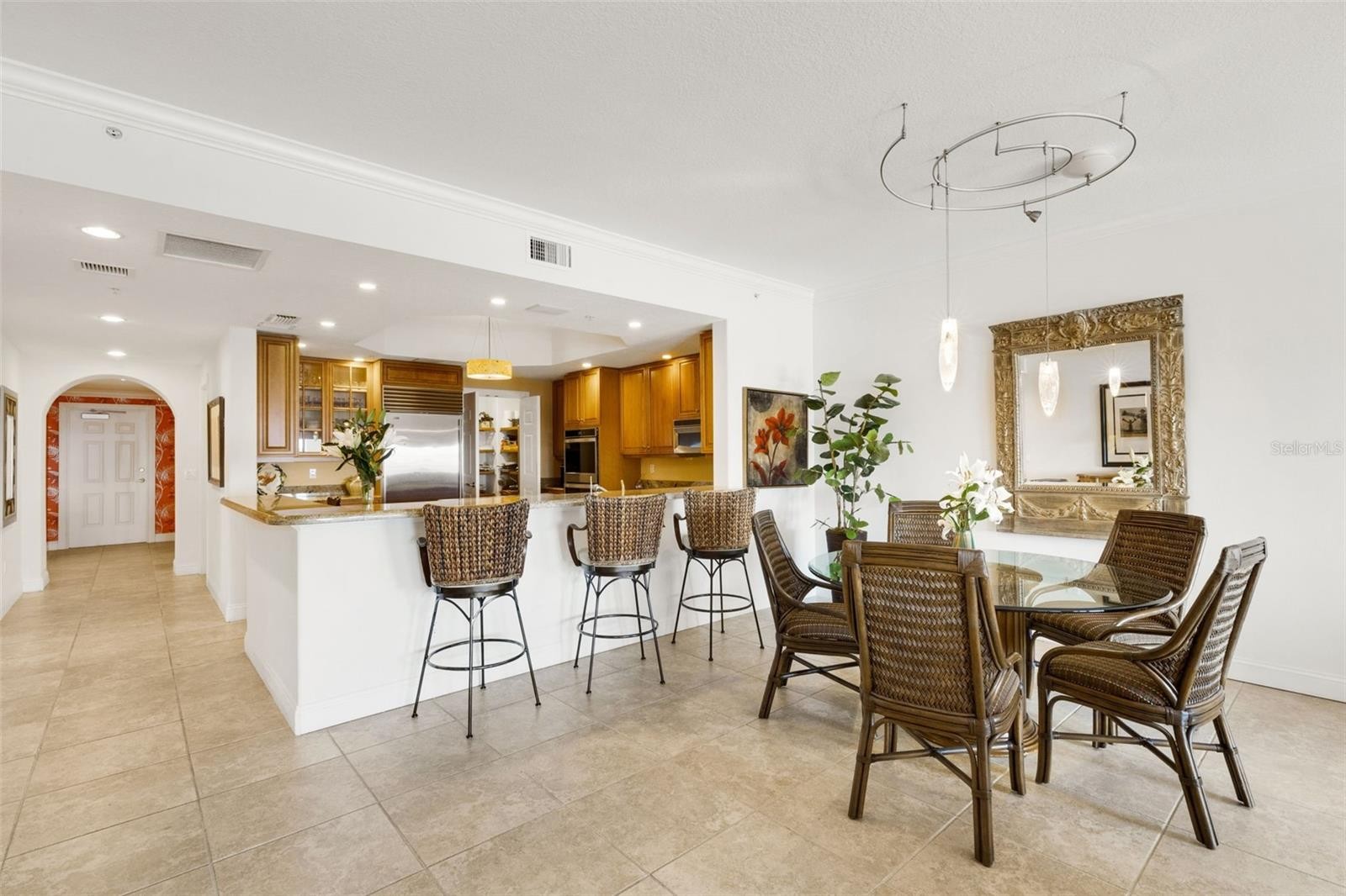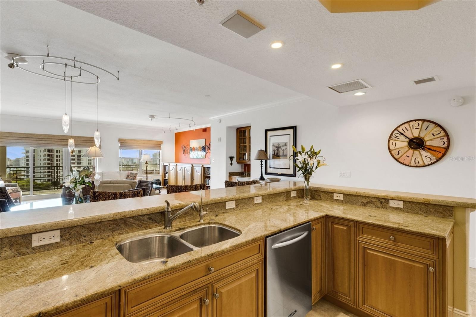This spacious condominium is a hidden gem in a quiet part of Sarasota, offering breathtaking views of Sarasota Bay out to the Gulf of Mexico and overlooking the Burns Court area. It's just a short walk from Selby Gardens, the Farmers Market, shops, and cafes. The residence features an elevator that opens into your private foyer with double French doors leading into the unit. This expansive three bedrooms, three and one-half baths layout lives like a single family home. Entering the unit through the private elevator, which opens to your own foyer, you'll find a kitchen that is a chef’s dream. It features a Sub-Zero refrigerator, KitchenAid induction cooktop, double wall oven, a large walk-in butler’s pantry, an island, granite countertops, and a desk area built-in. The Impressive Great Room with a wall of windows including a Sliding Glass Door with Access to the Balcony expanding the length of the room Offering Amazing Views! The Expansive Owner’s Suite is Truly Spectacular with Large Windows Highlighting Views of the Waterfront, Along with Bringing in an Abundance of Natural Light! The Suite also features Tray Ceilings, Plantation Shutter Window Shades, a French Door To the Balcony, and a Large Custom Designed Walk In Closet. The Stunning En Suite Bathroom Dual Vanities, Water Closet, and Linen Closet. Conveniently Located Adjacent to the Owner’s Suite is a Den/Office. On the opposite end of the unit are two additional guest suites, each offering private bathrooms, walk-in closets, and access to a balcony. A Well Equipped Laundry Room, a Half Bath, and Loads of Storage which include an Air Conditioned Closet, Garage Level Storage and Bike Storage, as well as 2 Parking Spaces, all Blend Together Creating this One of A Kind Condo! The living space includes three bedrooms, three and a half baths, an office, and a laundry room. The large kitchen and walk-in pantry open to a great room, which encompasses a living and dining area complete with a built-in entertainment center and a wine bar. Additionally, there is a front glass wall of sliding impact windows and doors. The unit offers two balconies: the front provides sweeping views of the city and the Sarasota Bay bridge, while the back overlooks Laurel Park. For storage, there is a walk-in unit outside the residence in addition to large storage spaces connected to every room inside. The building is constructed of solid concrete and includes a lap pool, exercise room, kitchen, and meeting room. The fully finished and furnished roof is perfect for hosting parties or watching the sunset. For peace of mind, there are two generators to maintain power during inclement weather, and every residence includes two indoor parking spaces. Kanaya's amenities include the rooftop with 2 outdoor kitchens and a sitting area, allowing you to overlook the city or look out to the Gulf of Mexico. Enjoy the 59 foot lap pool, work out in the gym, lounge on the 4,000-square-foot deck by the pool, fire pit and barbecue, or entertain guests all on the 3rd floor common area. Kanaya is a hidden gem and consider this unit for one of the best prices with this fantastic view in all of Sarasota. Walk to the Marina, Selby Gardens, the Opera House, the movies and your favorite restaurants. The best view of fireworks and the Boat Parade from the Kanaya roof.