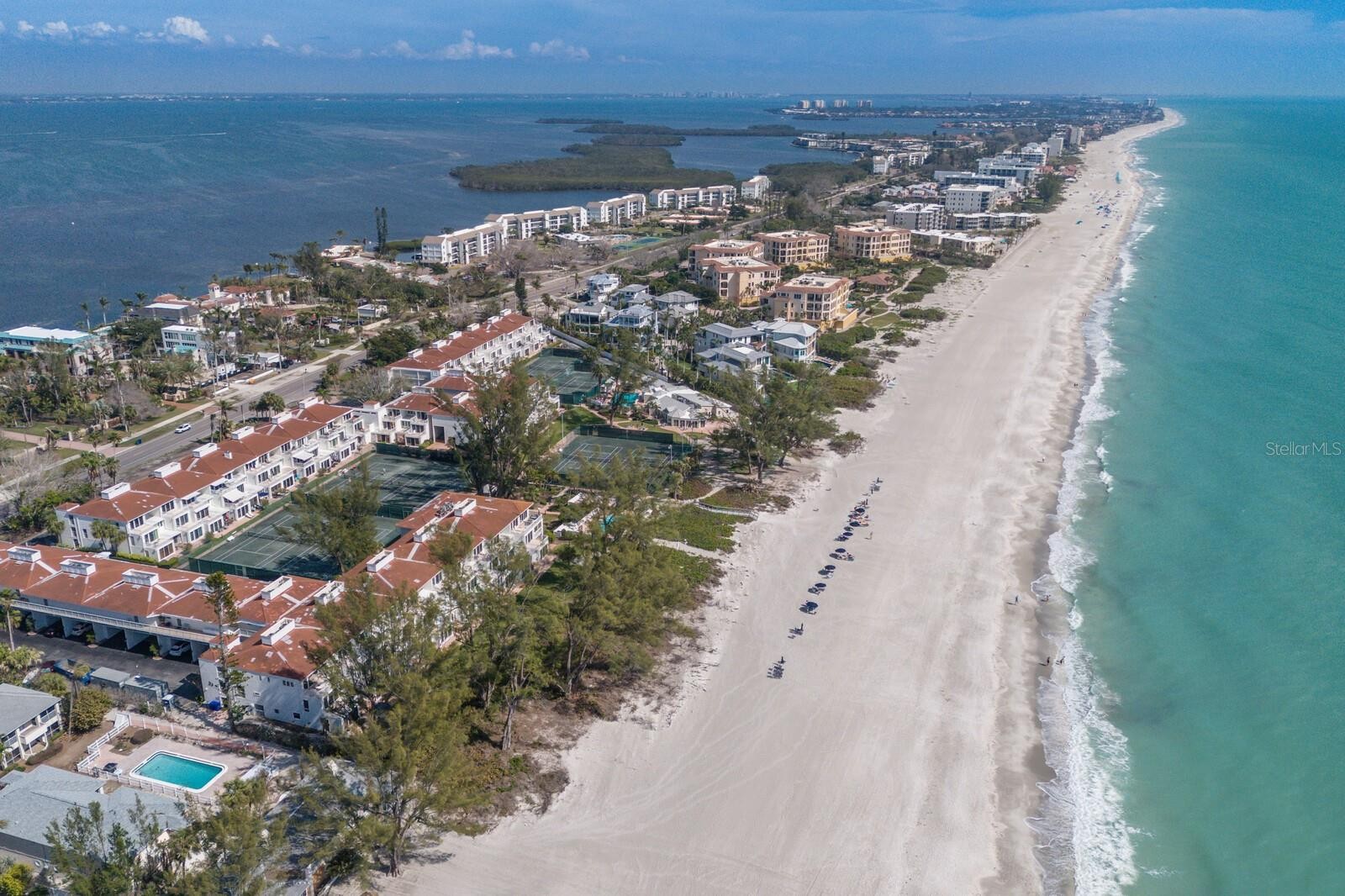 Luxury turnkey furnished beach condominium in the sought-after resort-style Club Longboat Beach and Tennis community. Near the beautiful sandy beaches on the Gulf, experience captivating sunsets from Longboat Key’s 10-mile sugary sandy beaches with your own private beach access. Imagine waking up to lush, pristine landscaping, tropical sea oats, and sparkling blue Gulf waters with the sound of crashing waves providing you with peace and serenity. This amazing community also offers the best tennis courts on the Island, with 8 Har-Tru Tennis courts, lights for night play, a dedicated tennis pro and a ball machine to allow you hours of practice to perfect your tennis game. This move-in ready fully furnished 1,624-square-foot two-bedroom, two bath unit provides an open kitchen, spacious living room with adjacent private balcony with partial water views, an integrated dining room, a bonus room and interior laundry room. Enjoy comfort and style accented with exquisite décor and custom furnishings, the home is outfitted with real wood floors, hurricane-impact windows, plantation shutter sliders, two living areas, one could be converted into a third bedroom or office, and two balconies of 140 square feet each of outside living area. The primary bedroom has an en-suite bath, king-size bed, dual custom built closets and a private balcony to enjoy your morning coffee. The guest bedroom you will find cozy with a double-size bed. The kitchen offers plenty of cabinet space, granite counters plus a wine cooler. This spotless home is well maintained, has tons of storage including an outdoor storage closet for your beach toys, covered parking for one car and plenty of parking for guests. On the second floor, the unit is accessible by elevator or stairs. Club Longboat Beach and Tennis community offers amazing amenities, including private beach access with lounge chairs and beach umbrellas, tennis, pickleball, fitness center, shuffleboard, barbeque area, clubhouse with regular social events, sauna, spa and two heated swimming pools. Club Longboat has 85 well-managed units and is a pet-friendly community allowing up to two pets. The condominium fees include exterior maintenance and insurance, cable, water, sewer and trash. Make it your home or a rental property. The minimum lease is one month and can be rented up to 12 times per year. Only a short drive to many fine restaurants, shops, Anna Maria Island, St. Armands Circle and the City of Sarasota. Sarasota is a well-known center for arts and culture including the Asolo Theater, Van Wezel Performing Arts Center and Ringling Museum. Make your appointment today to see this amazing home!