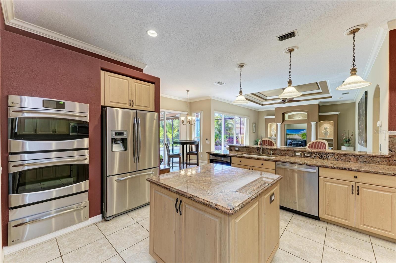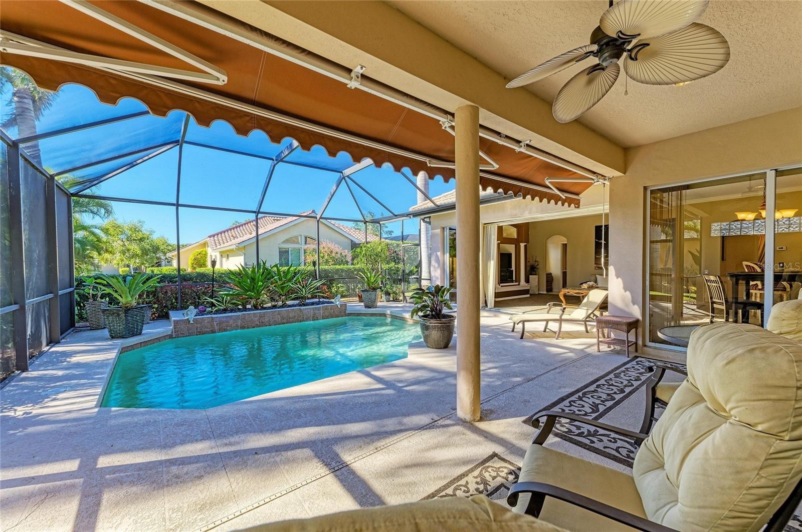 Tucked away at the end of a quiet cul-de-sac in the highly sought-after gated community of Amberlea, this Arthur Rutenberg Nassau V model offers the Sarasota lifestyle buyers are actively searching for—space, location, and long-term value. This 4-bedroom, 3-bath pool home with a 3-car garage sits on a beautifully landscaped lot and is ideally located just over 5 miles to world-famous Siesta Key Beach, less than a mile to the Legacy Trail for biking and walking, approximately 7 miles to vibrant downtown Sarasota, and about 10 miles to both UTC Mall and St. Armands Circle for premier shopping and dining, all while being zoned for the highly desired Ashton Elementary, Sarasota Middle, and Riverview High School. The exterior welcomes you with a brick paver driveway and an impressive double-door entrance, while the backyard features a private lanai and pool designed for year-round enjoyment with a tranquil waterfall, outdoor grill, and automatic sunshade, along with recent improvements including a newly painted and rescreened pool cage, a new pool pump, and a freshly resurfaced marcite pool. Inside, you’ll find a home built in an era when quality mattered, offering excellent bones, an open floor plan, multiple tray ceilings, crown molding, and triple pocket sliders that seamlessly connect the main living areas to the lanai, allowing you to enjoy the soothing sounds of the waterfall from inside the home. The spacious kitchen overlooks the outdoor living area and features high-end granite countertops and backsplash, stainless steel appliances, a wine refrigerator, and three ovens including a double oven and built-in warming drawer, while the large laundry room includes a newer LG washer and dryer. The fourth bedroom is currently used as a private office and showcases French doors along with stunning built-in solid cherry wood shelving and cabinetry. The home is priced to reflect key considerations, including an original concrete tile roof; however, a recent four-point and wind mitigation report from September 2025 (available upon request) indicates approximately 6–8 years of remaining life, so insurance should not be an issue, and it is also worth noting that concrete tile roofing is not required in this subdivision, allowing for a more cost-effective replacement option in the future. Additionally, the HVAC system is approximately 15 years old, but has been regularly serviced, and is in working condition, as documented in the inspection report. Furthermore, the freezer portion of the kitchen refrigerator is not currently functioning and will require repair or replacement, and the home could certainly benefit from some cosmetic updating. These items have been thoughtfully reflected in the pricing, especially considering that updated homes in Amberlea routinely sell in the $800s. This is a rare opportunity to secure a well-built pool home in one of Sarasota’s desirable gated neighborhoods with room to add your own personal touches—schedule your private showing today and experience the potential for yourself.