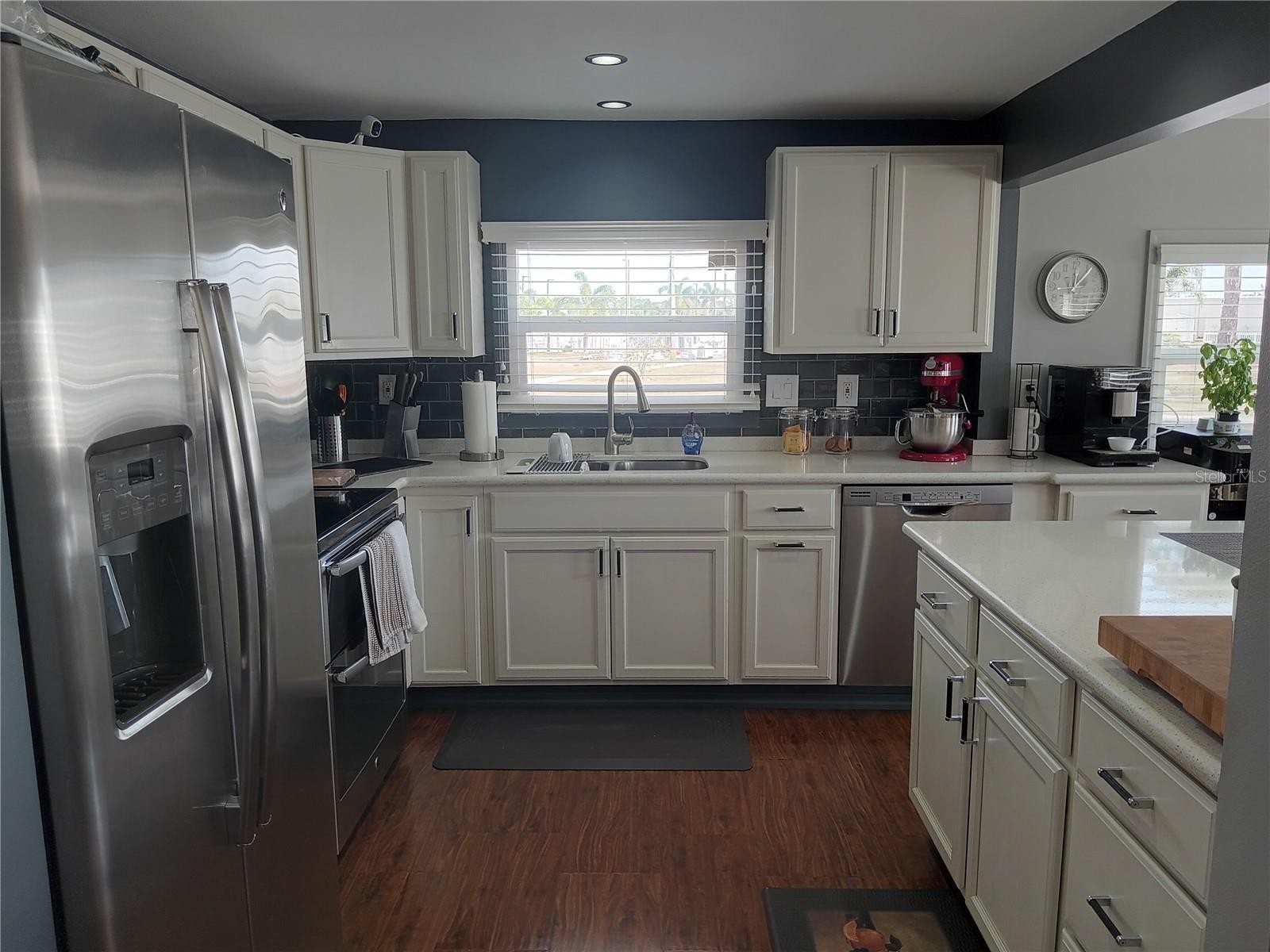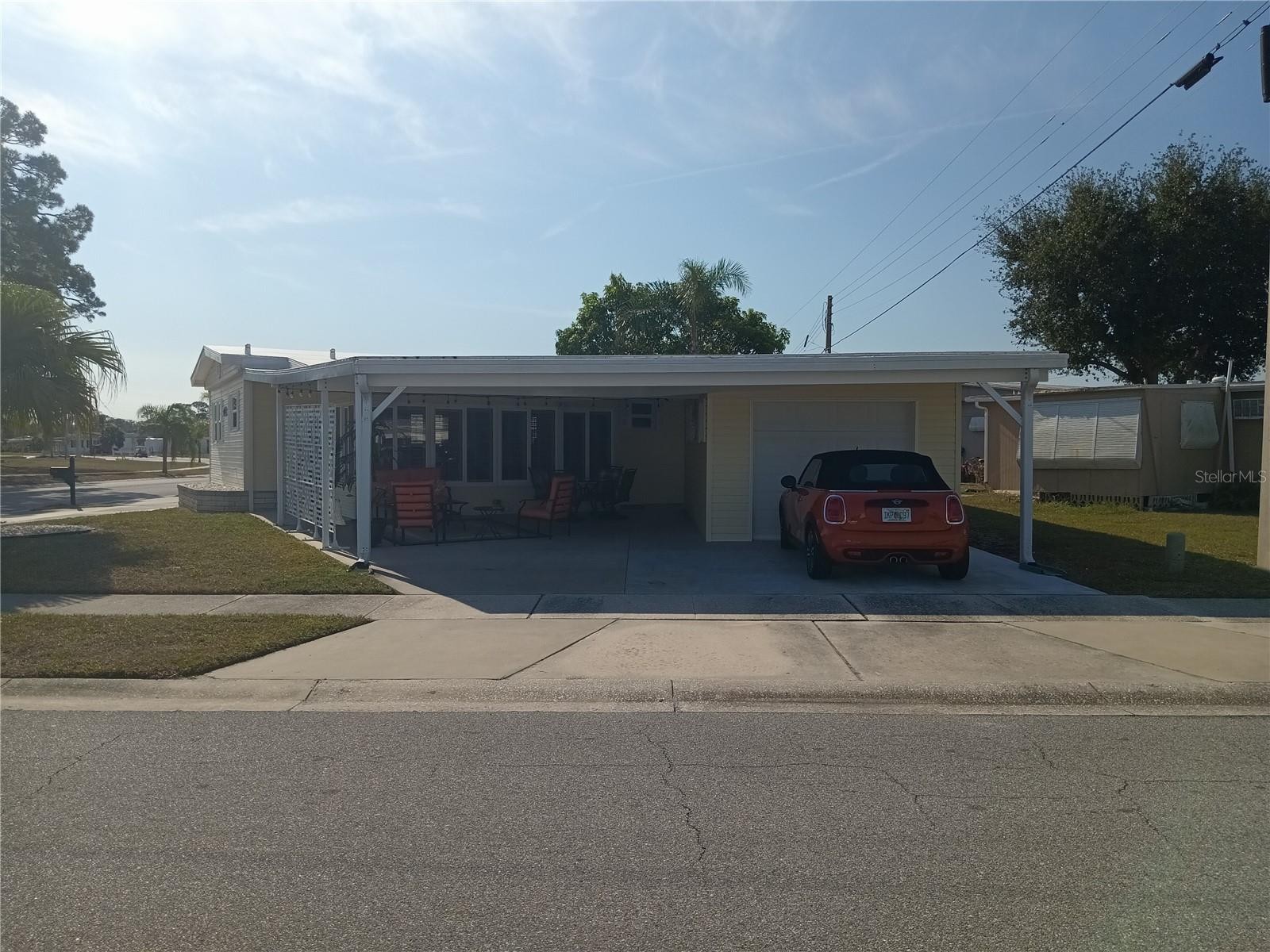 Gorgeous corner lot, totally updated furnished 2 + 2 plus bonus room. This home has a garage, three parking spots, and a gazebo with fire pit! The photos will dazzle you, but you really have to see this one in person. The home was remodelled down to the studs and updated from top to bottom. The furniture and updates are all upscale. Some of the nice touches are: recessed lighting, low-profile fans, kitchen island, sloft-close drawers, engineered floors, double-paned windows with pull-out plantation blinds, and much more! If you enjoy entertaining or relaxing in a Florida warm breeze, there is a large outdoor covered living space, with plenty of room for bar-b-queing. This property is located conveniently to the many amenities and is NOT in the flood zone! Tri-par Estates is a 55+ active, vibrant community. We have many amenities here such as a large pool, spa, palapa tiki hut, pickleball courts, fitness center, shuffleboard, miniature golf, horseshoes, game rooms for ping-pong, billiards along with classes for sewing, painting and more. The clubhouse is host to events such as dinners, dances, meetings, and church services. You own your own land in this special parks and recreation district, and pay not HOA fee directly to the association. The annual amount of $1,584 is included in your property taxes. Golf cart-friendly community with optional storage for your R/V or boat.