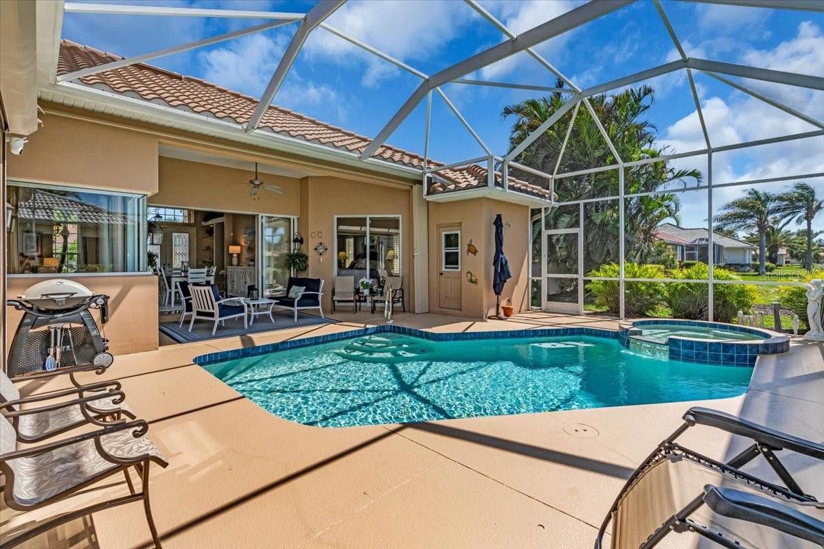 Come enjoy a private tour in this impeccably maintained home in Seagrass neighborhood in Southwoods Venice FL. Gated community with a modest clubhouse and community pool. Optional Turn-key home minus the Exclusion items List. Stately looking home with a longer and wider paver driveway than the typical home. 2024 Roof! As you enter the double door entryway, wood flooring in formal dining room with beautiful heated salt water pool ahead in view. Open floor-plan with Kitchen with granite counter and stainless steel appliances. Sitting stools at breakfast bar and room for a kitchen table in the kitchenette area. Osmosis water system in kitchen. Office with laundry room off the kitchen with cabinets for storage. Family room with impact windows. Split floor-plan. Large Primary ensuite. Wood flooring in primary bedroom with large primary bath 2 sinks and huge walk in shower. Walk in closets with double built in safety boxes. Opposite side of the house with 2 good size bedrooms with a full bath. Pocket door for privacy for the guest wing. Lanai with beautiful pool and space with westerly sunset views plus a lakeview with a peaceful aerator insight. Half bath and an outdoor shower in pool area for convenience. Spot lights on landscaped bushes around the home. Garage with insulated garage door and AC making it comfortable to work in your own garage space with an extra refrigerator. Central vacuum system. Whitestone Community offers LOW HOA, NO CDD fees and X Flood zone. Enjoy the active community clubhouse and heated pool. The home is conveniently located minutes from downtown Wellen Park, offering shopping, restaurants, walking trails, a Costco Warehouse, and the Braves practice stadium. A 15-minute drive will take you to historic downtown Venice for shopping and dining, and you’re close to Manasota, Venice, and Nokomis Beaches for wonderful Florida sunsets and shark-tooth hunts. Sarasota Memorial Hospital, Venice location, and many other medical facilities are also nearby.