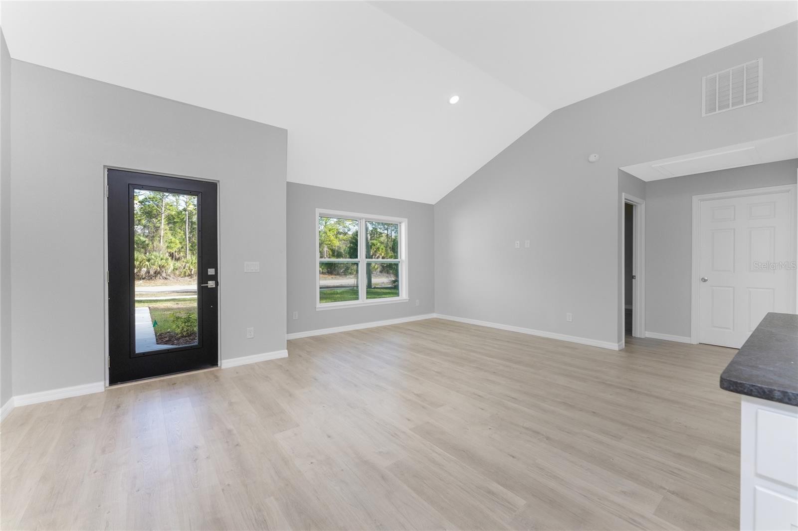 Step into this stunning new construction 4-bedroom, 2-bath home in the vibrant community of North Port, Florida. Thoughtfully built using Structural Insulated Panel Systems (SIPs), this residence offers exceptional energy efficiency, durability, and comfort—perfectly suited for Southwest Florida living. SIP construction creates a continuous insulation barrier that helps maintain consistent indoor temperatures while significantly reducing air-conditioning demand. Enjoy enhanced comfort and lower energy costs year-round, even during Florida’s hottest months. Engineered to resist lateral wind loads, SIP wall systems provide increased rigidity and durability, offering added peace of mind during storm and hurricane season. The precision installation of SIPs results in an airtight building envelope that delivers: Improved indoor air quality by limiting outdoor pollutants and excess humidity Better moisture and ventilation control—critical in Southwest Florida’s climate Reduced drafts and temperature fluctuations for consistent comfort throughout the home. SIP construction offers long-term benefits including: Potential for smaller, more efficient HVAC systems Possible insurance savings due to hurricane-resistant construction Reduced long-term maintenance and operating costs Designed with today’s lifestyle in mind, the home features a bright, open Great Room that flows seamlessly into the kitchen and dining areas—ideal for both everyday living and entertaining. Durable vinyl flooring runs throughout the main living spaces, including the inside laundry room. The kitchen is a standout, showcasing solid surface countertops, stainless steel appliances, abundant cabinetry, and a spacious pantry cabinet. A thoughtfully designed split floor plan offers privacy, with two bedrooms and a bath on one side of the home and the primary suite plus an additional bedroom on the other. The Primary Suite is a private retreat, complete with large vanity, a walk-in shower, and a large walk-in closet. Step outside to a large backyard and patio area, offering ample room to add a pool or create your ideal outdoor oasis. With no HOA, a septic system, public water, HURRICANE IMPACT WINDOWS AND SLIDERES, and no flood zone designation, this property provides both flexibility and peace of mind. This exceptional home blends modern design, energy efficiency, and structural integrity—and is ready to welcome its very first owner.