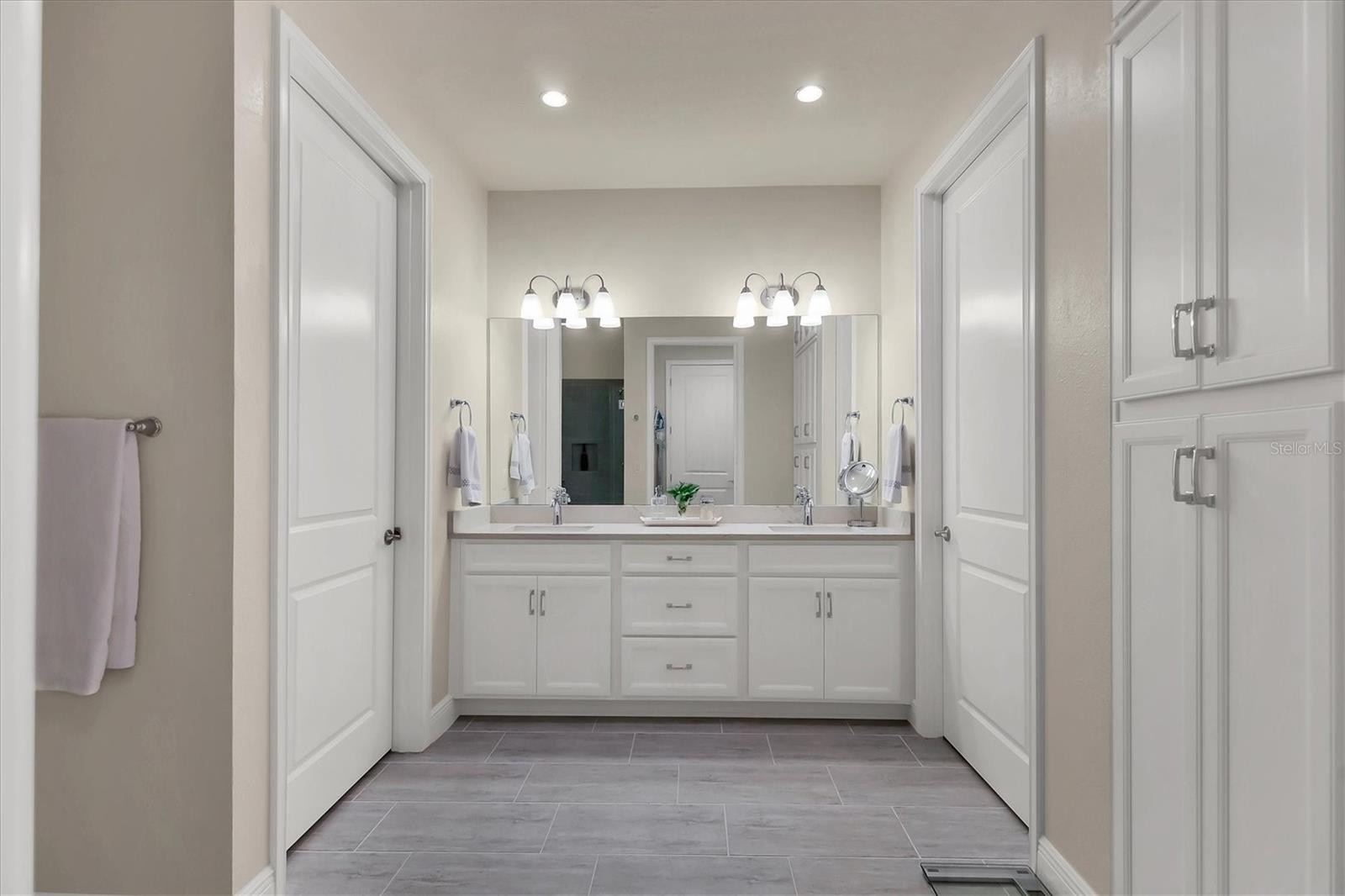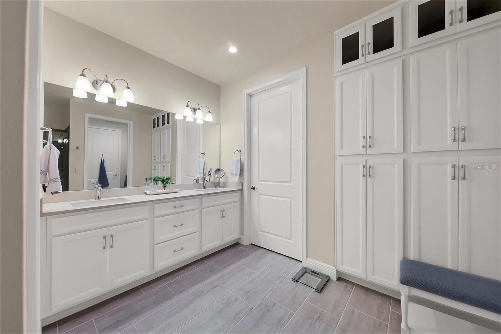 A beautiful, rare corner-unit, single-story residence in the gated Enclave at Forest Lakes, ideally located in the heart of Sarasota. This meticulously maintained home offers privacy, natural light, and an open layout designed for effortless living, all just minutes from Siesta Key Beach, downtown Sarasota, major highways, shopping, dining, and everyday conveniences. Featuring 2 bedrooms, a dedicated office/den with double French doors, and 2 bathrooms, the home showcases over $60,000 in builder upgrades. Interior highlights include 9-foot ceilings, 8-foot paneled doors, rich hardwood flooring throughout, and stylish tile in both bathrooms. The chef’s kitchen is a standout with light cabinetry, pull-out storage features, quartz countertops, a large island with a breakfast bar, stainless steel appliances, and a marble backsplash. The primary suite serves as a private retreat with a tray ceiling and a spa-like bath offering a walk-in shower, dual sinks, quartz counters, and ample storage. The great room opens to a full-width covered and screened lanai with remote-controlled fans and ceiling speakers, creating an ideal indoor-outdoor living space. Residents enjoy maintenance-free living with access to a heated resort-style pool, pavilion, dog park, and nearby Legacy Trail access. This corner-unit home combines luxury, privacy, and a central Sarasota location that puts beaches, culture, recreation, and shopping all within easy reach.