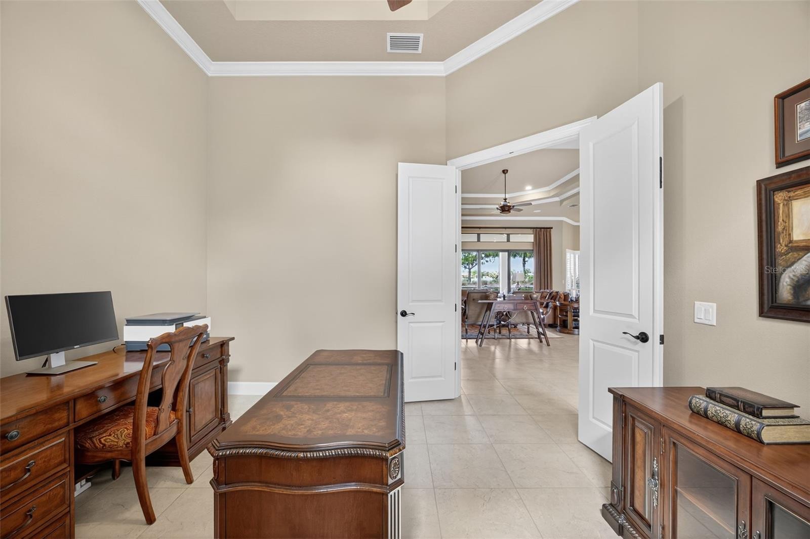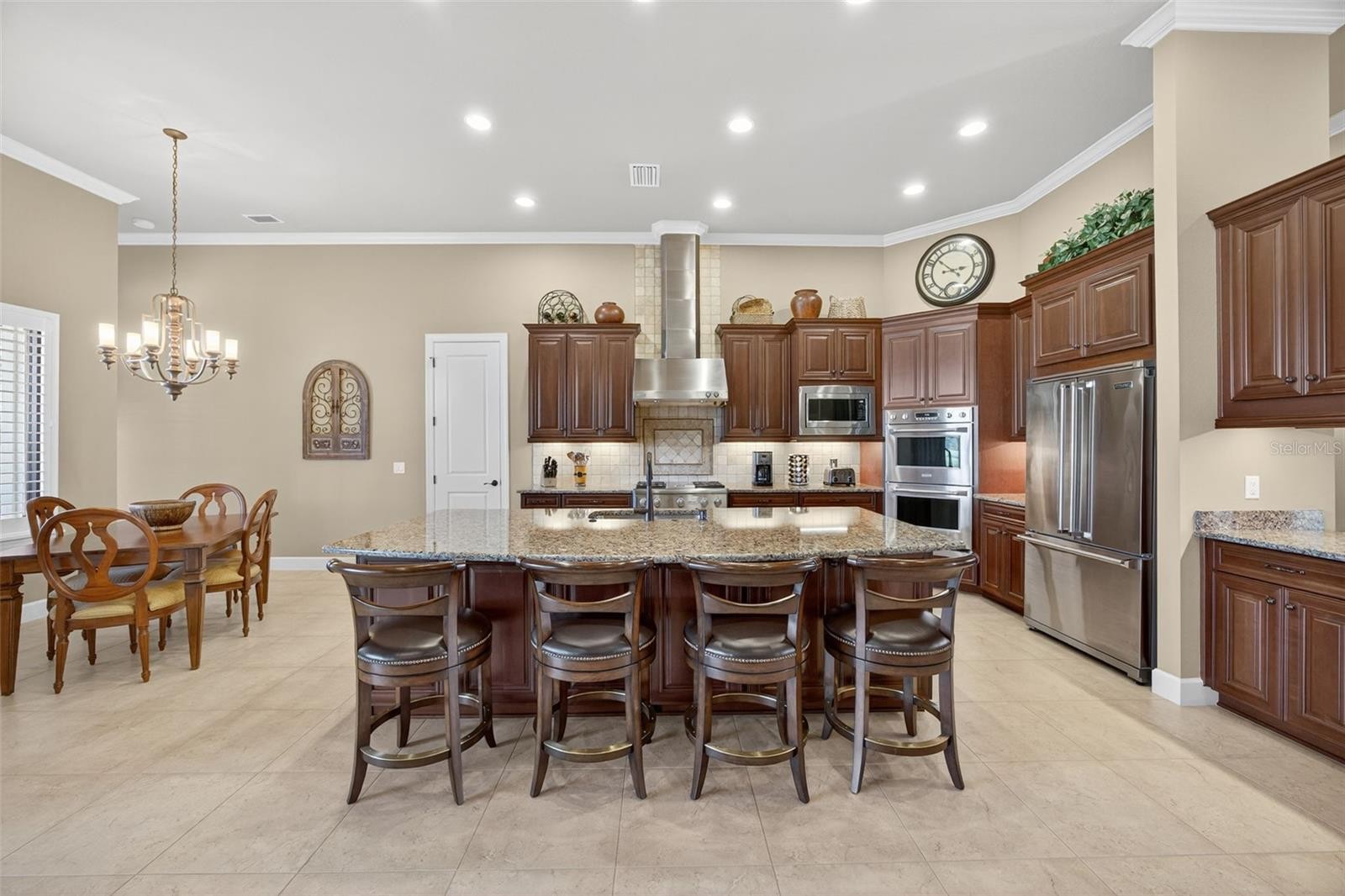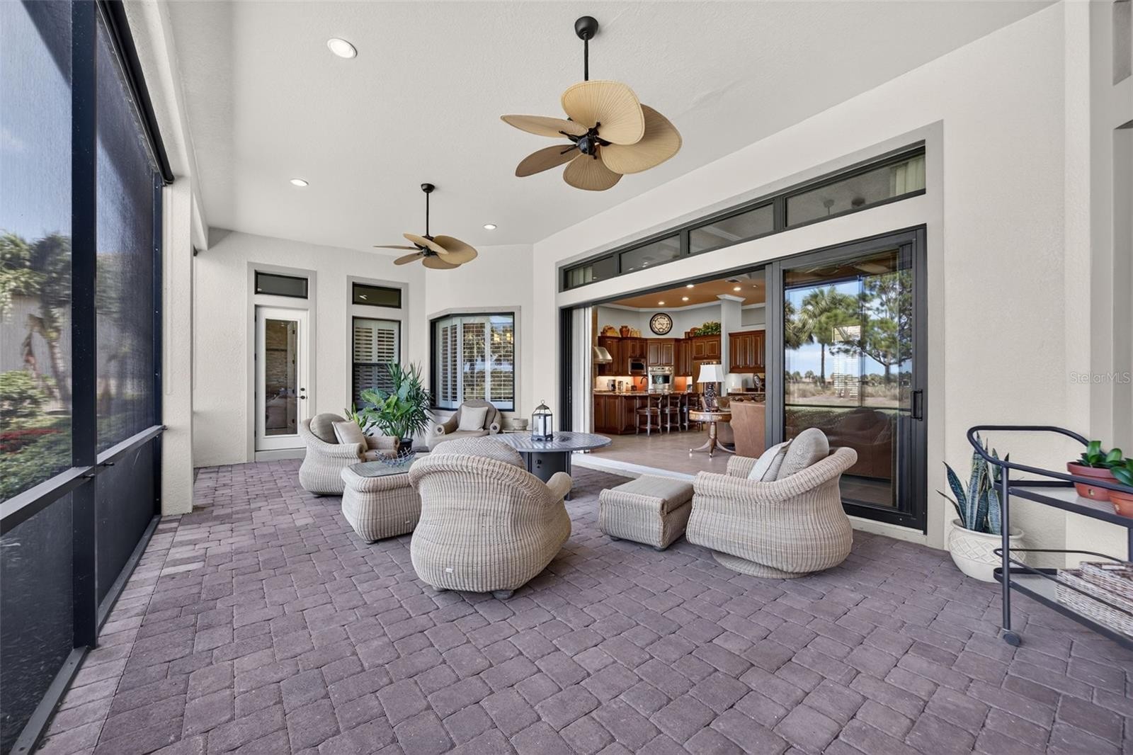 One or more photo(s) has been virtually staged. Elegant and Expansive Mercede Model with Golf & Water Views in Esplanade Golf & Country Club! Welcome to this stunning open Floor Plan, offering 3,276 sq. ft. of luxurious living space under air, featuring 3 bedrooms, 3.5 bathrooms, a private den, and a 3-car garage. Perfectly positioned on a premium homesite with breathtaking views of the 17th fairway and tranquil pond, this home blends timeless elegance with modern upgrades. Step inside through a double-wide front door and experience refined finishes such as double crown moldings in the great room, hardwood floors in the bedrooms, and tile flooring throughout the main living areas and bathrooms. Plantation shutters offer a custom touch, while the gas fireplace with built-in cabinetry and display shelves, surround sound system, and brass floor receptacles add both charm and functionality. The gourmet kitchen is a chef’s dream, complete with upgraded granite countertops, top of the line GE Monogram double ovens, gas cooktop with range hood, Viking refrigerator, Timberlake 42" cabinetry with crown molding, pull-out cabinet drawers, recessed LED lighting, an expansive island with extra storage, and a spacious walk-in pantry. Enjoy seamless indoor-outdoor living through 16-foot pocket sliders leading to a screened lanai featuring a summer kitchen with grill, sink and built-in refrigerator—all overlooking peaceful golf and tranquil water views. Additional highlights include a newer front-loading washer and dryer, hurricane impact windows on the front of the home, an irrigation system using reclaimed water, full home gutters, garage shelves, pull-down attic stairs, a whole-house chlorine filtration system serviced by Badger Bob’s, a Sentricon termite protection system, this exceptional residence is offered by the original owners and has been meticulously maintained in a pet-free and smoke-free environment. GOLF IS INCLUDED FOR TWO HOUSEHOLD MEMBERS. The community is built around healthy living and living well with unlimited exercise and social options. Esplanade offers a wide array of amenities and activities such as an 18-hole championship golf course, two resort pools, hot tubs, resistance pool, pickleball, tennis, bocce ball, two fitness centers, exercise classes, two dog parks, playground, firepit, spa/salon, an on-site lifestyle director, social events, and various clubs plus a Tiki bar. The state-of-the-art Culinary Center offers residents several dining options such as the Barrel House as well as catering services, wine tastings, and special events. Esplanade is located in the heart of Lakewood Ranch, close to I-75, Lakewood Ranch Main St., University Town Center, Sarasota Polo Club, shopping, dining, entertainment, hospitals, cultural attractions, boating, parks and Florida's famous sandy beaches. One or more photos has been virtually staged.