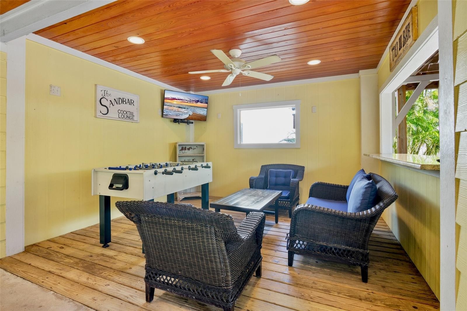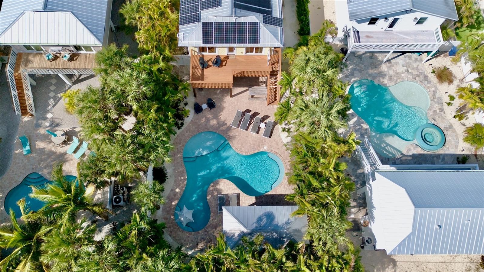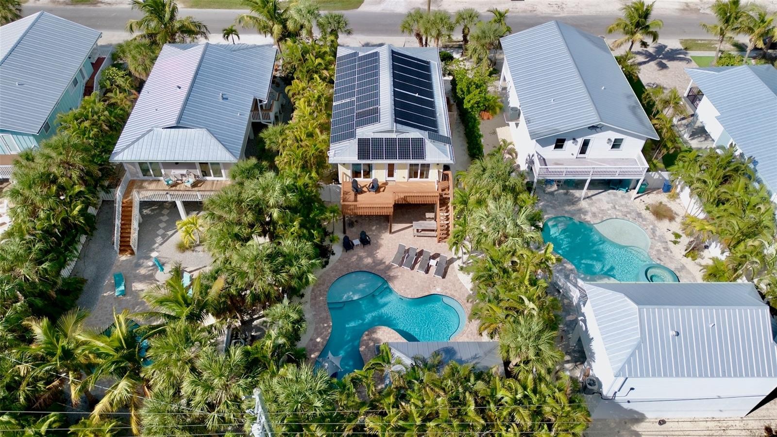 Welcome to Cabana Breeze, an elevated, eco-friendly retreat on the coveted north end of Anna Maria Island. Complete with solar panels—this four-bedroom, two-bath home sits just a short walk from Anna Maria City Beach and steps from Pine Avenue’s popular shops and restaurants. The outdoor oasis features a large lagoon-style heated pool with in-water seating, two shaded cabanas for dining and bar lounging, and a recreation room with foosball, TV, and a tiki bar. With its prime location and resort-style amenities, Cabana Breeze also makes an excellent investment as a high-performing vacation rental. Inside, the open great room offers coastal charm with comfortable seating, wood floors, a modern dining area, and a updated kitchen with granite counters, stainless steel appliances, and a breakfast bar. Sleeping arrangements include two king bedrooms—both with patio access—plus two queen bedrooms and a queen sleeper sofa for added flexibility. The primary suite features a walk-in shower and double vanity, while the remaining bedrooms share a well-appointed hall bath. Combining sustainable living, an exceptional location, and strong rental appeal, Cabana Breeze is the perfect blend of island comfort, convenience, and investment potential. Don’t miss your chance to own this exceptional AMI retreat- call today to schedule your private showing.