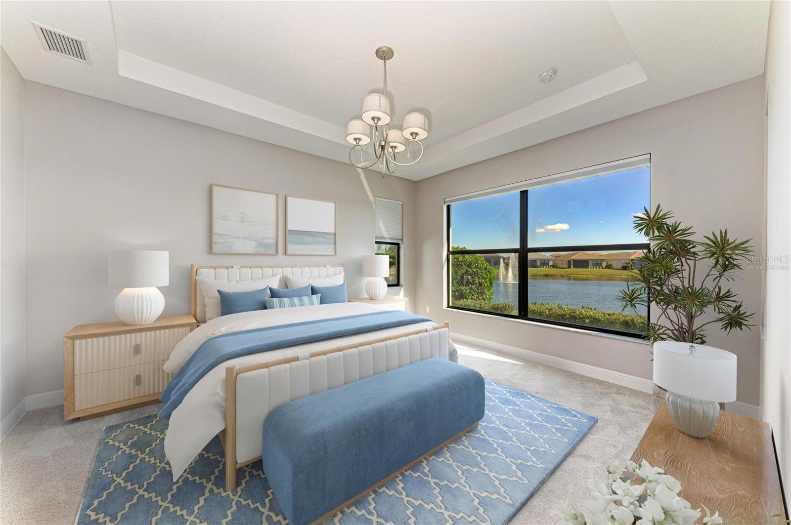 One or more photo(s) have been virtually staged. Welcome to Cresswind, a 55+ Gated Community in Lakewood Ranch! This stunning, gently lived-in 2 bedroom, 2-bath with a spacious den, and a 2- car garage offers 1,671 square feet of bright, open living space with a captivating water view. Featuring luxurious, modern tile flooring in the main living area, LVP in the den and carpet in the bedrooms, quartz countertops throughout and well-appointed, upgraded finishes including high end, modern cabinetry in the kitchen and baths. The den features an upgraded, beautiful built-in useful for a home office or workspace. The primary suite offers dual sinks with quartz countertops, an exquisite walk-in shower, two walk-in closets, and remote window shades. Don't forget to take note of the upgraded lighting and fans throughout. This home blends modern comforts with timeless style. At the amenities center, you will enjoy the exceptional resort-style pool, resistance pool, spa/hot tub/whirlpool spa, walking trails, and landscaped walkways for strolls. Pet-friendly dog park, social opportunities, between scheduled events, clubs, group activities, and informal gatherings. Other amenities include tennis, pickleball, a vibrant clubhouse, and fitness center. Easy access to all the Lakewood Ranch area has to offer, shopping, dining, Sarasota and Tampa airports, the world renowned Bradenton and Sarasota beaches. Move-in ready and beautifully maintained, this is the perfect retreat for those seeking an active and refined Gulf Coast lifestyle. Schedule a showing today, you won't be disappointed!